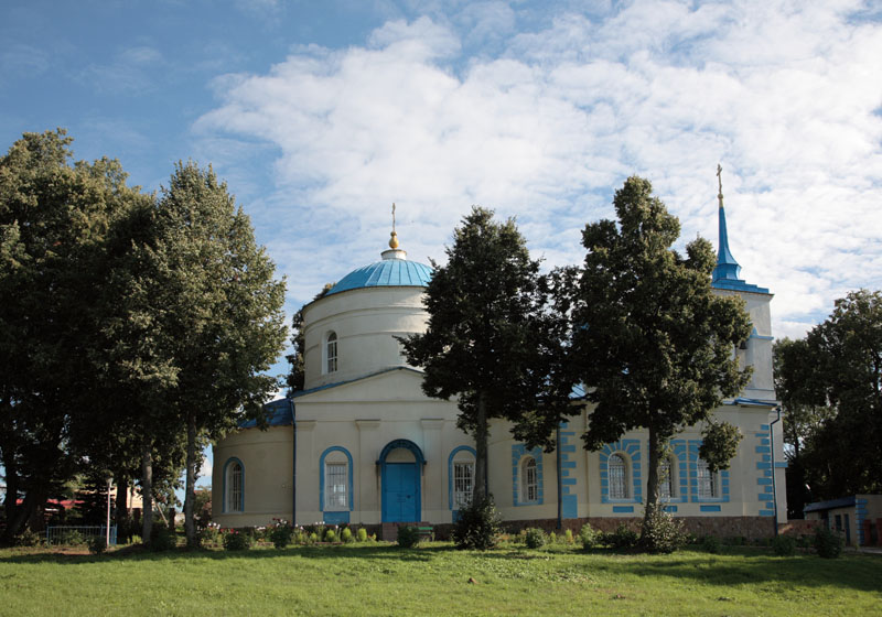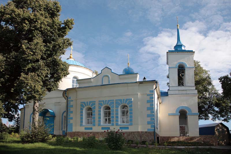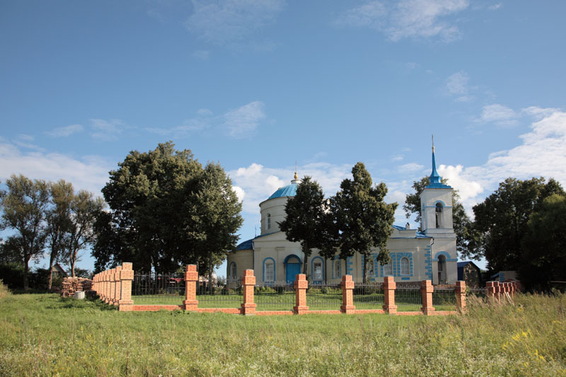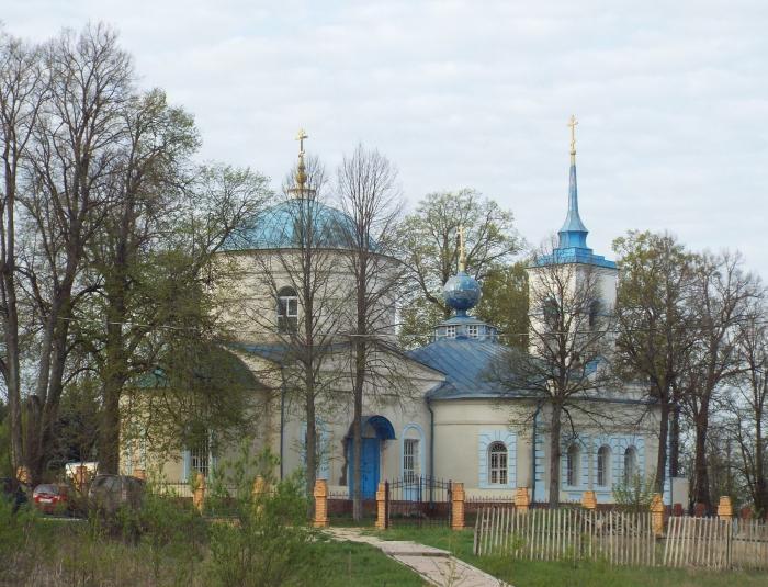 Дата постройки последнего здания: 1822-1834. Кирпичная церковь в стиле классицизма с трапезной и колокольней, завершённая массивным барабаном с куполом, строилась с 1822 по 1834 взамен сгоревшей деревянной на средства помещика И. А. Мальцова, купца Е. Соловьёва, крестьян М. Иванова, К. Власова, А. Прокофьева. Главный престол первоначально был освящён во имя Воскресения Словущего.
