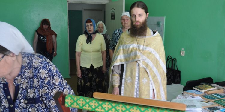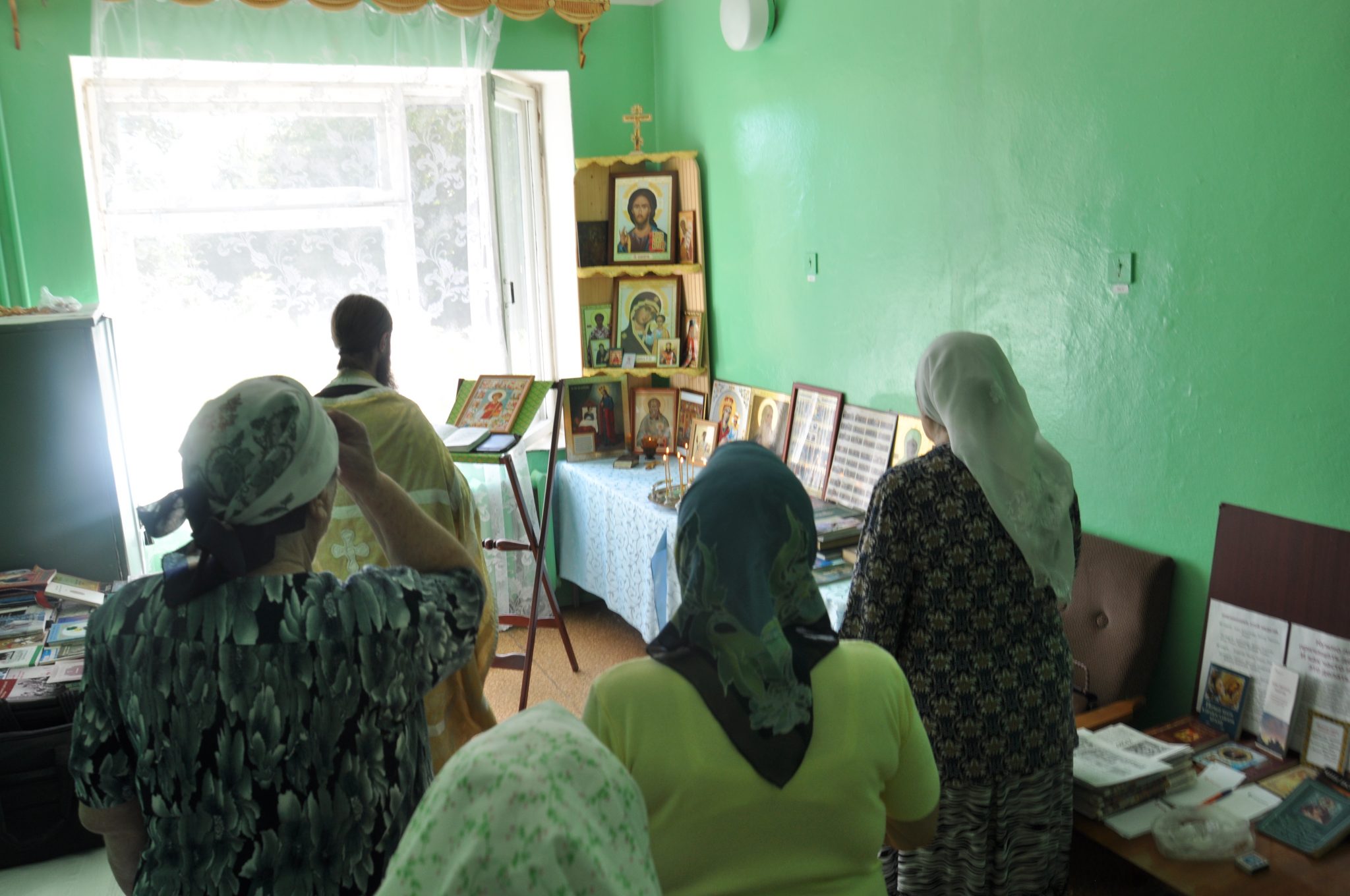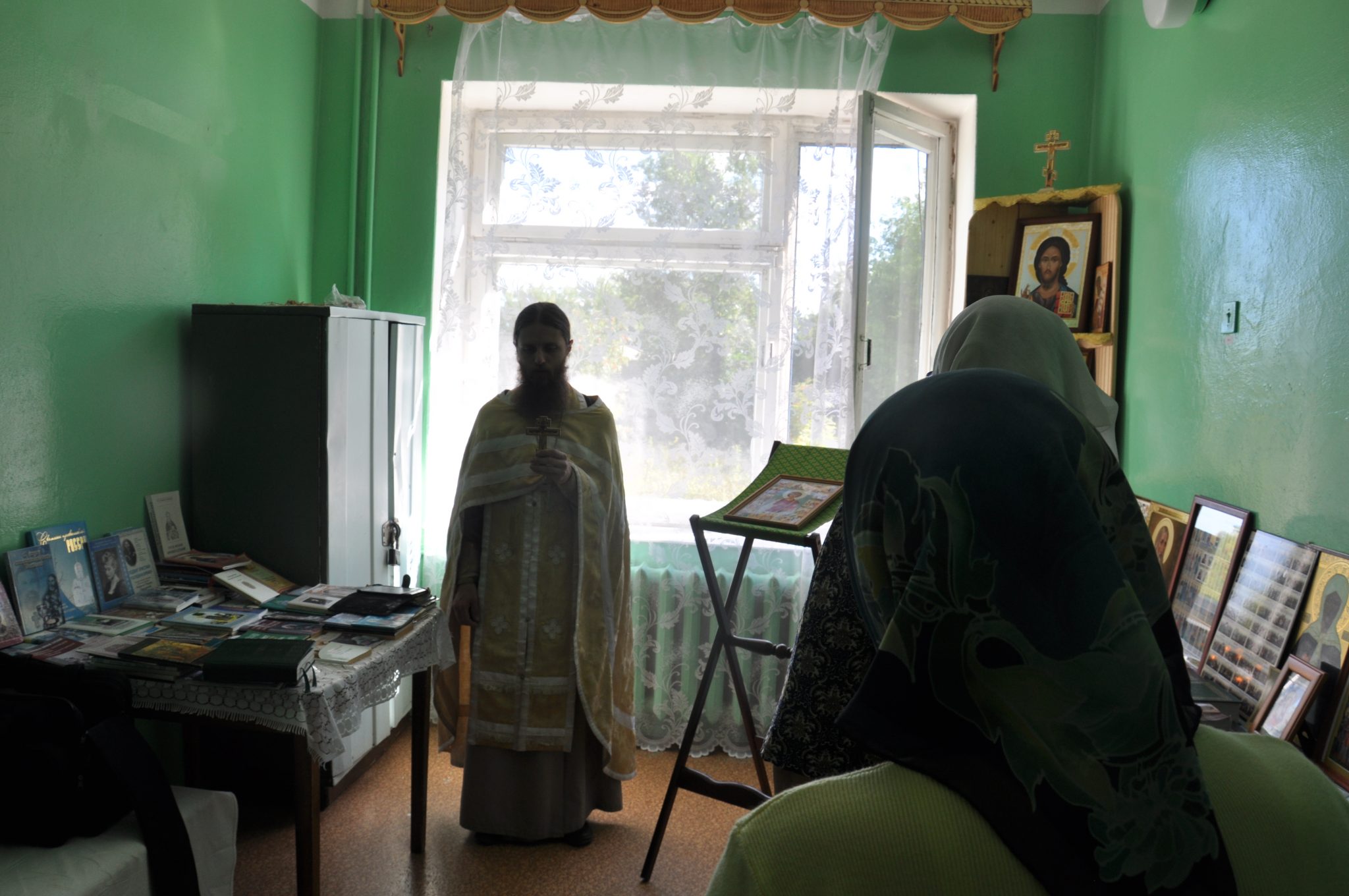 После богослужения в храме отец Алексий совершил молебное пение о недугующих с акафистом великомученику Пантелеимону в молебной комнате в честь иконы Пресвятой Богородицы «Целительница»  в районной больнице города.