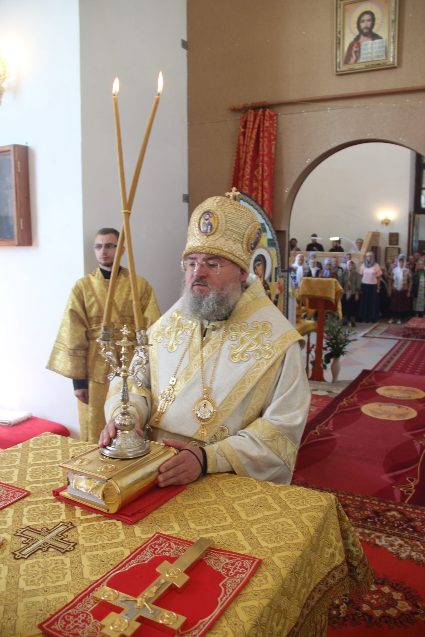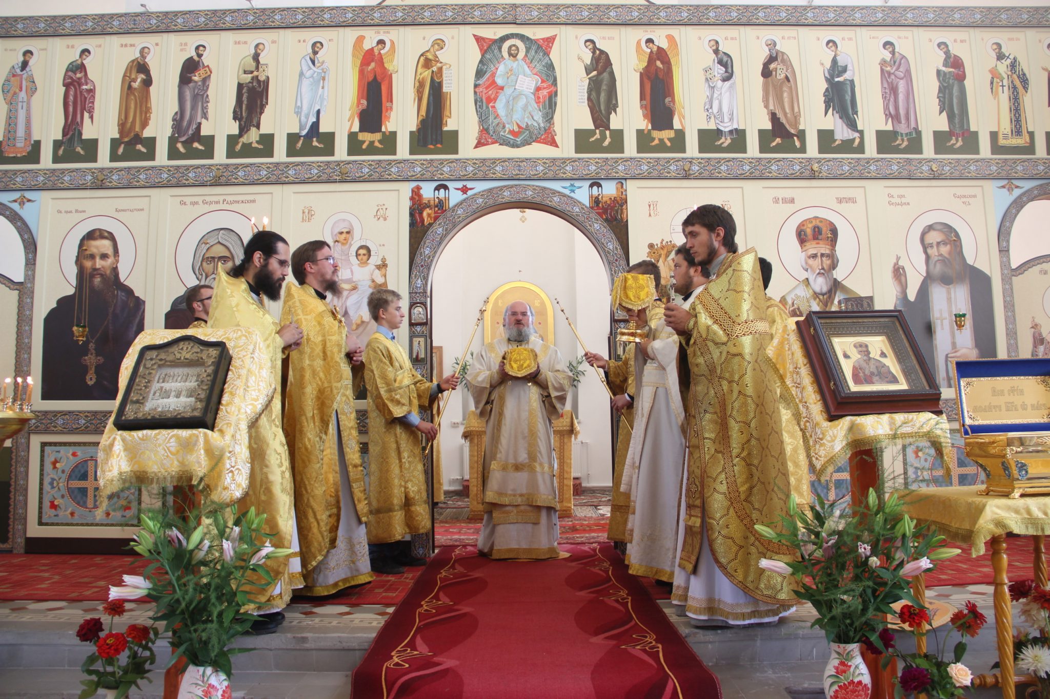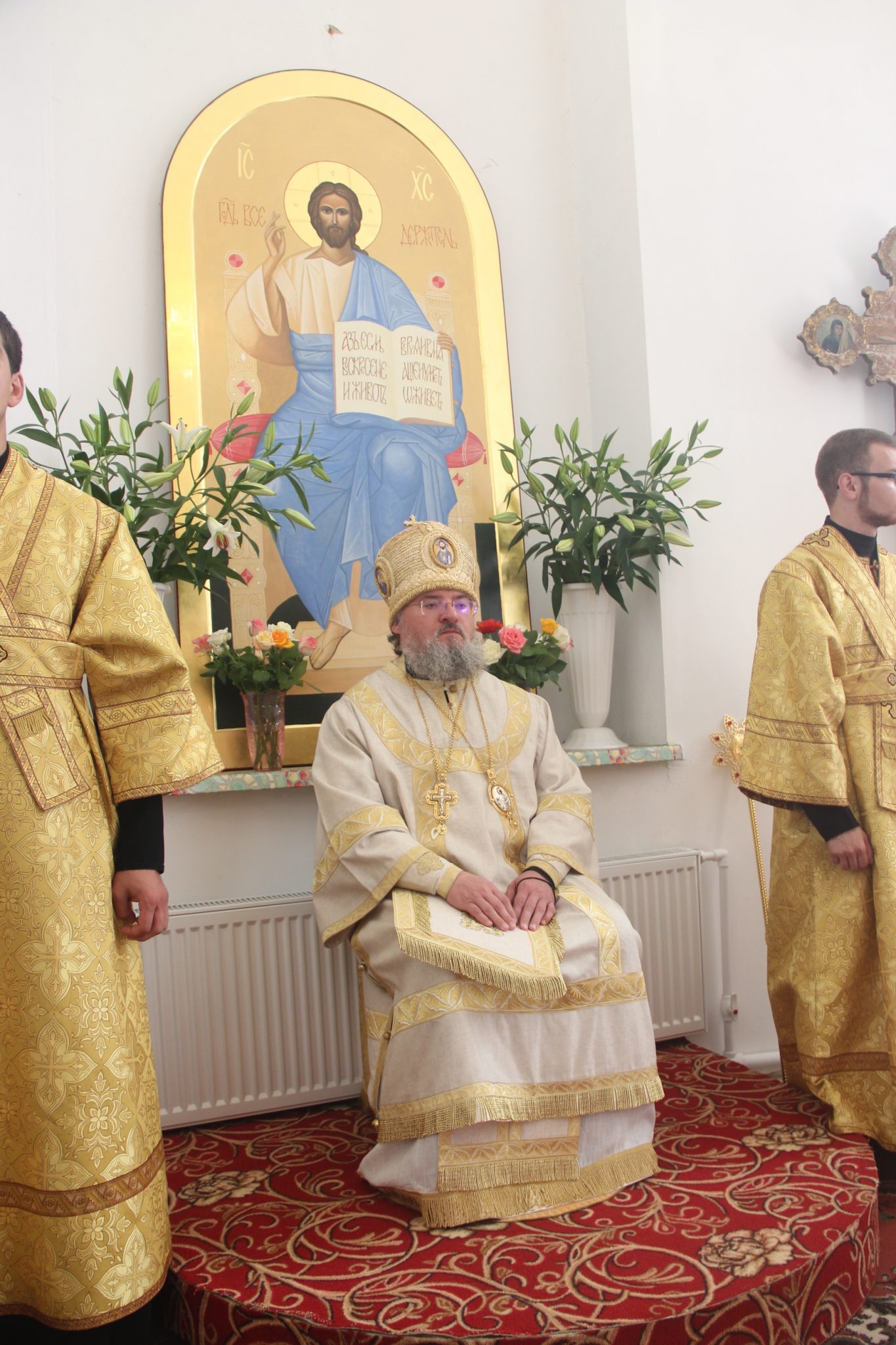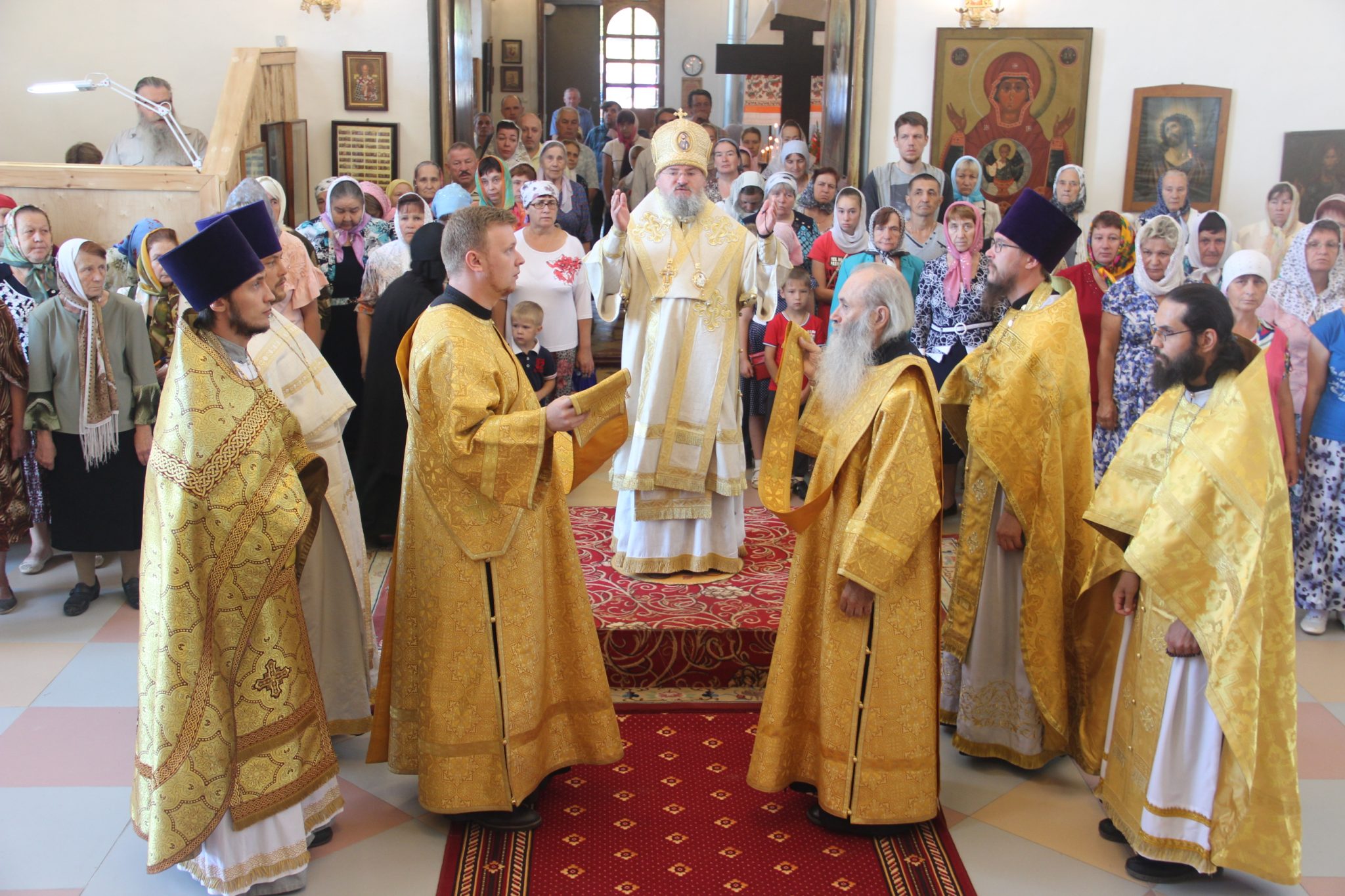 Архипастырю сослужили: протоиерей Антоний Хатунцев, иерей Дионисий Куваев, иерей Евгений Мягков – настоятель храма, иерей Максим Изопов, диакон Евгений Ковригин и иеродиакон Виталий (Павленко).