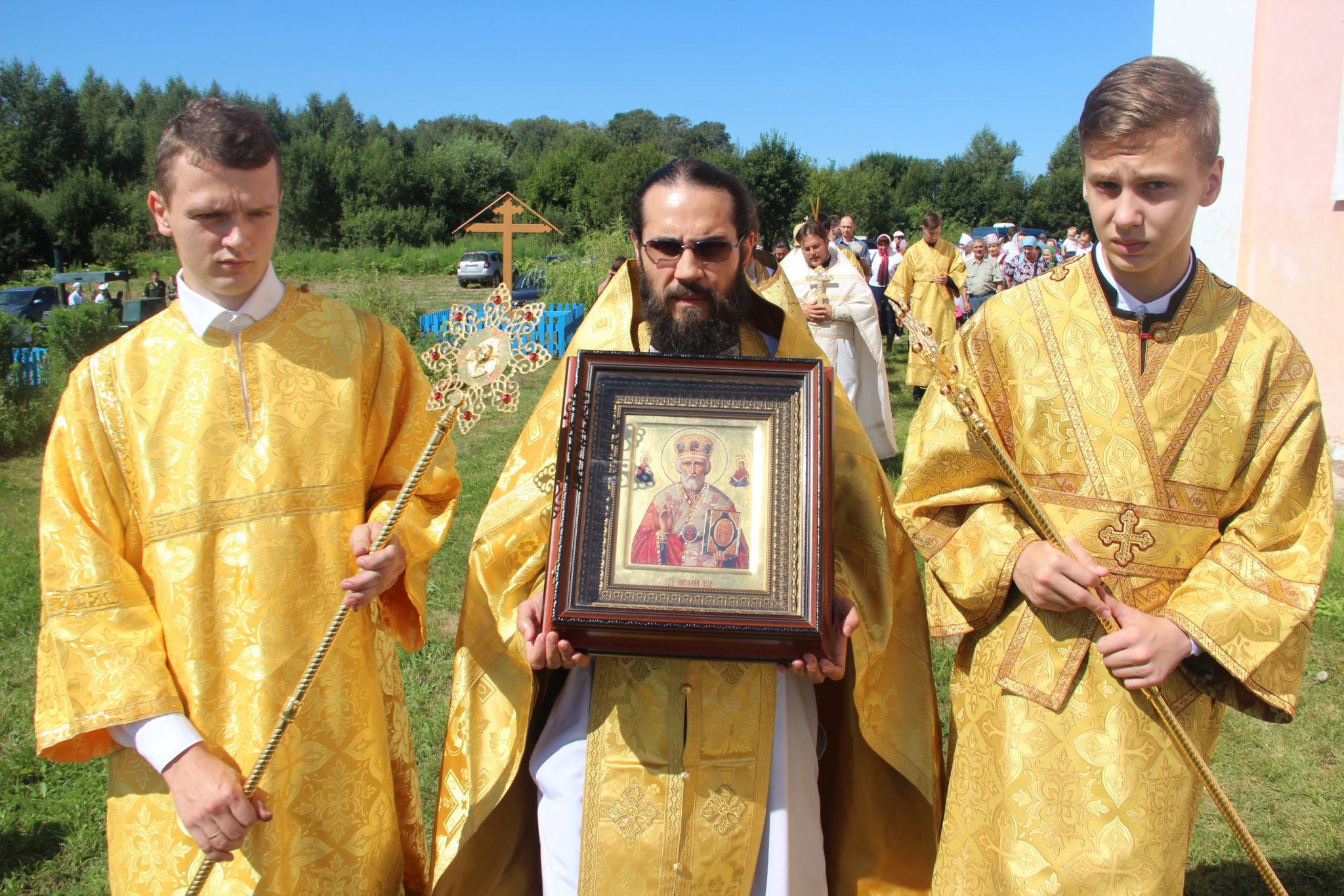 По отпусте литургии состоялся праздничный молебен и крестный ход вокруг храма в завершении которого, вознеся молитву святому, владыка обратился к богомольцам с архипастырским словом.