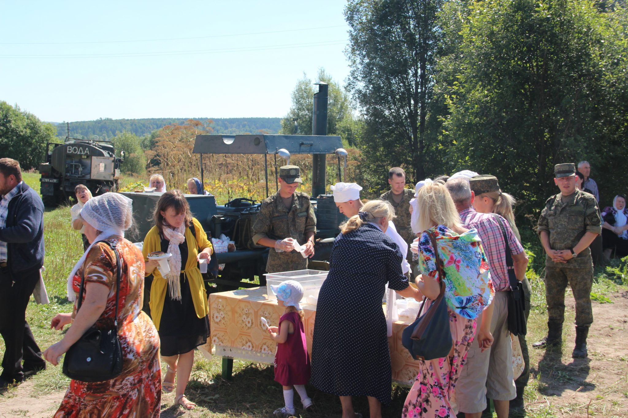 После богослужения для всех собравшихся на торжество была устроена трапеза из полевой кухни и состоялся праздничный концерт.