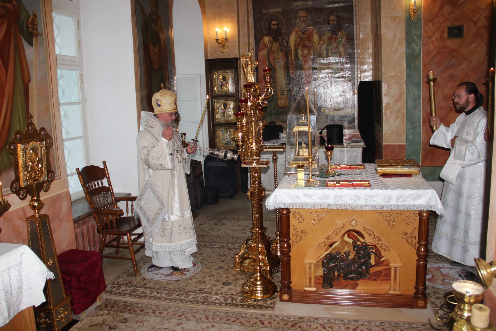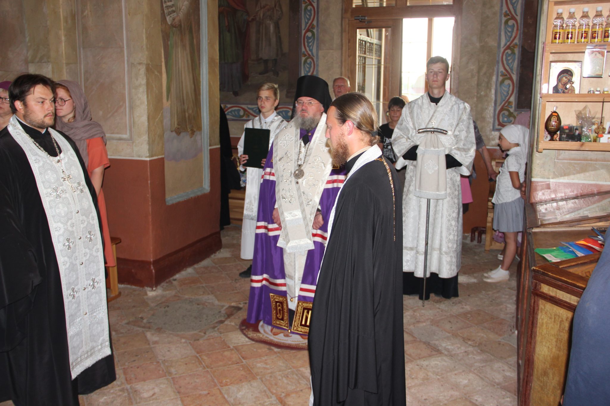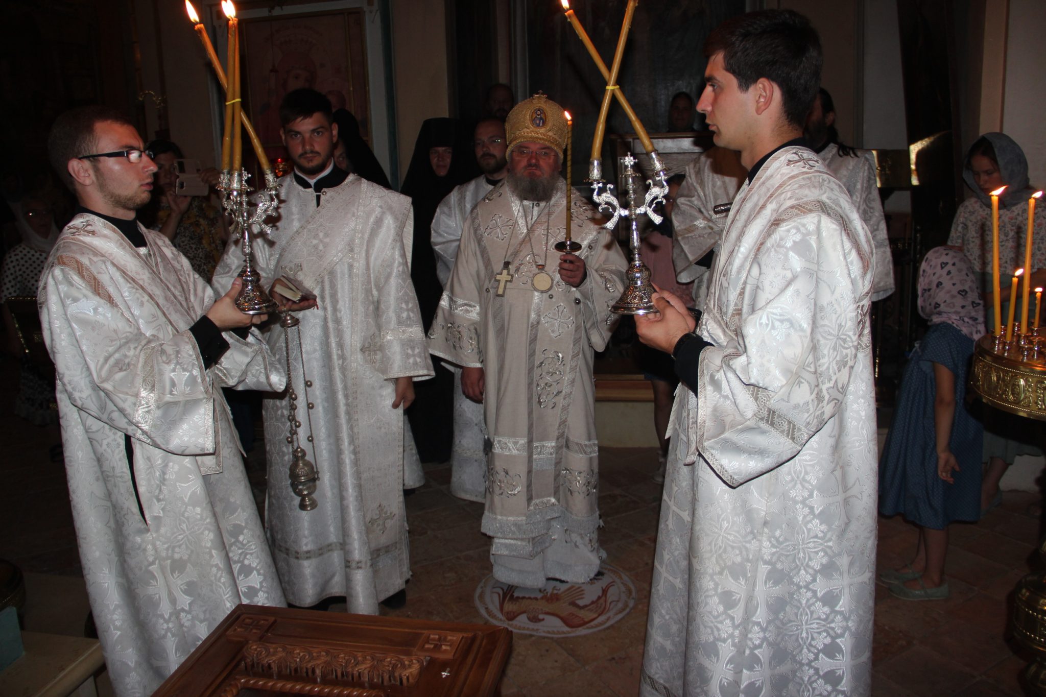 Архиерею сослужили: протоиерей Антоний Хатунцев, иерей Симеон Худяков, диакон Евгений Васильев, диакон Тихон Худяков, диакон Валерий Волков и иеродиакон Виталий (Павленко).