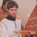 За богослужением была совершена диаконская хиротония студента Калужской духовной семинарии Ефименкова Алексия. После отпуста литургии состоялся праздничный крестный ход вокруг храма, в завершении которого владыка обратился к молящимся с архипастырским словом.