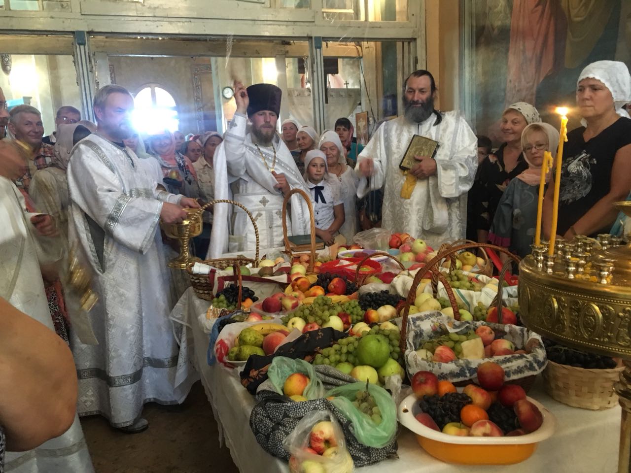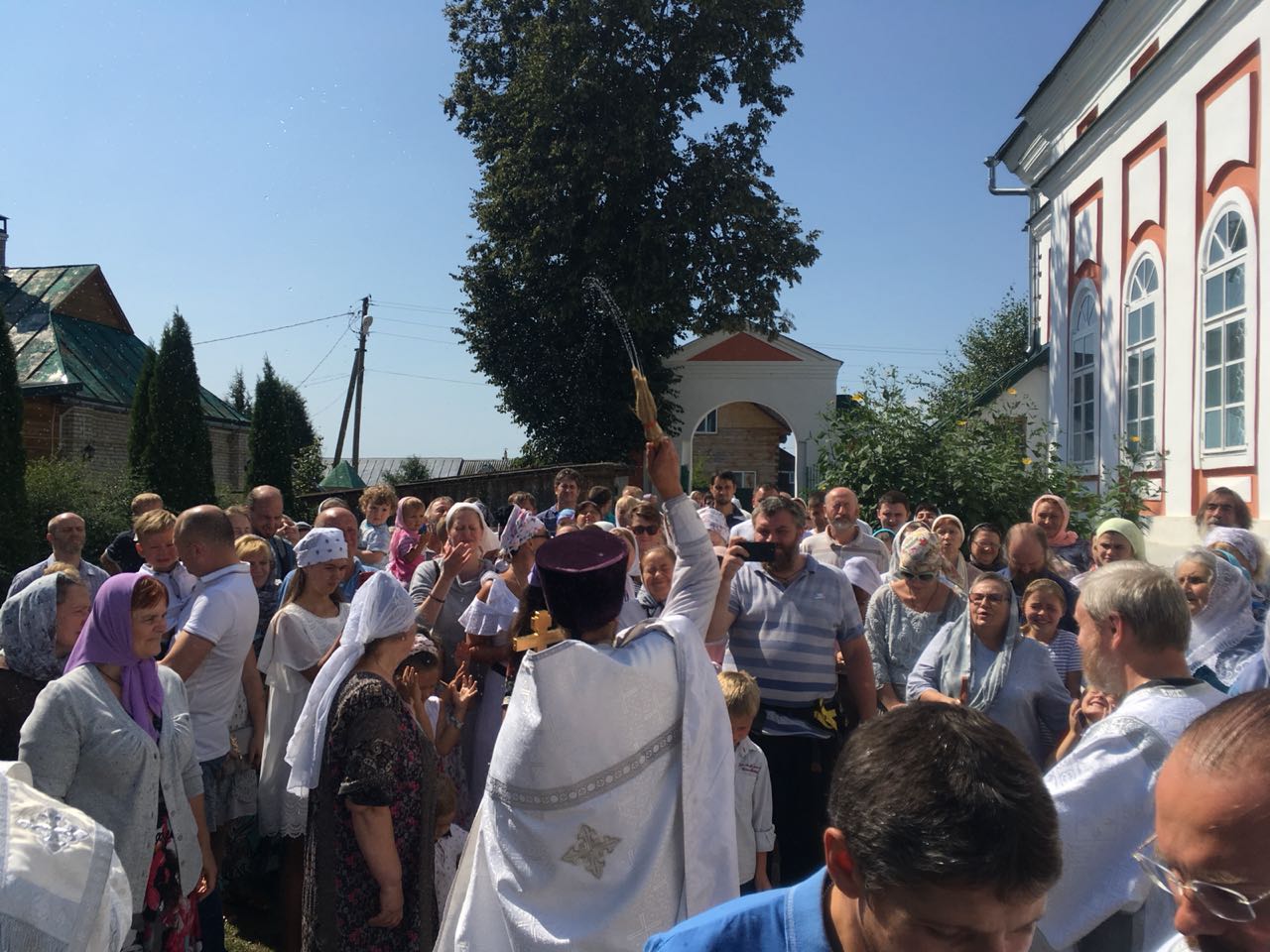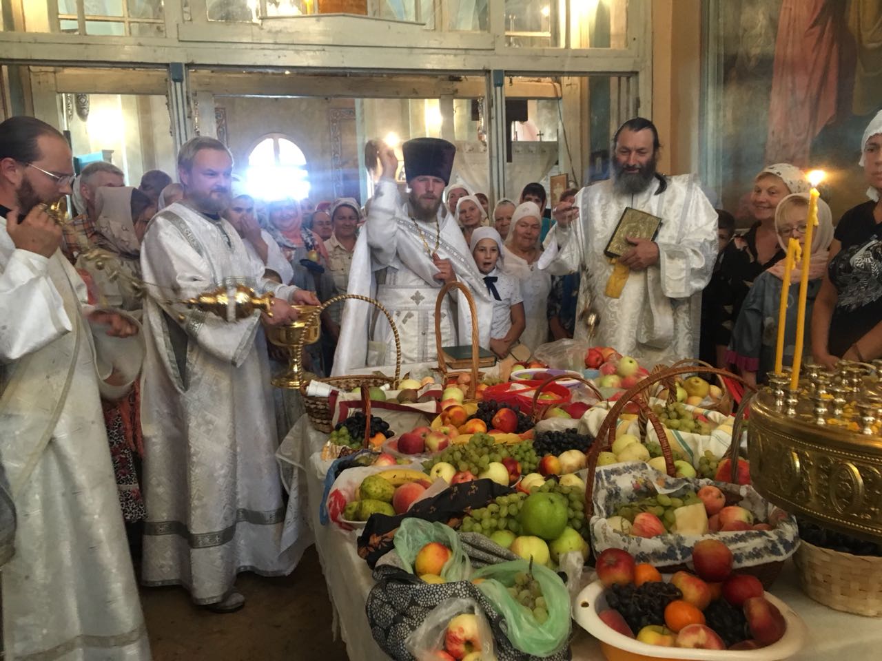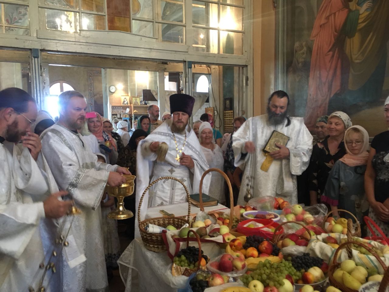 По окончании Литургии, при большом скоплении прихожан и паломников приехавших в этот день на торжества, состоялся праздничный крестный ход вокруг храма с совершением литии у отреставрированных могил почивших настоятелей храма XIX века и последующим традиционным освящением яблок и других плодов.