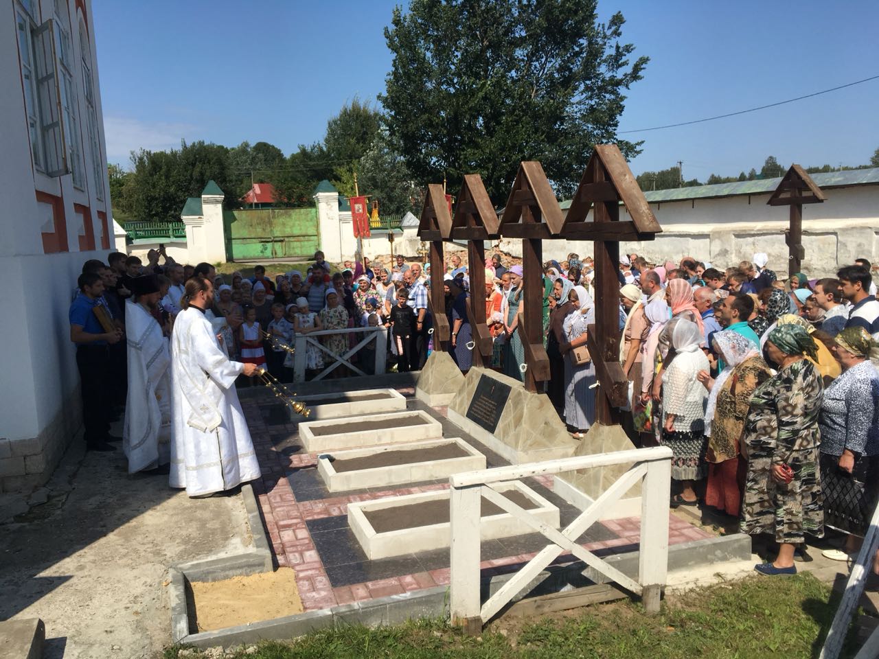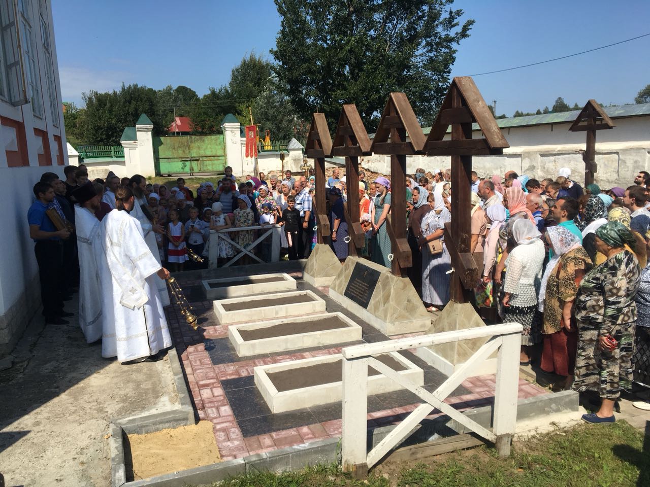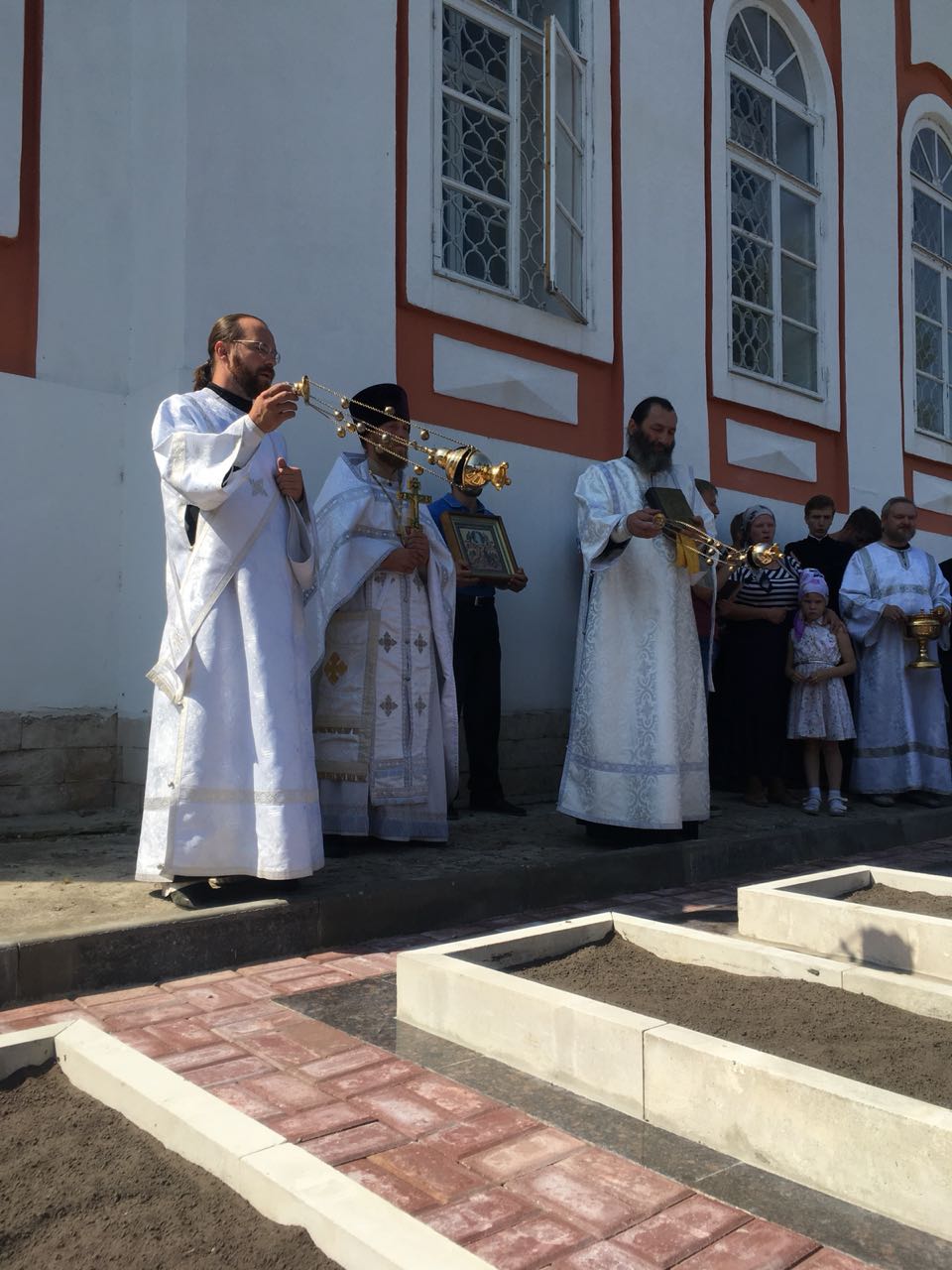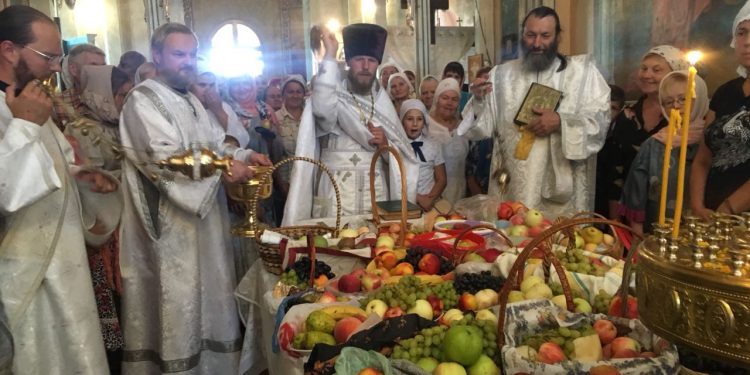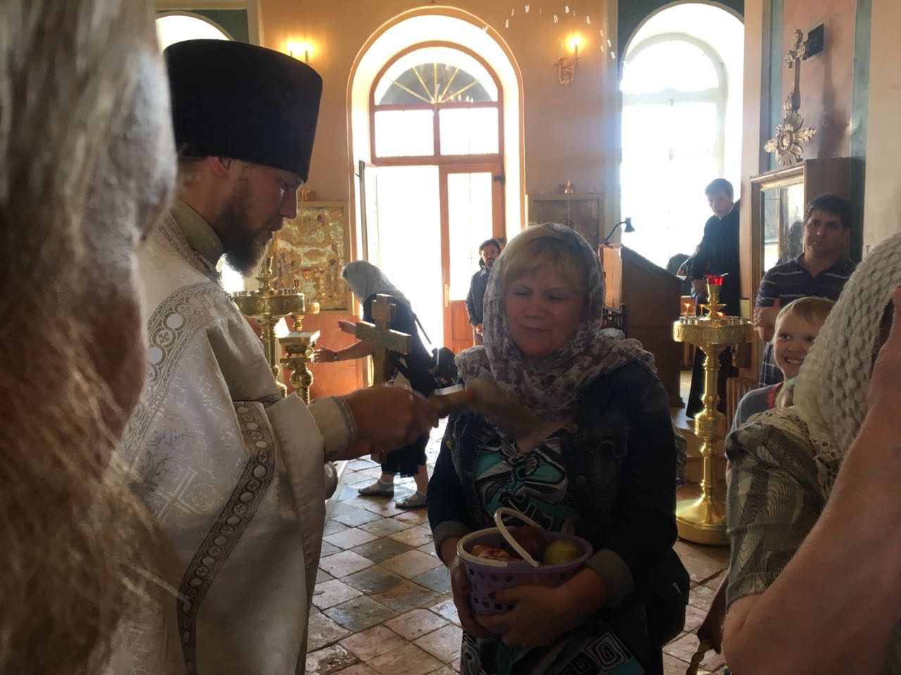 По окончании Литургии, при большом скоплении прихожан и паломников приехавших в этот день на торжества, состоялся праздничный крестный ход вокруг храма с совершением литии у отреставрированных могил почивших настоятелей храма XIX века и последующим традиционным освящением яблок и других плодов.