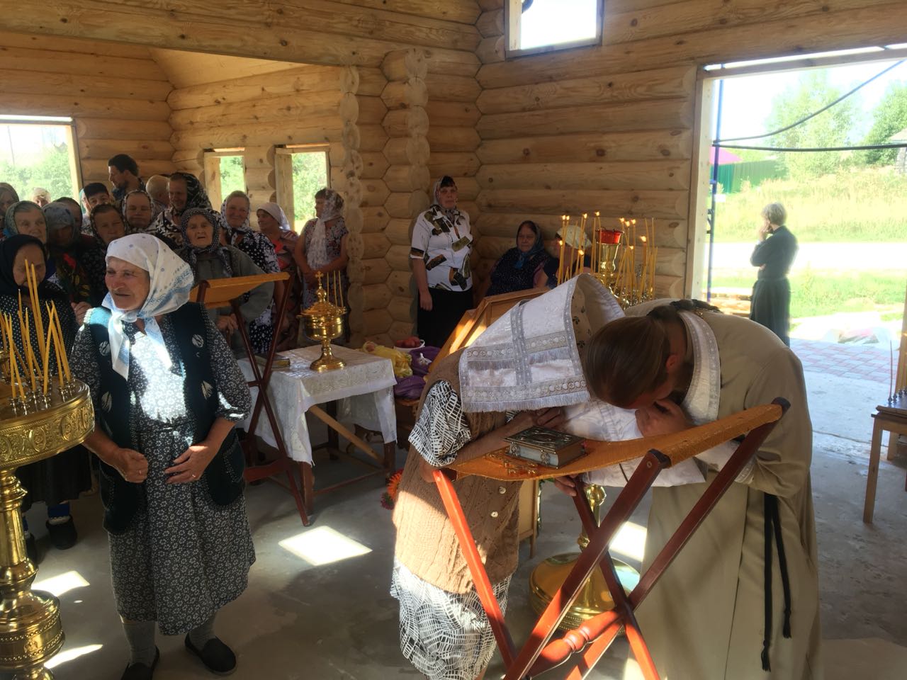 18 августа, в день Предпразднества Преображения Господня, в строящемся храме в честь Архангела Михаила деревни Слаговищи Козельского благочиния, по благословению епископа Козельского и Людиновского Никиты, иереем Симеоном Худяковым совместно с клиром храма Преображения Господня села Нижние Прыски был отслужен молебен и освящены яблоки и плоды фруктовых деревьев.