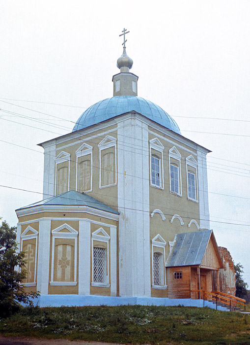 Церковь Сошествия Святого Духа (по клировым ведомостям “Свято-Духовская”) построена на средства купца Петра Месняева в 1789г. В 1810г. священник этой церкви Василий Андреев с прихожанами обратились в Калужскую Духовную Консисторию с прошением о разрешении постройки новой каменной колокольни на средства прихожан, на что и был получен указ № 2041 (ф.33, опись 1, д.190). Церковь и колокольня покрыты были железом, каменная ограда с деревянным балясником тоже покрыта была железом (ф.33, опись 2, д.2323). Престолов в ней три: в настоящей холодной – во имя Сошествия Святого Духа, в трапезной теплой – по правую сторону во имя святых бессеребренников Космы и Дамиана, по левую – во имя святых Афанасия и Кирилла.