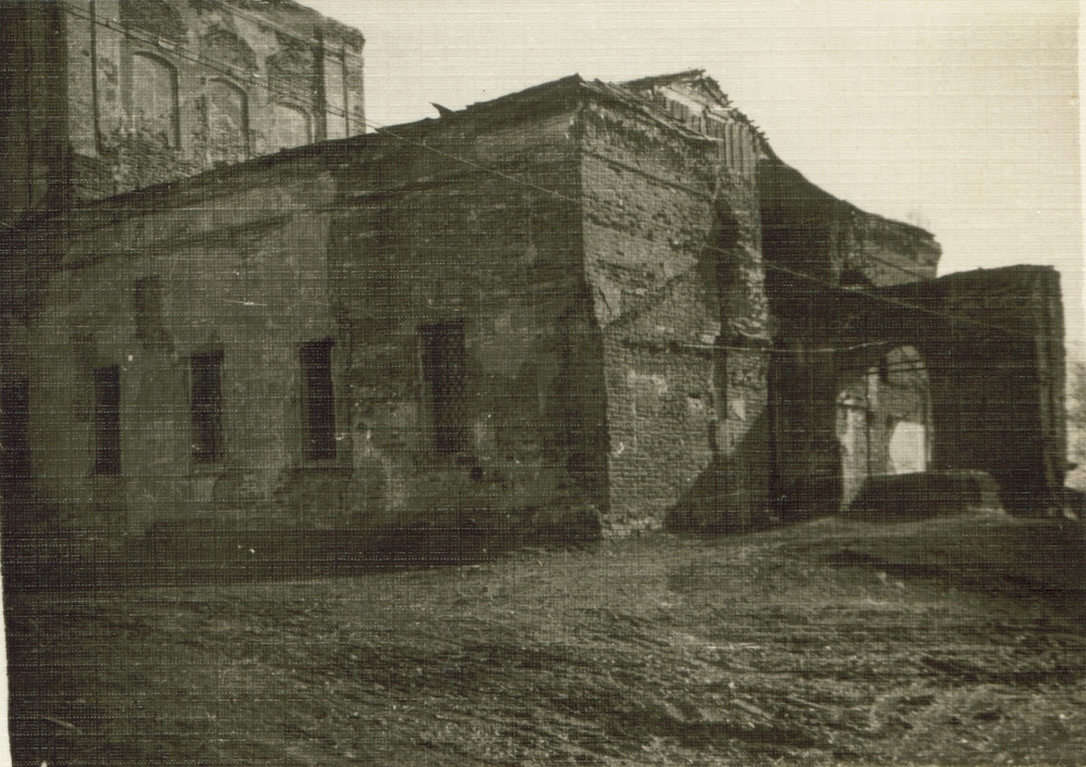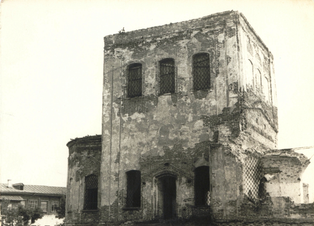 Церковь была закрыта в 1903г. и отдана под склад для зерна. Здание ходатайством в Исполком областного Совета о разборке церкви на строительный материал (№ 39 – 1828 от 19.12.1950г) , (ф. р 3501 опись 1, д. 21 и 81). Но 24 июля 1952г. решение это было отменено и принято другое: “Здание бывшей церкви Сошествия в г.Козельске передать Облмельтресту для использования под вальцевую мельницу,… архитектурно оформить фасад здания и ограду, выходящие на площадь города”.