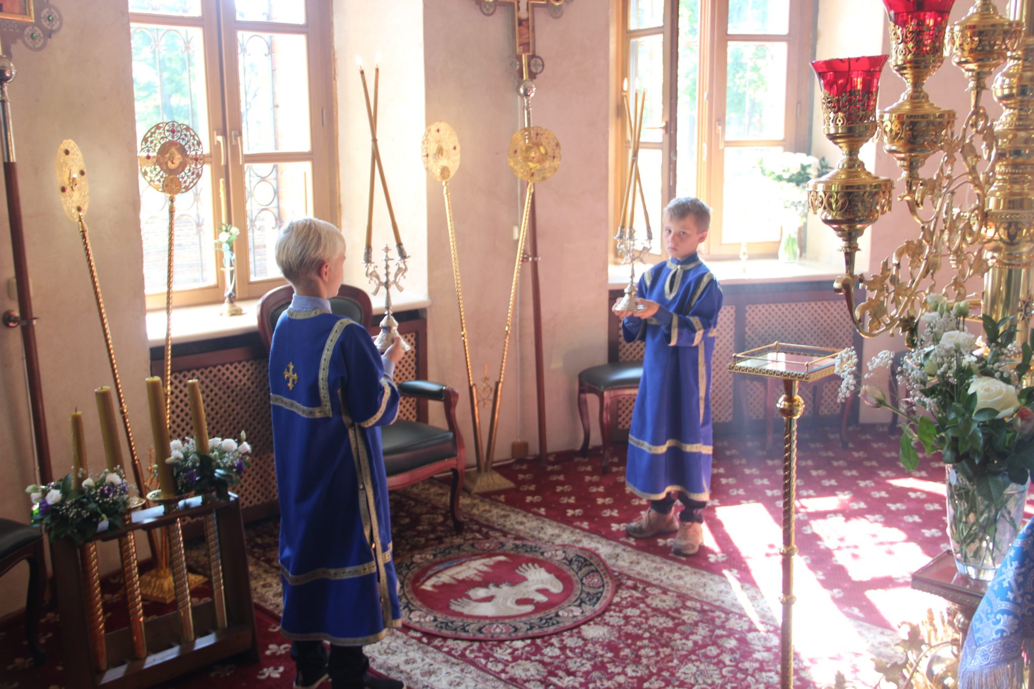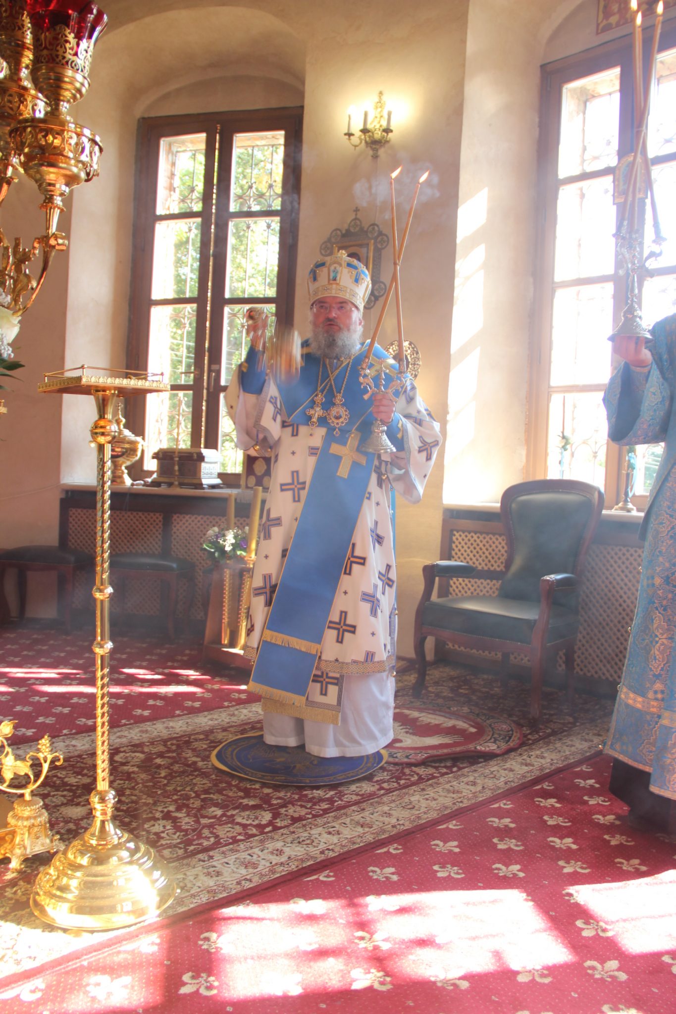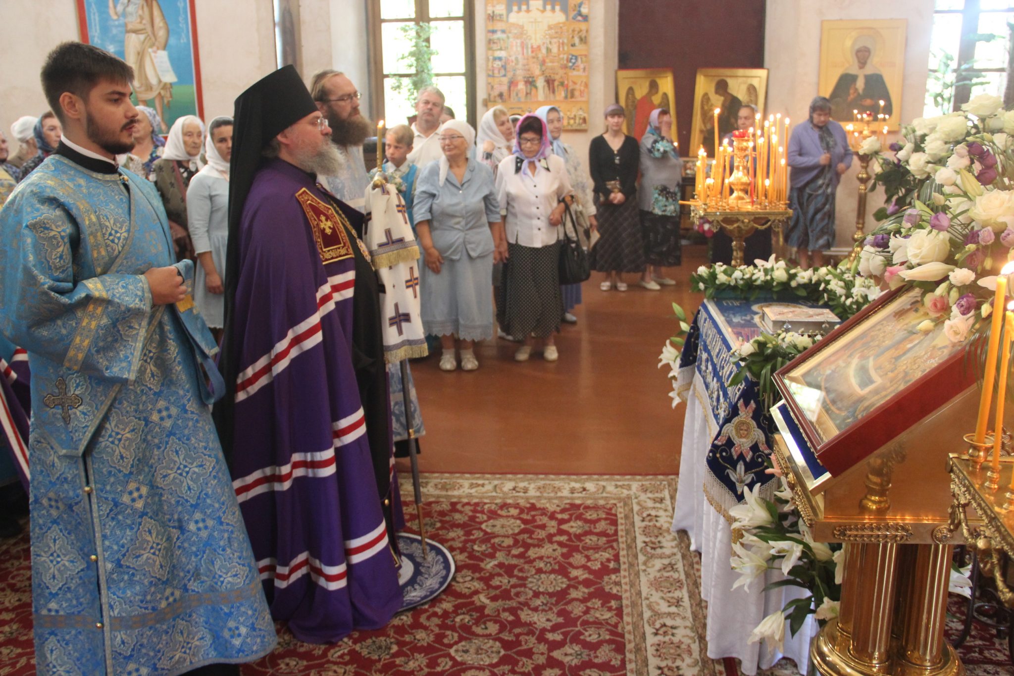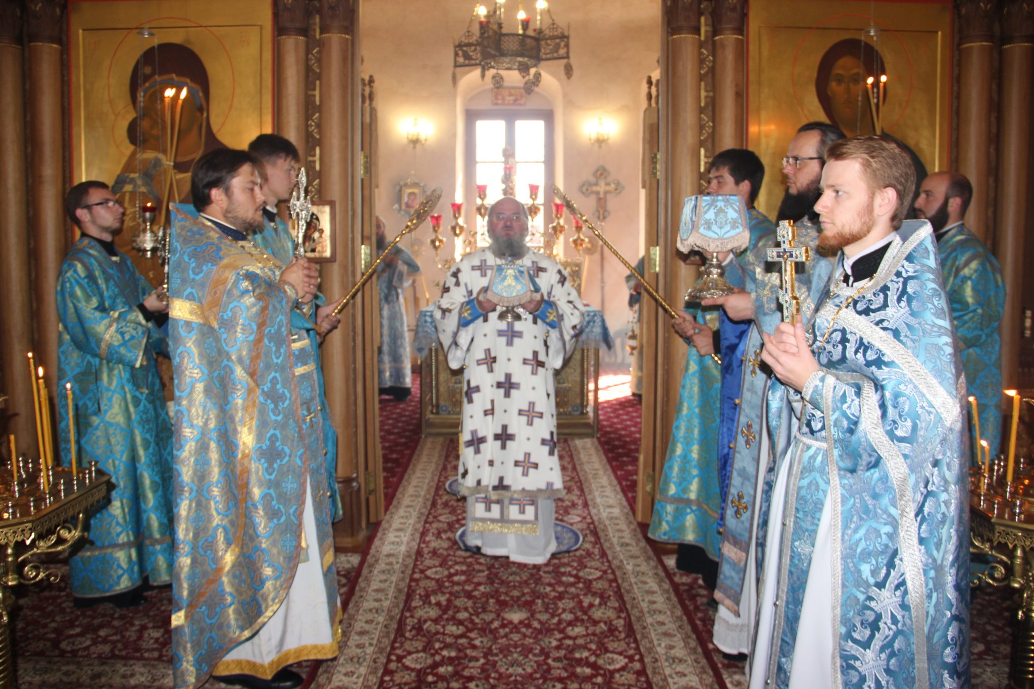 Его Преосвященству сослужили: настоятель храма иеромонах Паисий (Курмаз), протоиерей Антоний Хатунцев, иерей Елисей Тимофеев, диакон Евгений Васильев, диакон Димитрий Лутков и иеродиакон Виталий (Павленко).