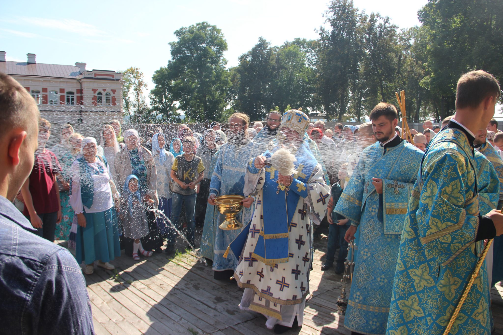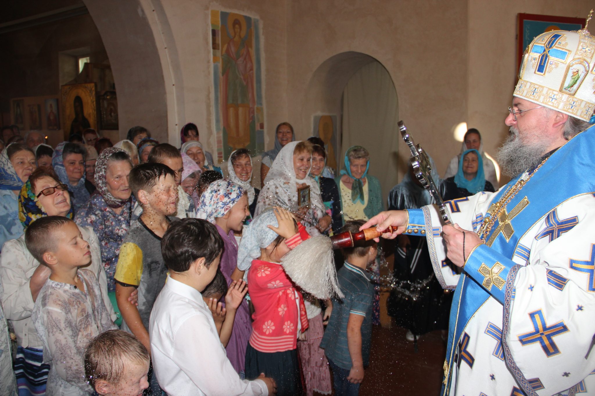 По отпусте литургии состоялся праздничный молебен и крестный ход вокруг храма, в завершении которого, вознеся молитву Божией Матери, владыка обратился к богомольцам с архипастырским словом.