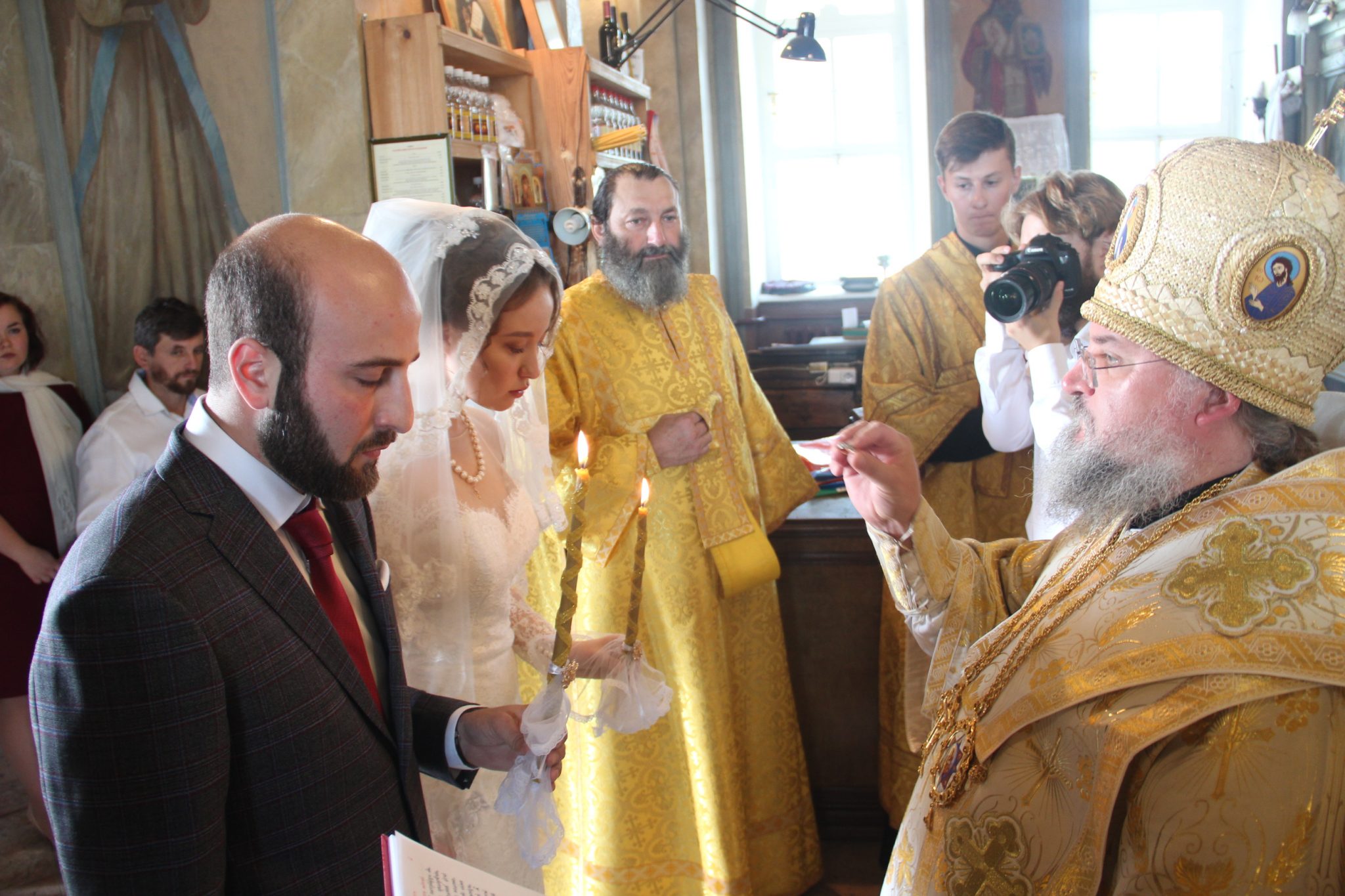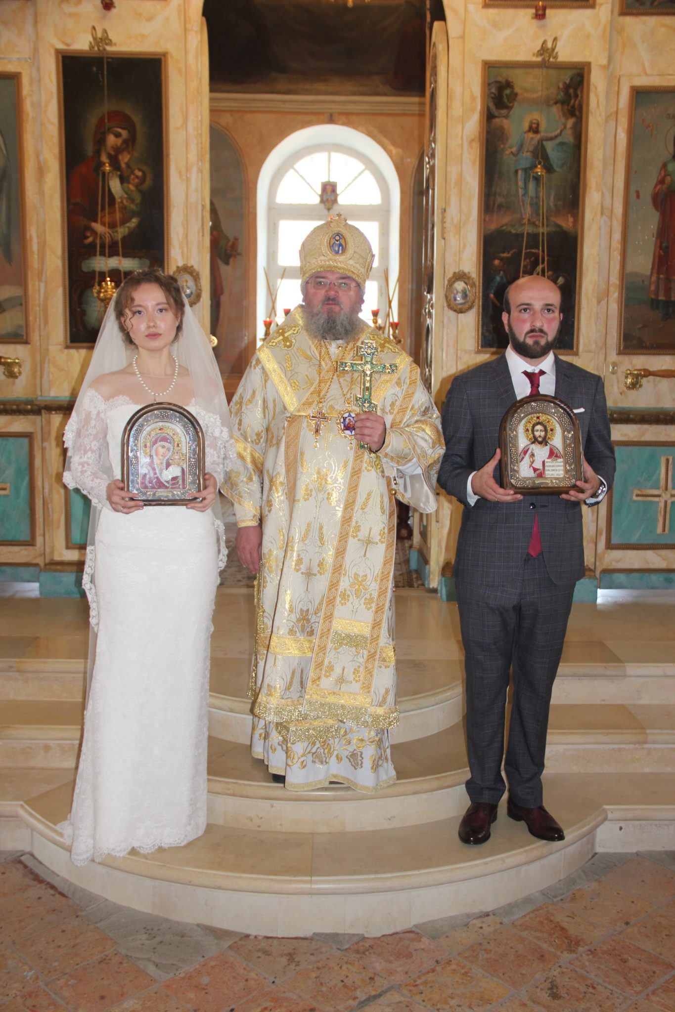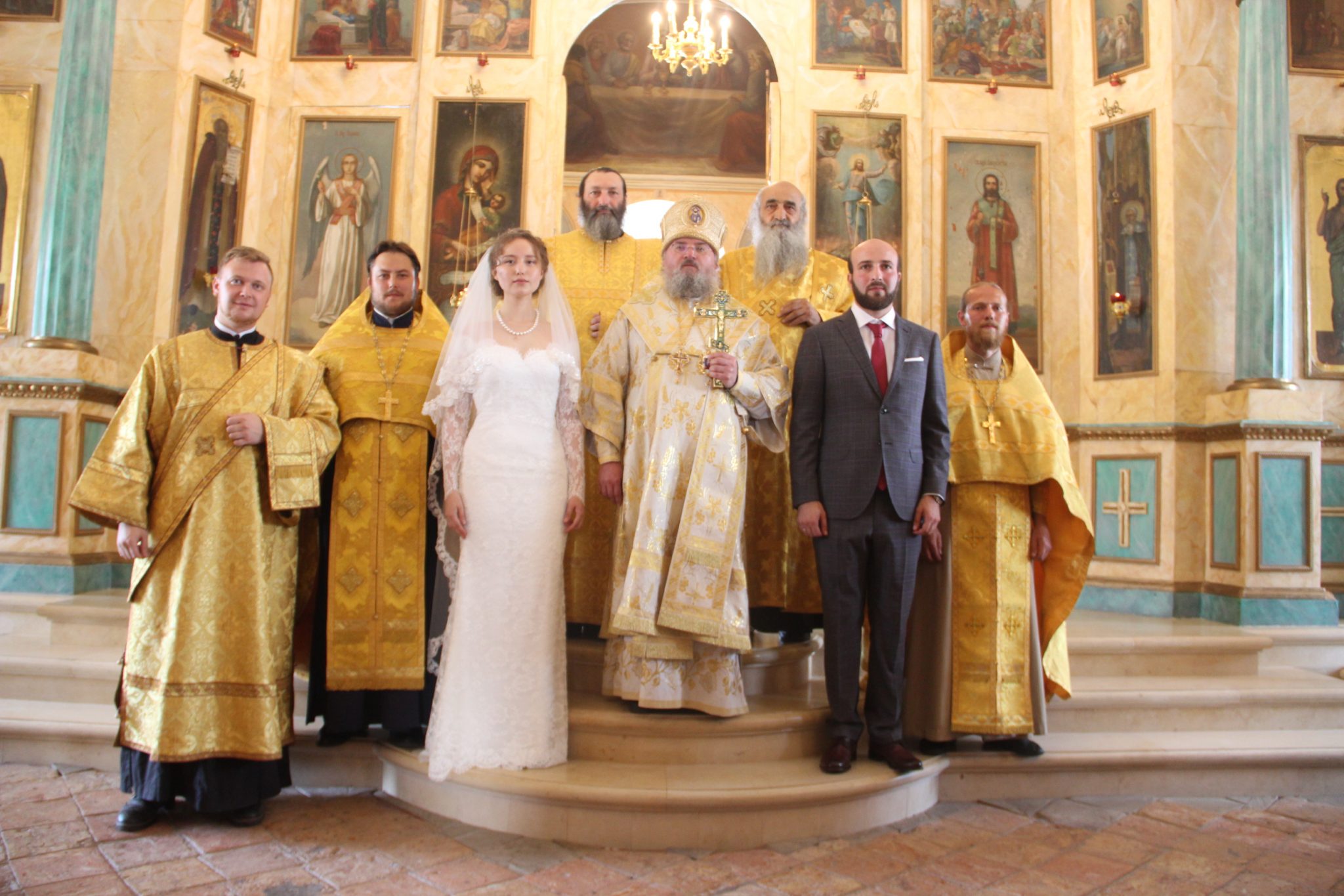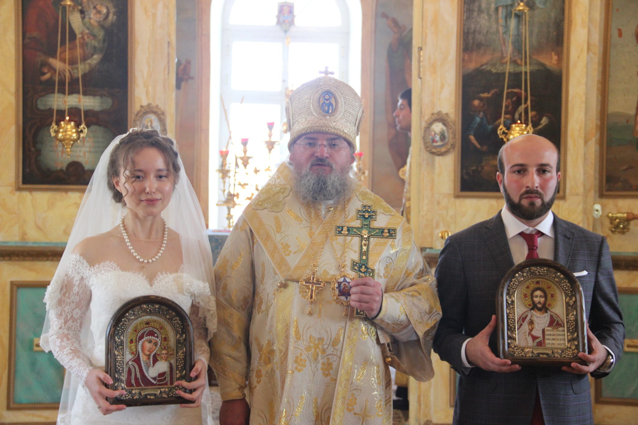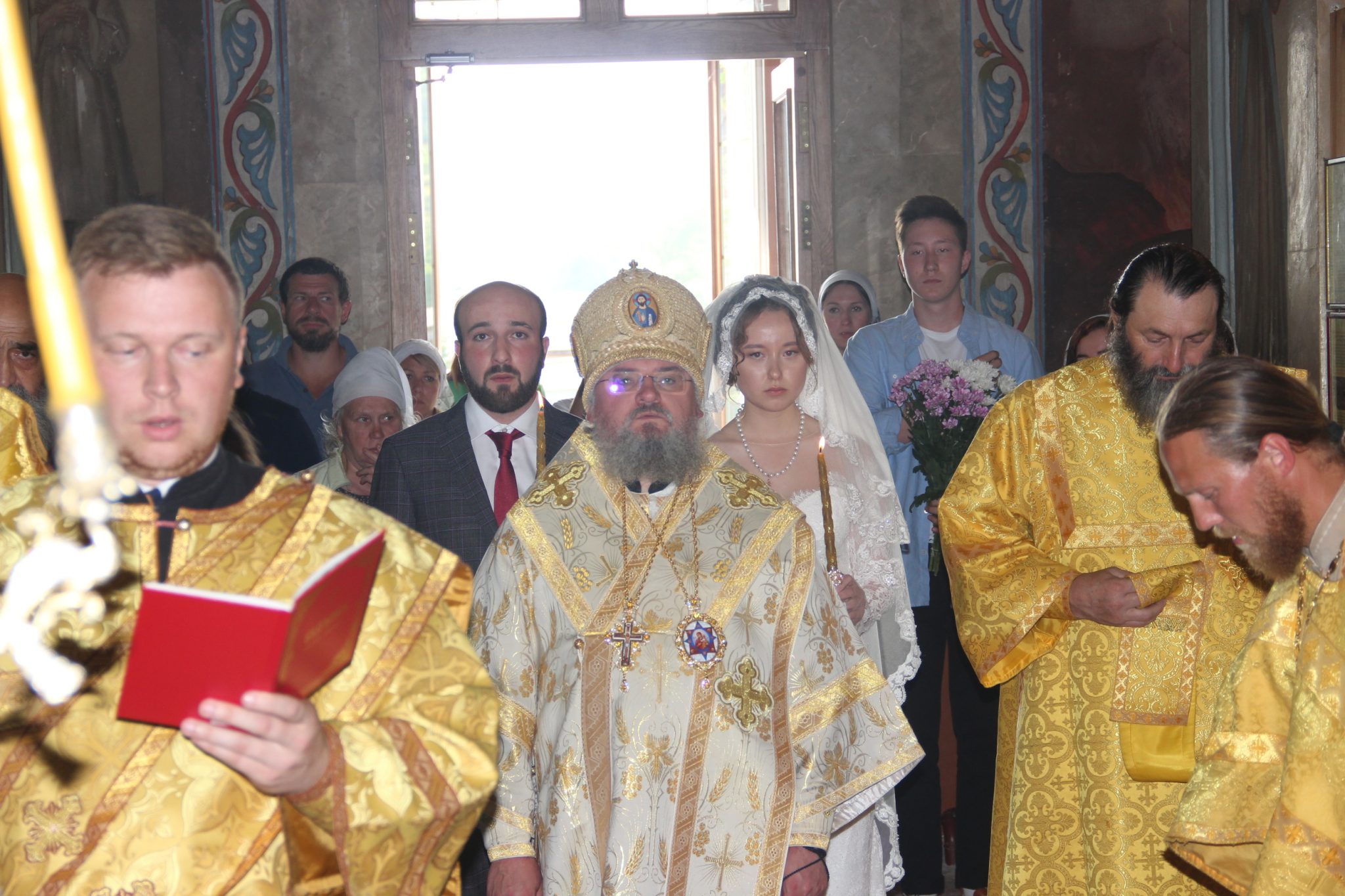 В завершении богослужения владыка поздравил новобрачных Андрея и Серафиму с созданием новой христианской семьи – малой Церкви и пожелал молодоженам любви, верности, взаимопонимания и долголетия.
