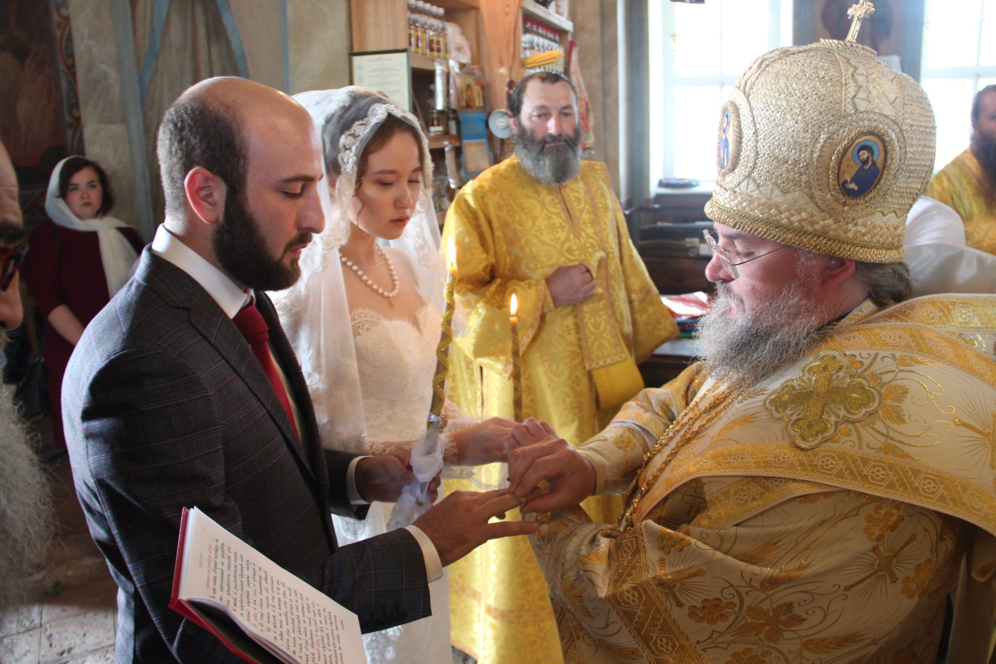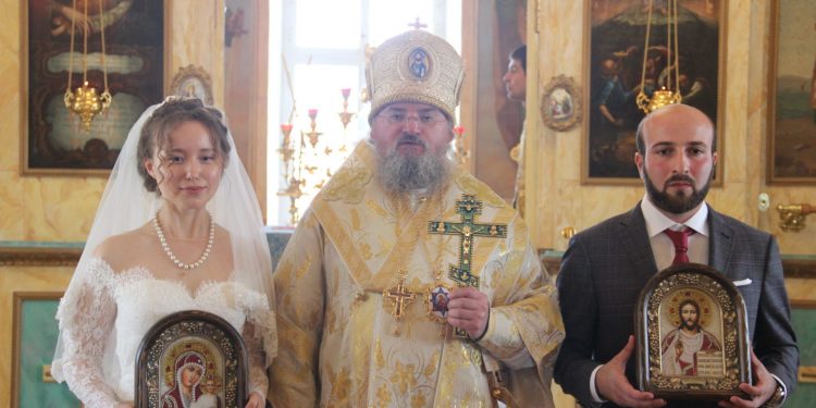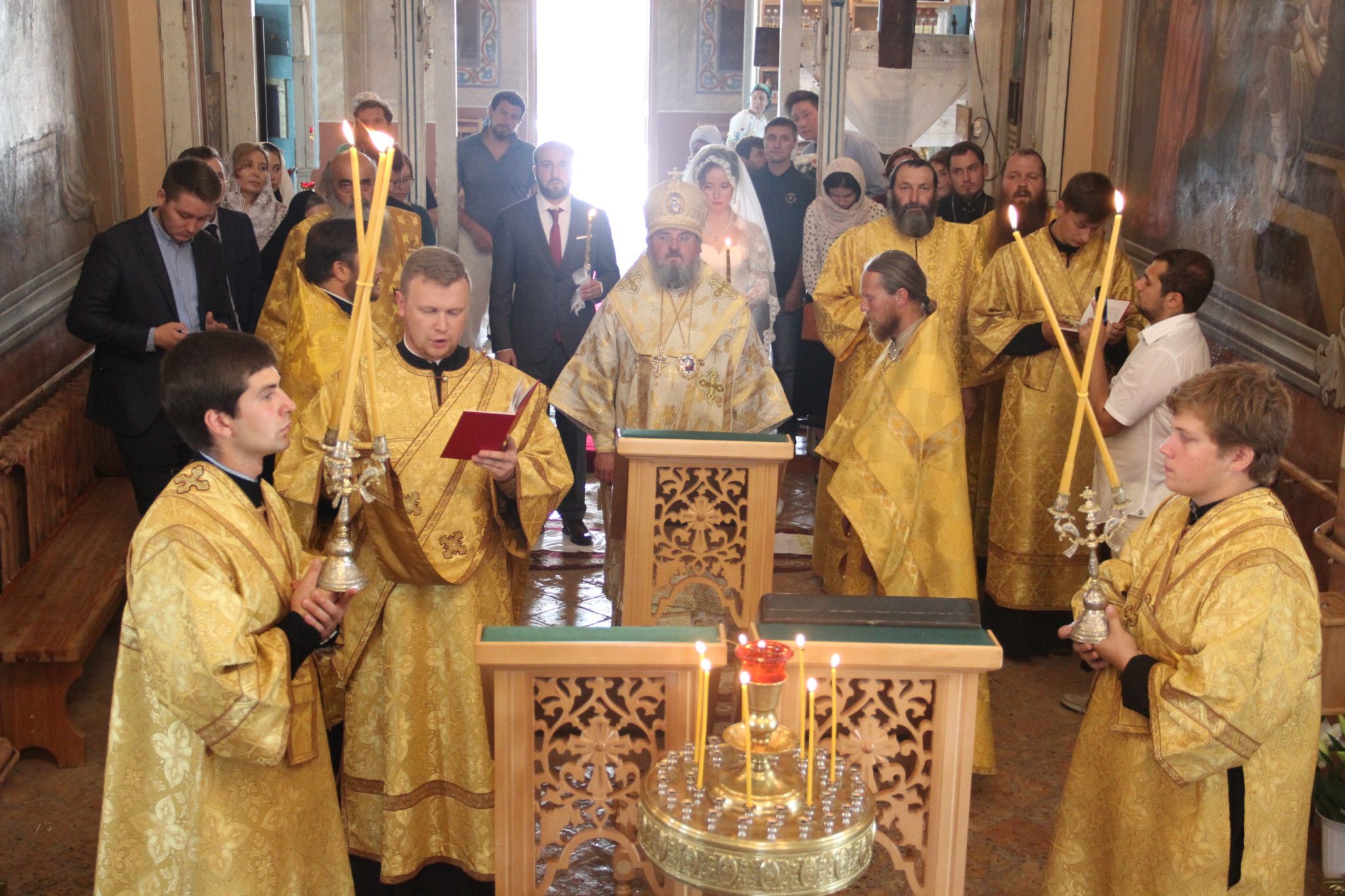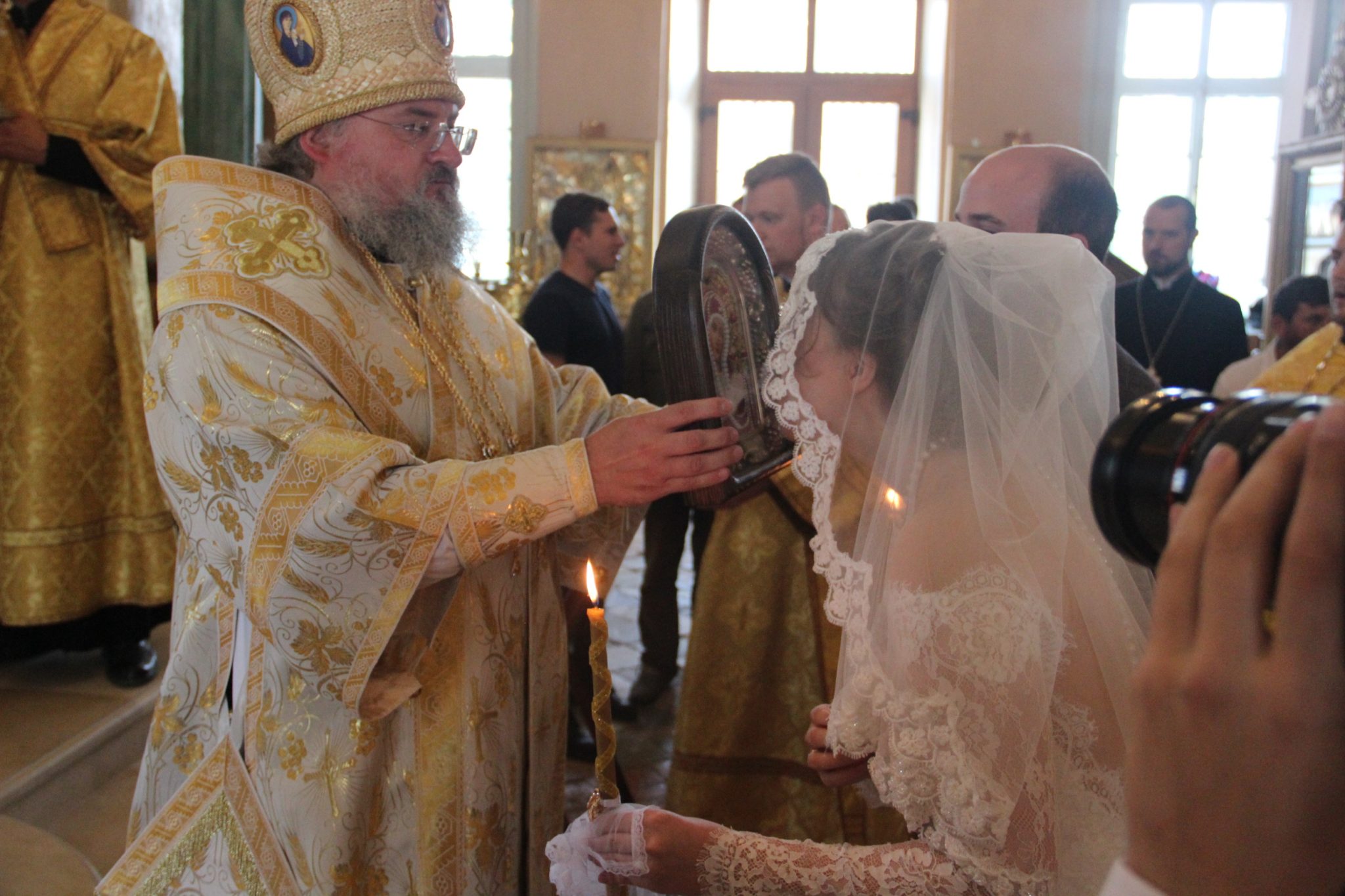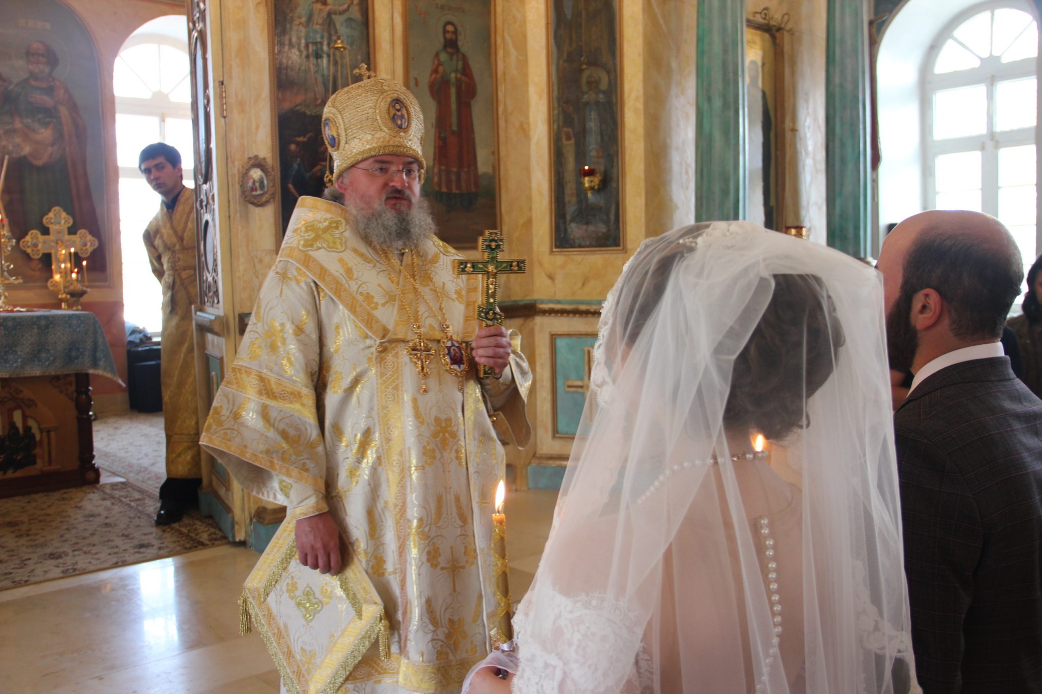В завершении богослужения владыка поздравил новобрачных Андрея и Серафиму с созданием новой христианской семьи – малой Церкви и пожелал молодоженам любви, верности, взаимопонимания и долголетия.