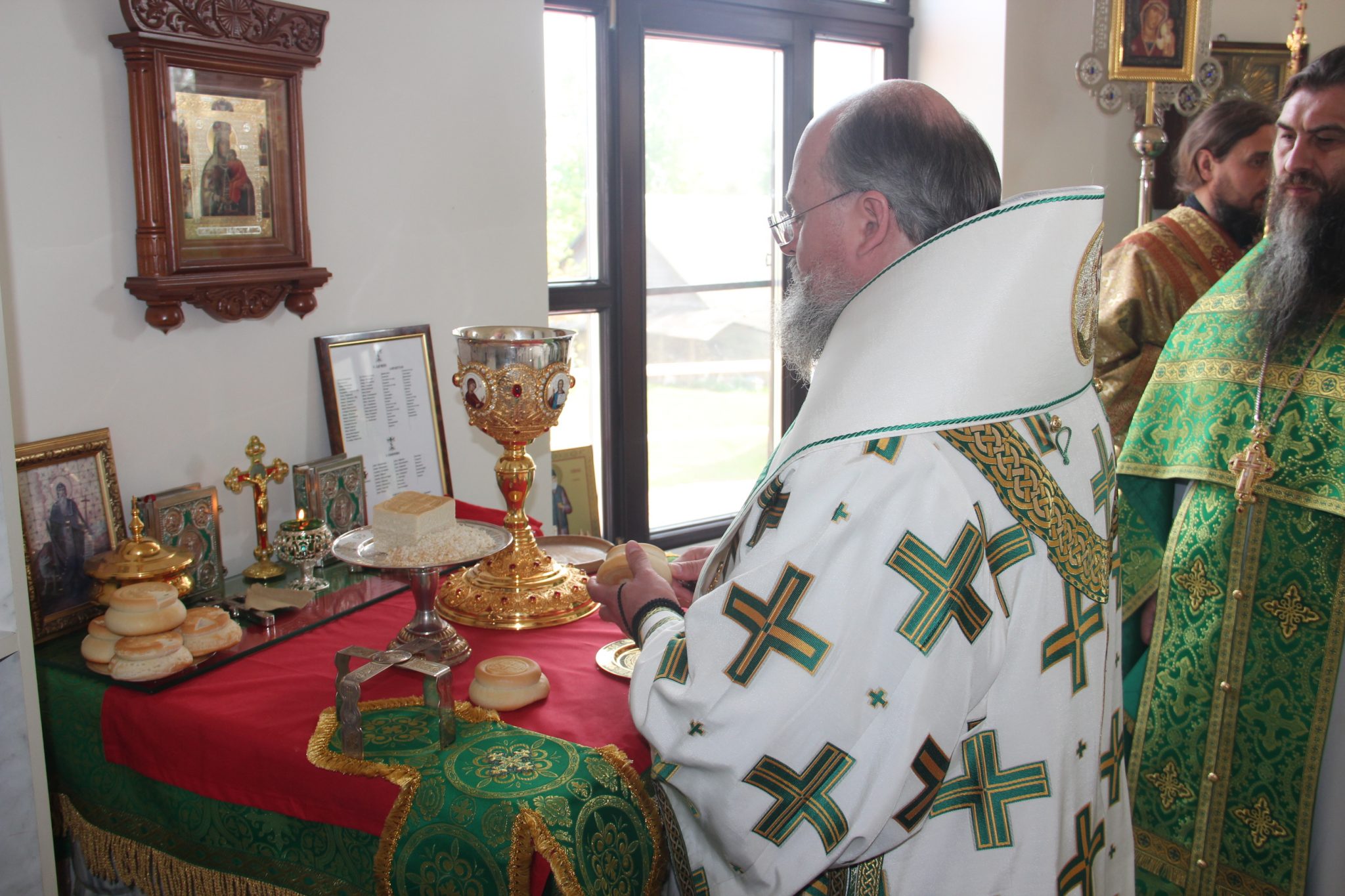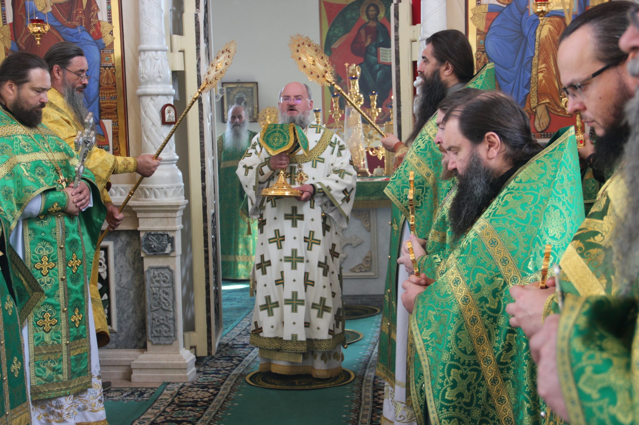 Архипастырю сослужили: настоятель монастыря игумен Михаил (Семенов), протоиерей Владимир Бахаев – благочинный округа, протоиерей Антоний Хатунцев, братия обители в священном сане.