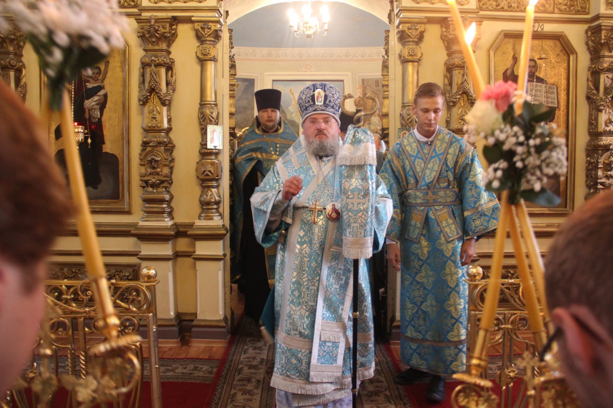 Архипастырю сослужили протоиерей Павел Морозов, иерей Сергий Барыкин – настоятель храма, диакон Евгений Ковригин, диакон Евгений Васильев и иеродиакон Виталий (Павленко).