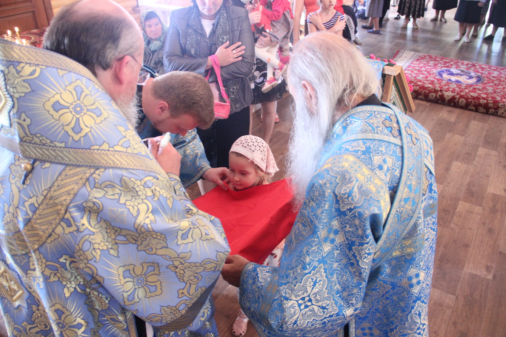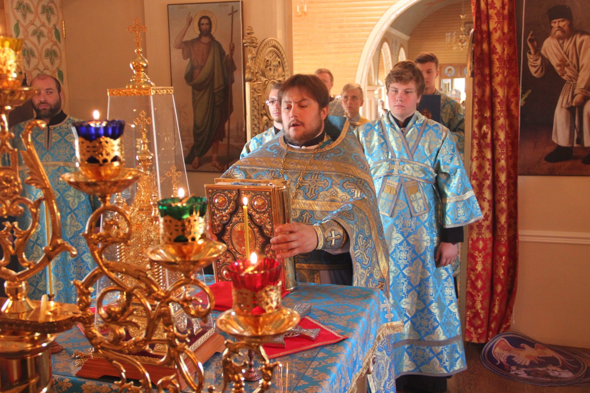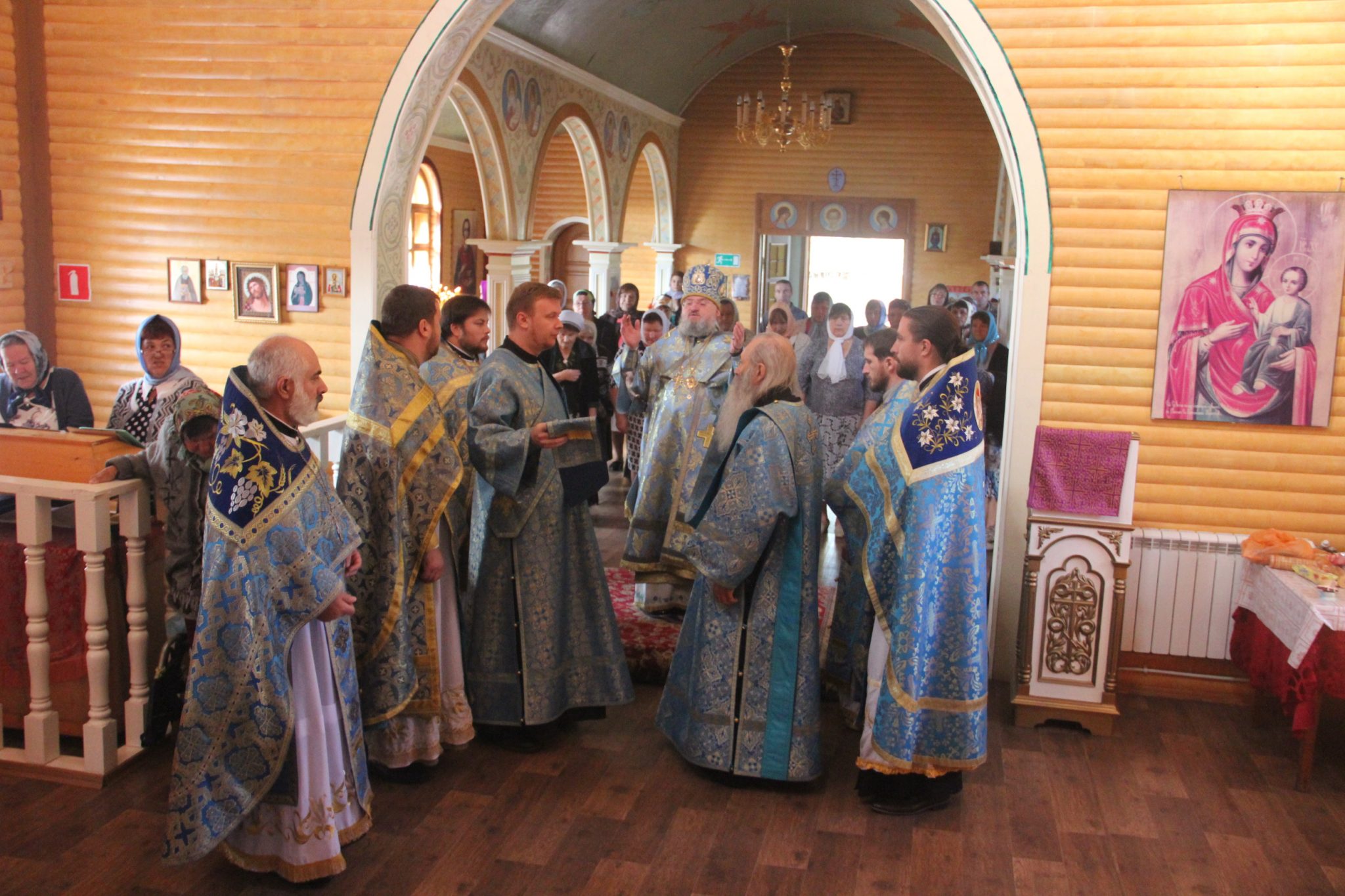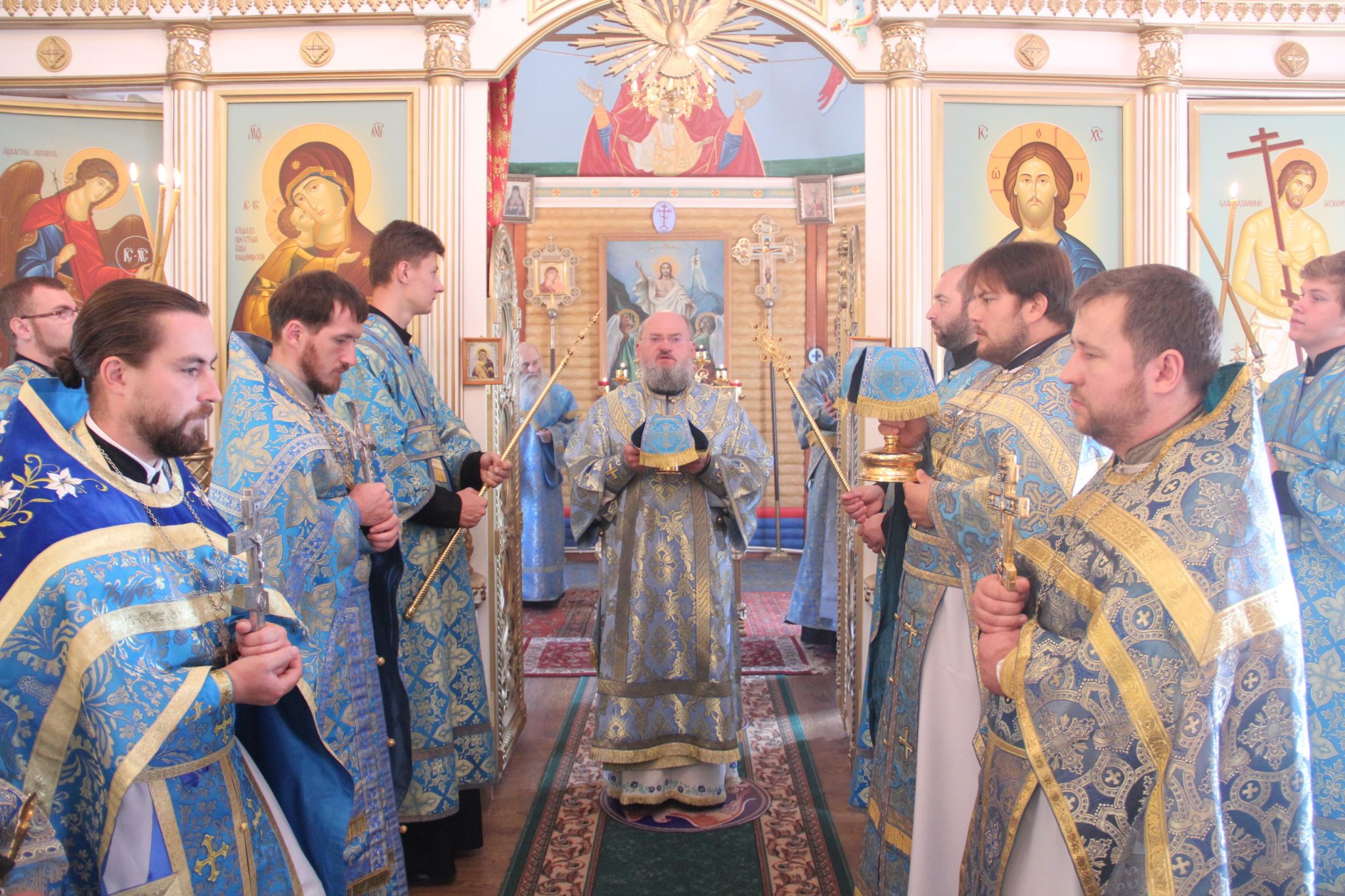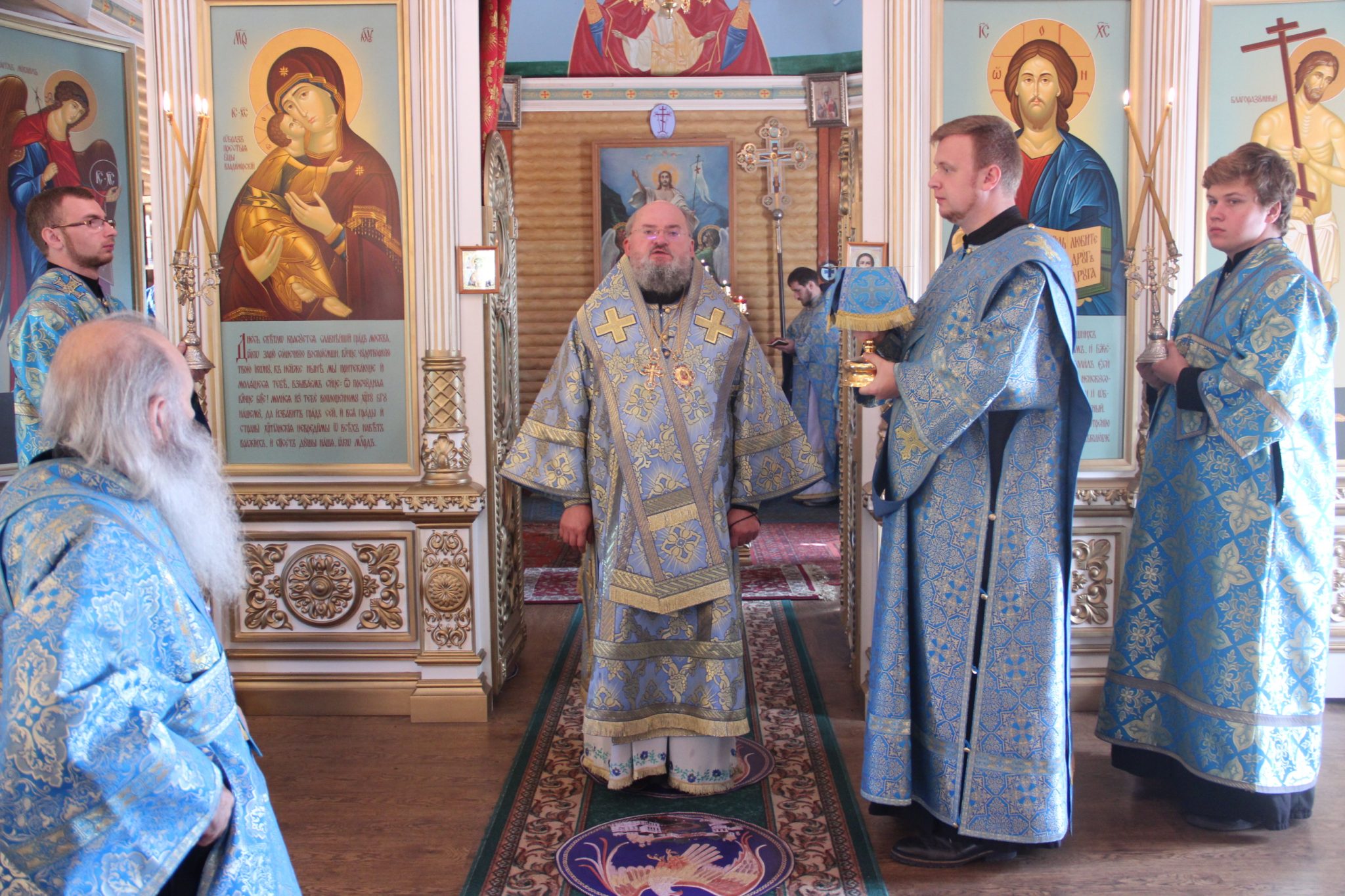 Его Преосвященству сослужили: протоиерей Антоний Хатунцев, иерей Георгий Махаринец, иерей Павел Мещеряков – настоятель храма, иерей Андрей Ахмедов, иерей Геннадий Сафиев, диакон Евгений Ковригин и иеродиакон Виталий (Павленко).
