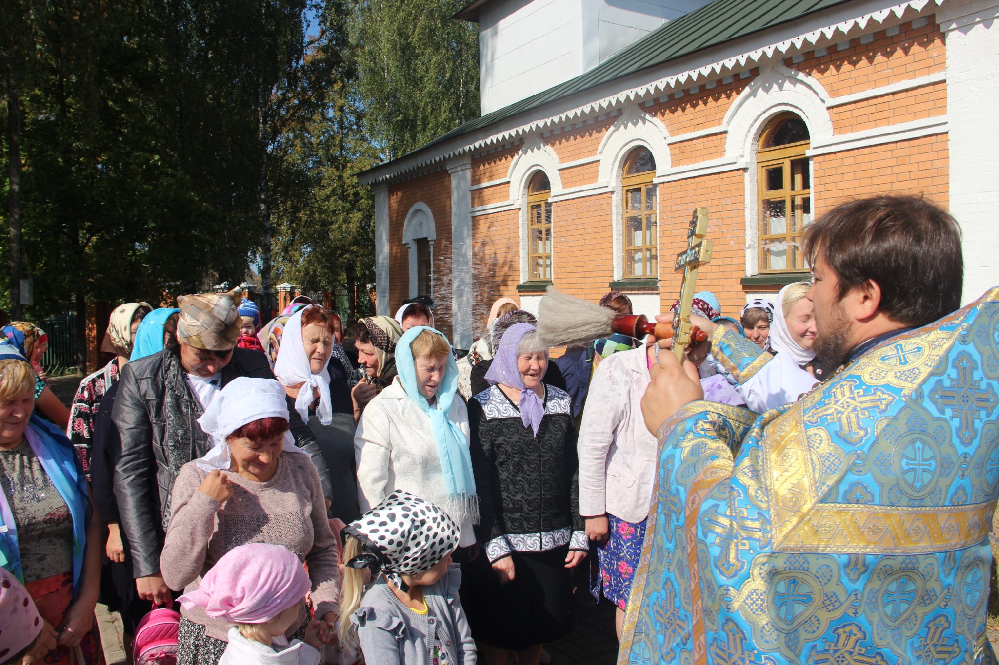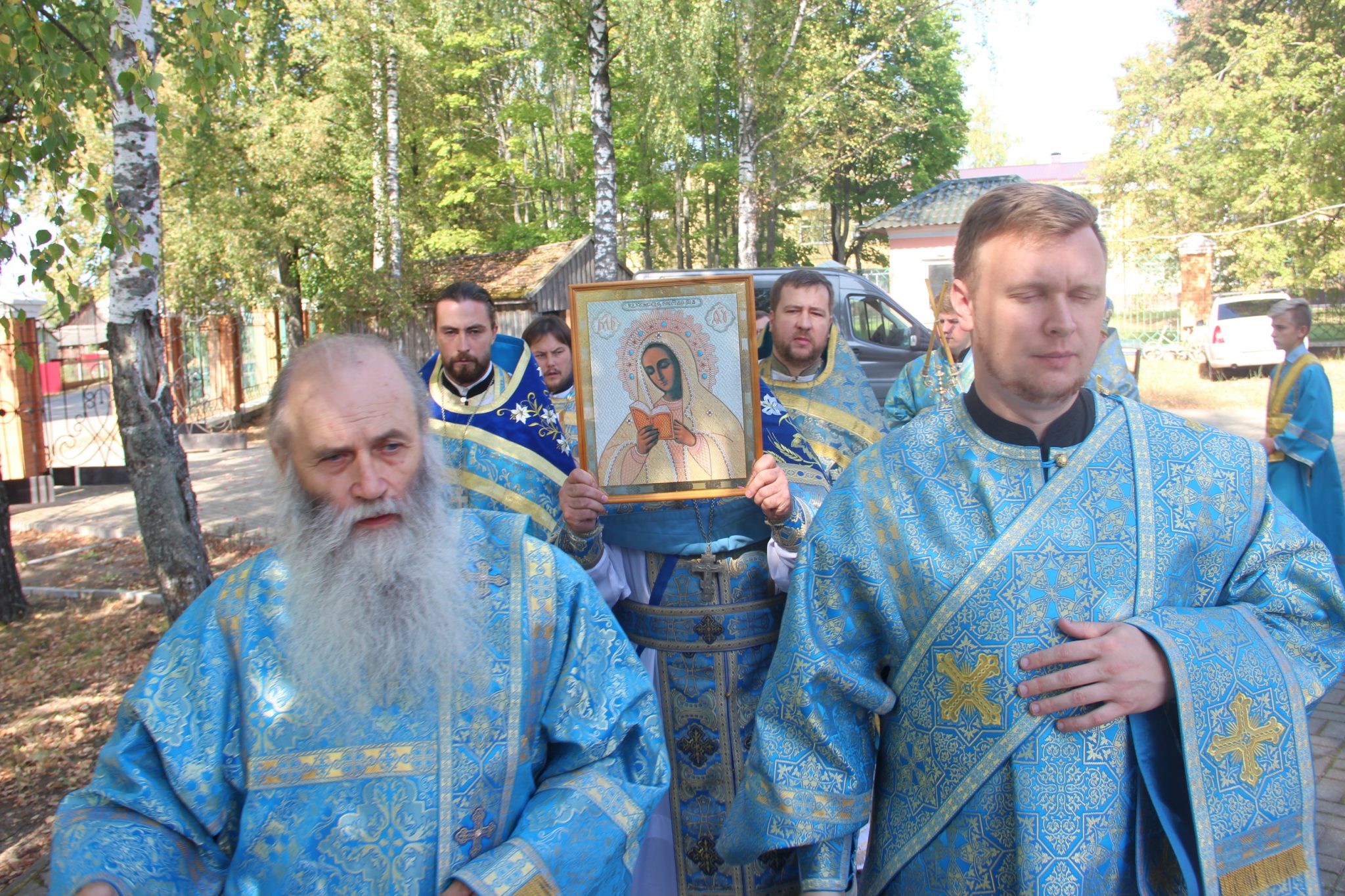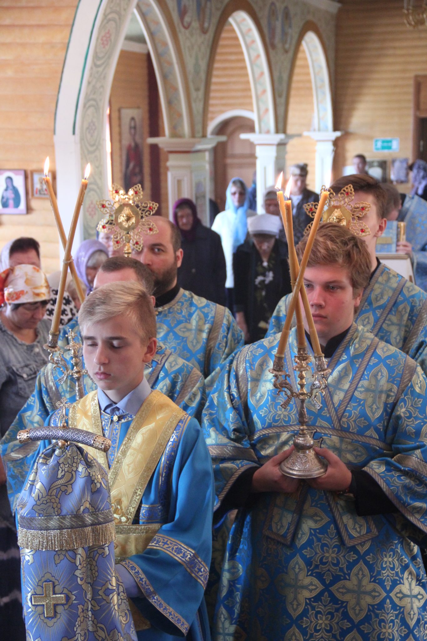 По отпусте литургии священнослужители совершили праздничное молебное пение Пресвятой Богородице и крестный ход вокруг храма.