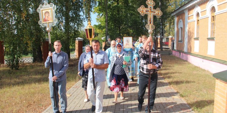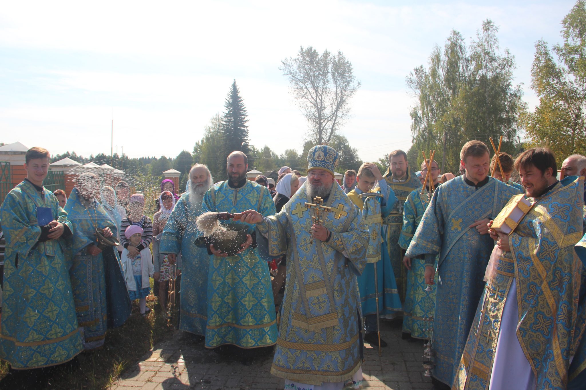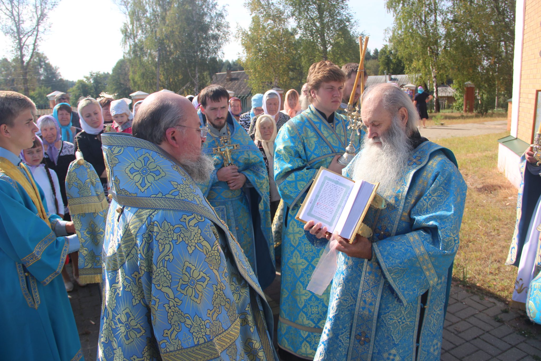 По отпусте литургии священнослужители совершили праздничное молебное пение Пресвятой Богородице и крестный ход вокруг храма.