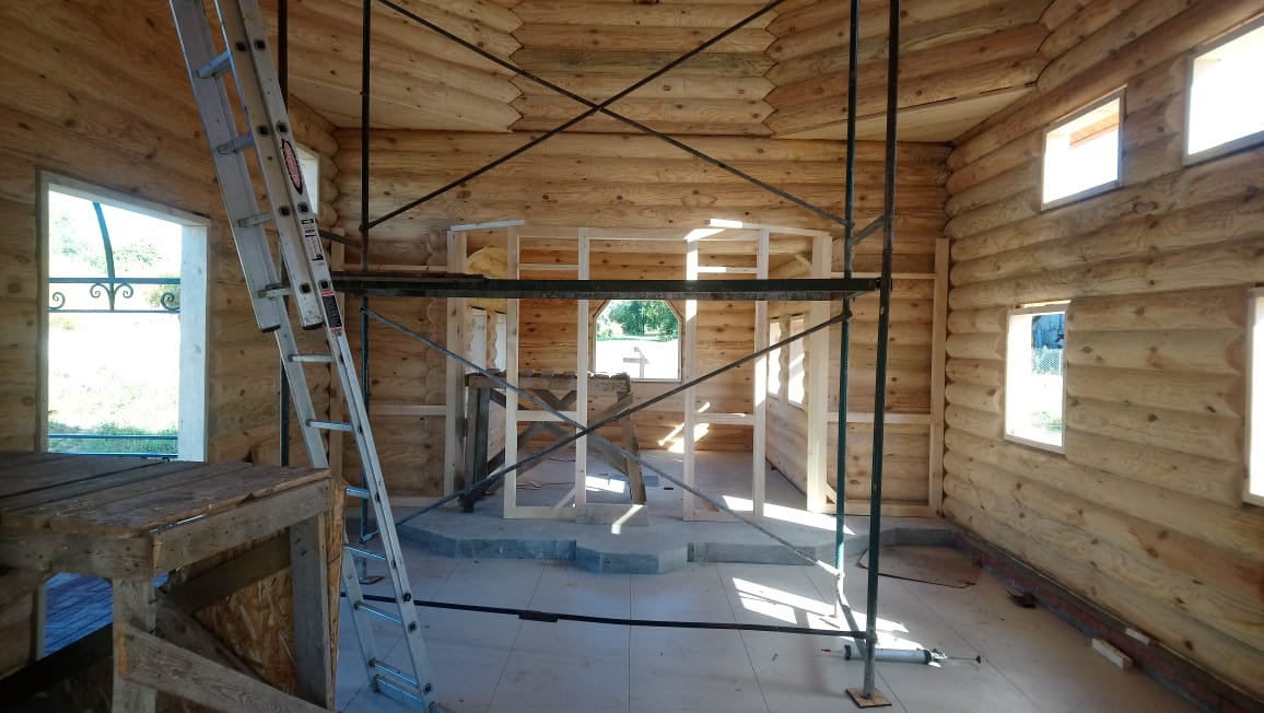 В настоящее время ведутся наружные работы, обустройство прихрамовой территории, готовится к установке иконостас.