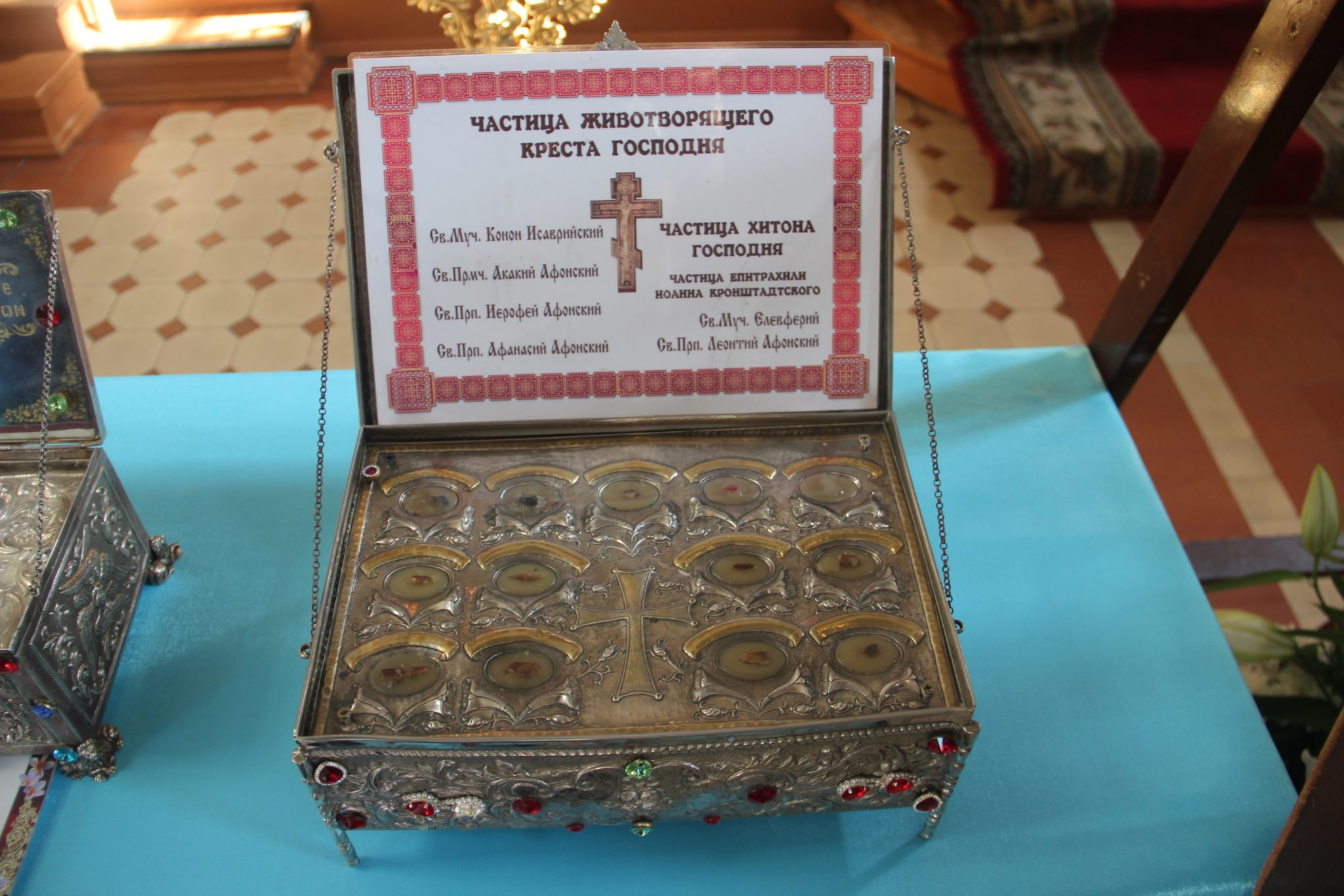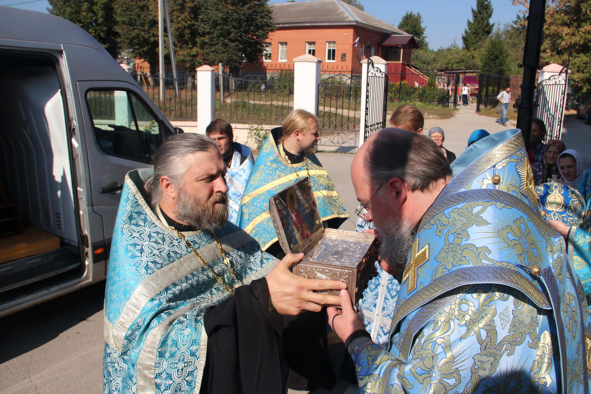 20 сентября в Благовещенский храм города Козельска прибыли святыни с Афонской горы. На площади у храма святыни встретил епископ Козельский и Людиновский Никита и священнослужители Козельского благочиния. После торжественной встречи началось молебное пение с акафистом Пресвятой Богородице, который совершил преосвященнейший Никита с собором духовенства. Святыни пробудут в Козельске до 27 сентября. Ежедневно пред ними будут совершаться молебны и акафисты.