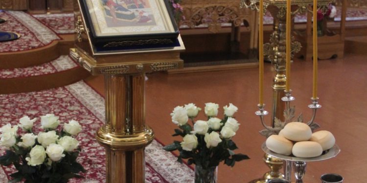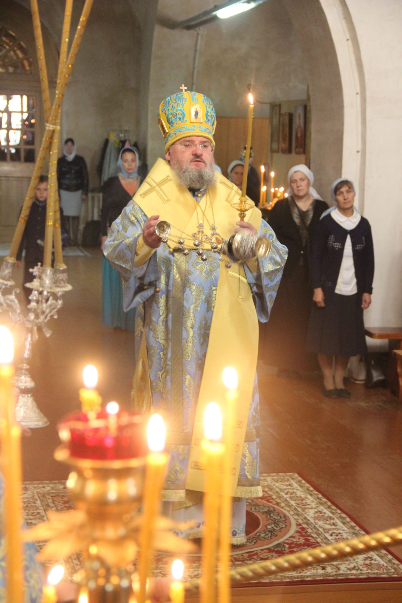 20 сентября накануне великого двунадесятого праздника Рождества Пресвятой Богородицы епископ Козельский и Людиновский Никита в сослужении клира храма совершил всенощное бдение в Успенском кафедральном соборе города Козельска.
