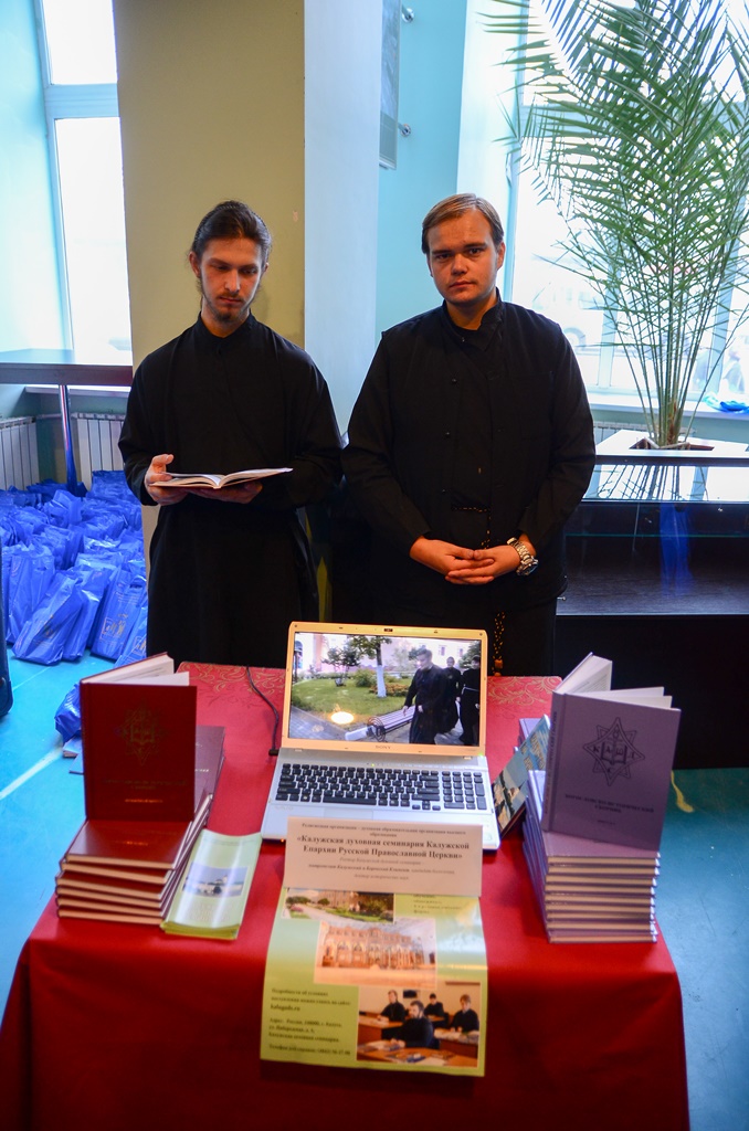 Перед началом чтений в фойе были представлены различные выставки, презентации и стендовые доклады. Особое внимание было уделено выставке «Портреты современных писателей» Заслуженного художника России Александра Алмазова и «Вечные ценности в творчестве молодежи» студентов Калужского духовного училища.