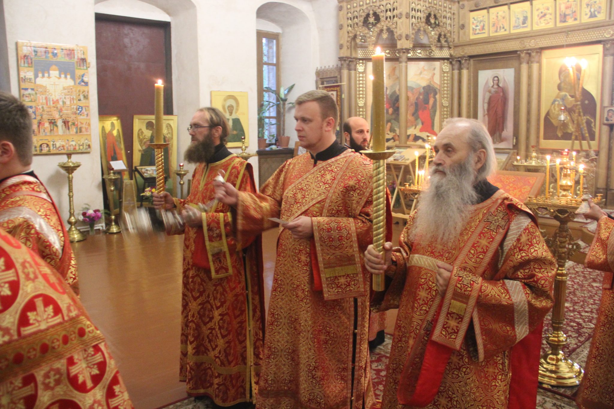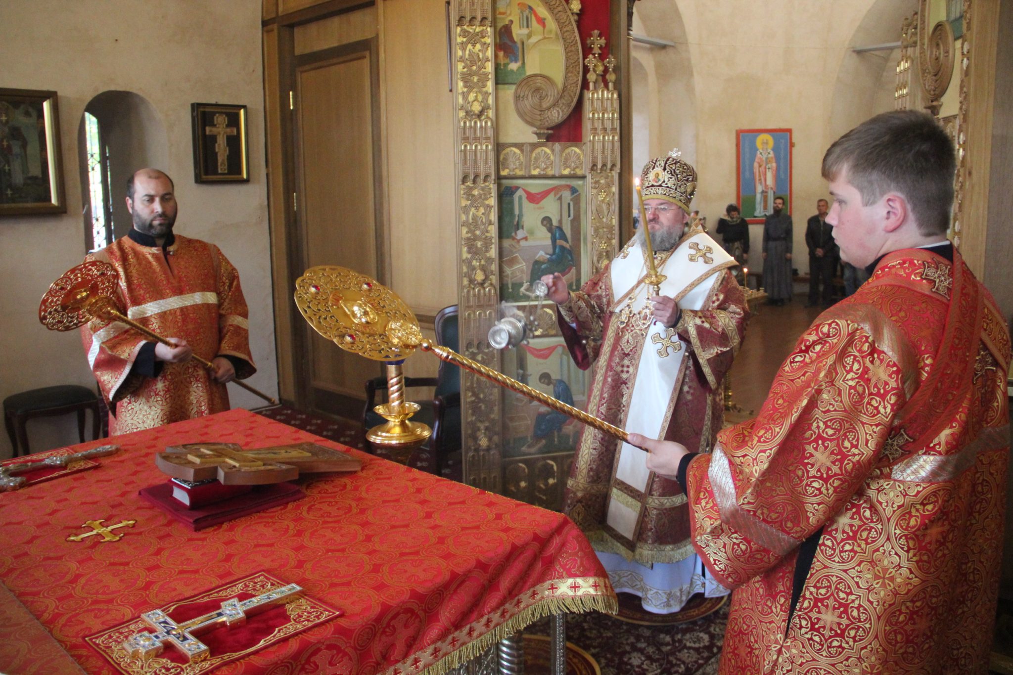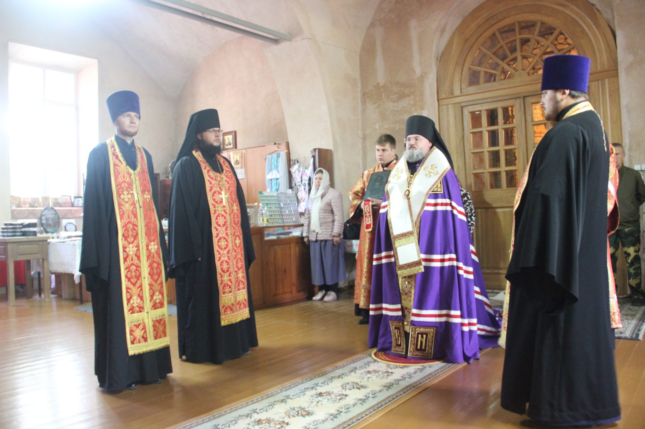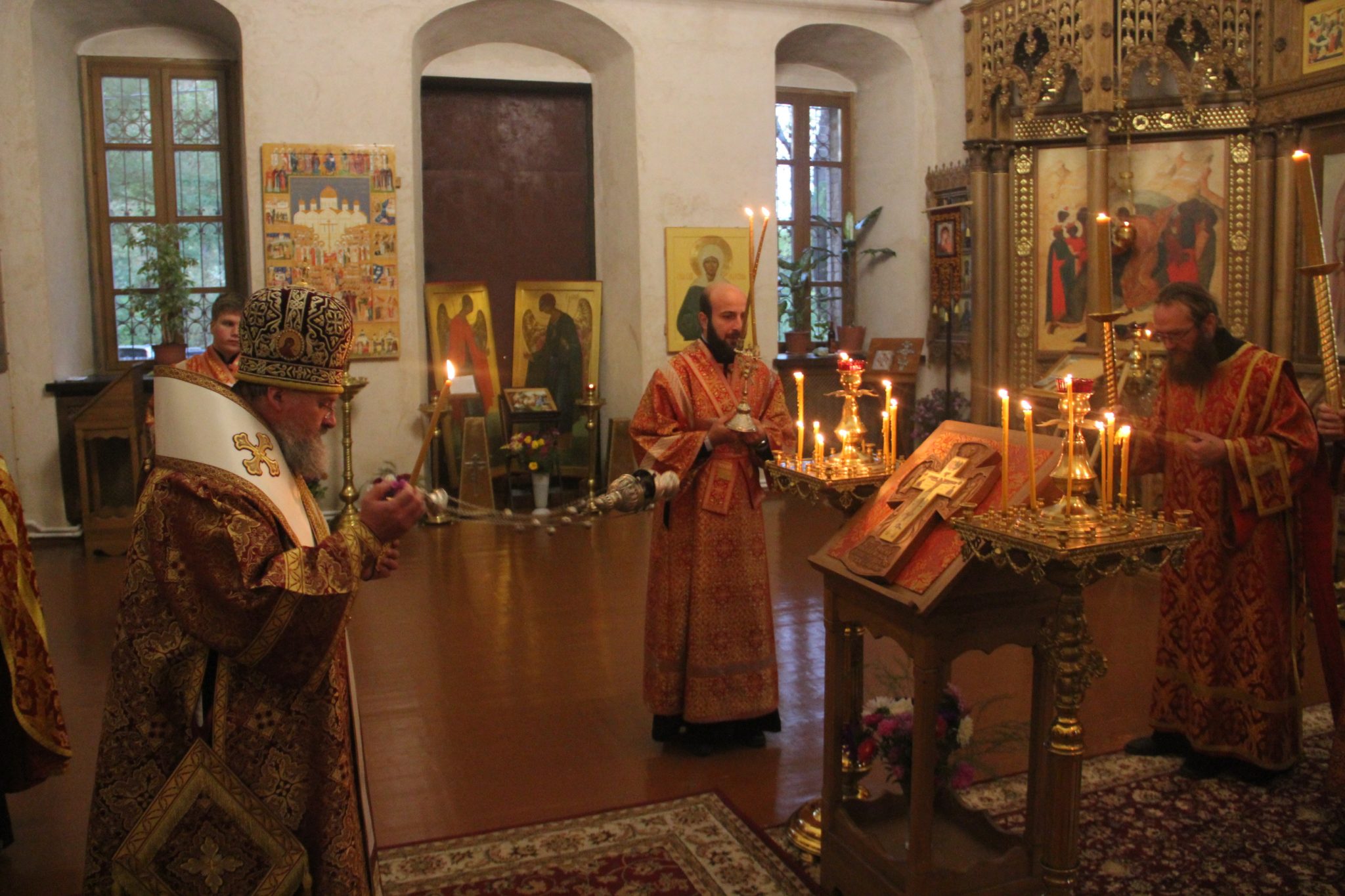 26 сентября накануне великого двунадесятого праздника Воздвижения Креста Господня епископ Козельский и Людиновский Никита, в сослужении клира храма, совершил всенощное бдение с чином Воздвижения Креста в Успенском кафедральном соборе города Козельска.