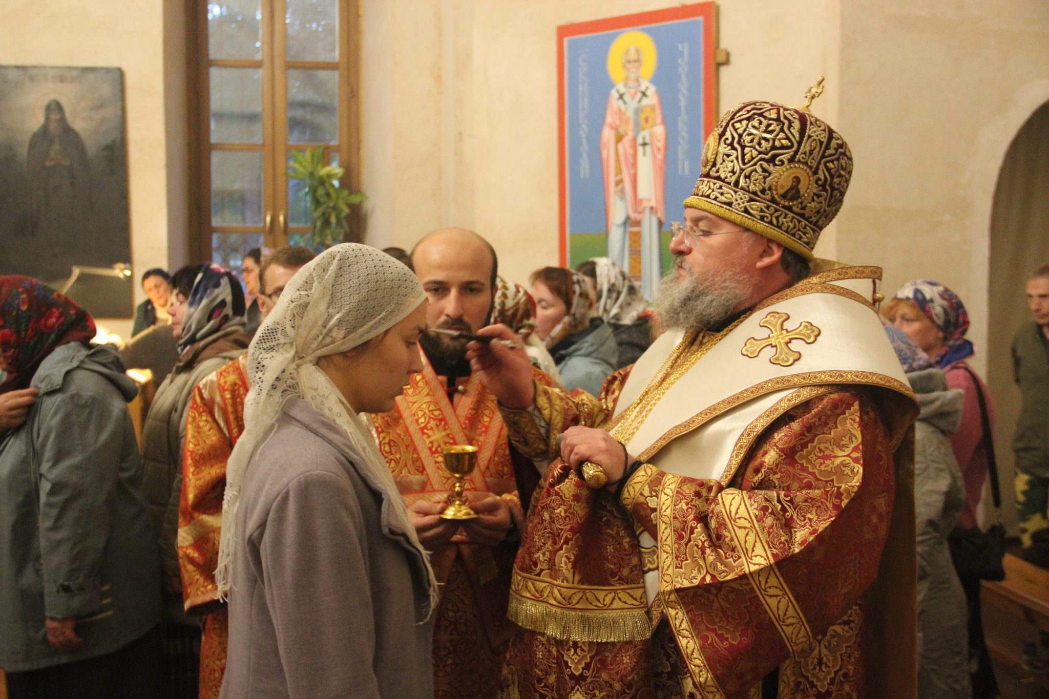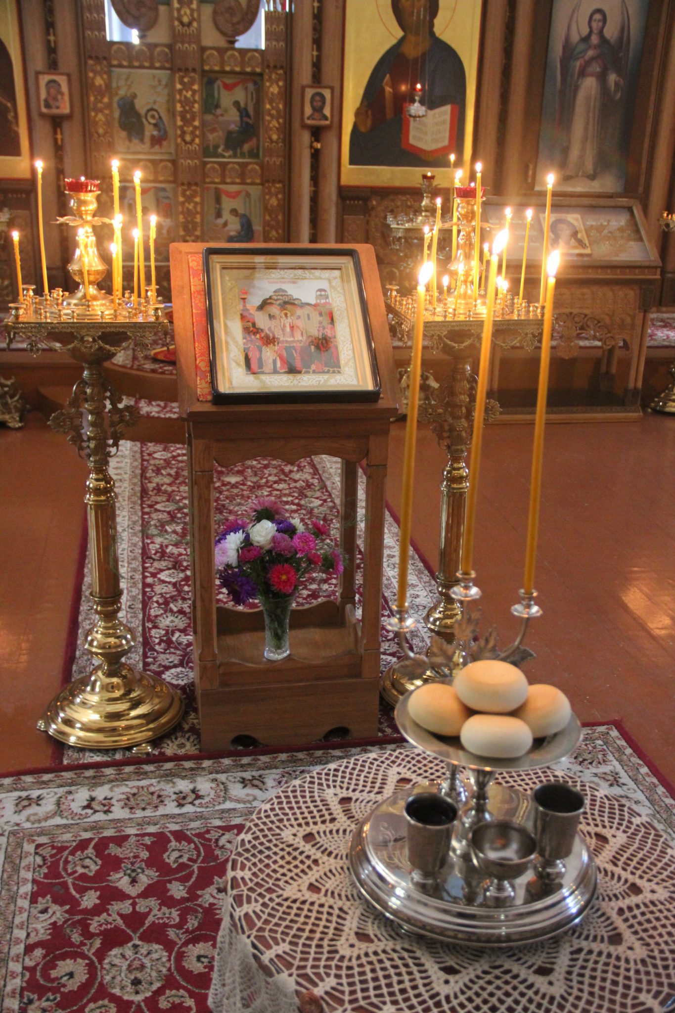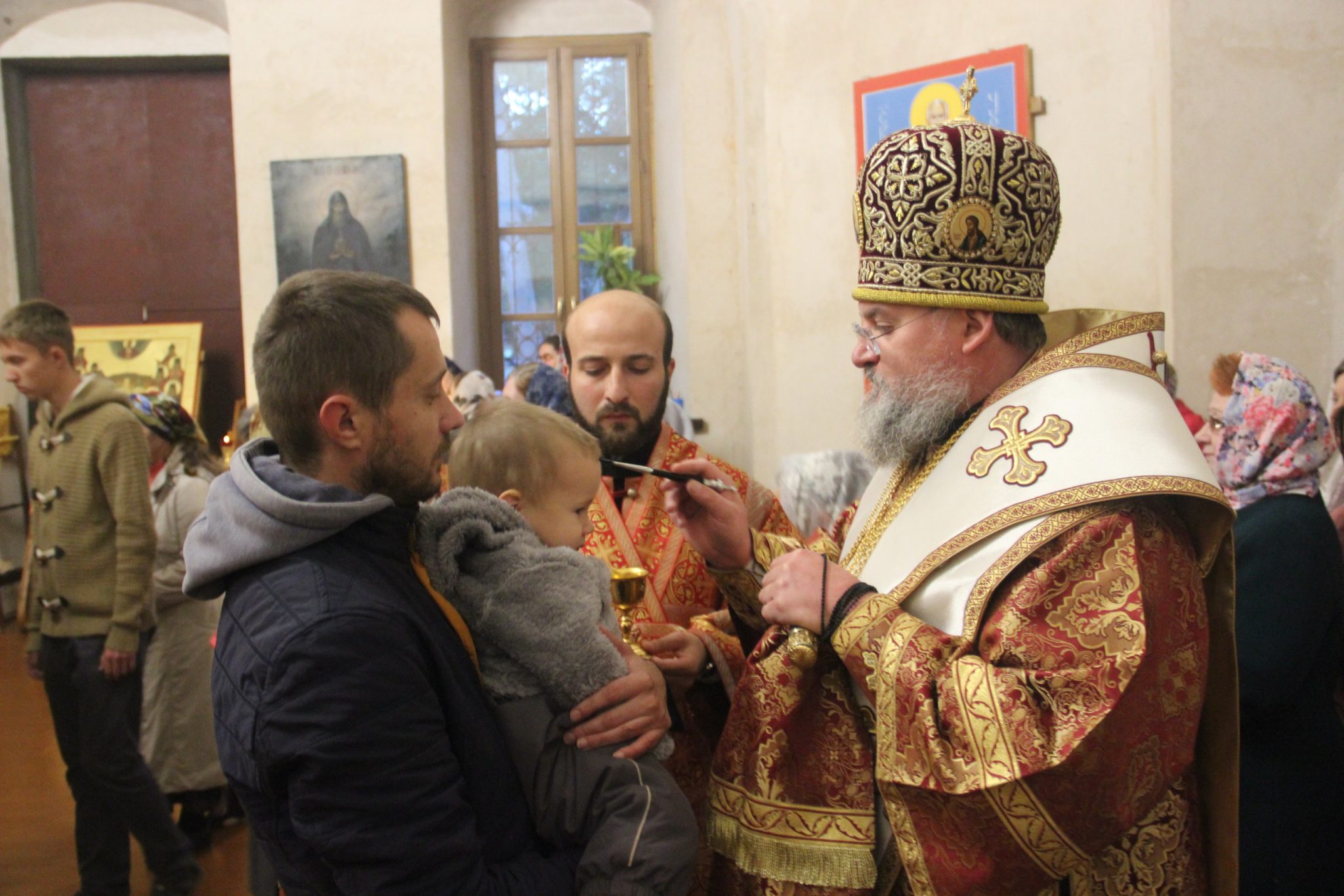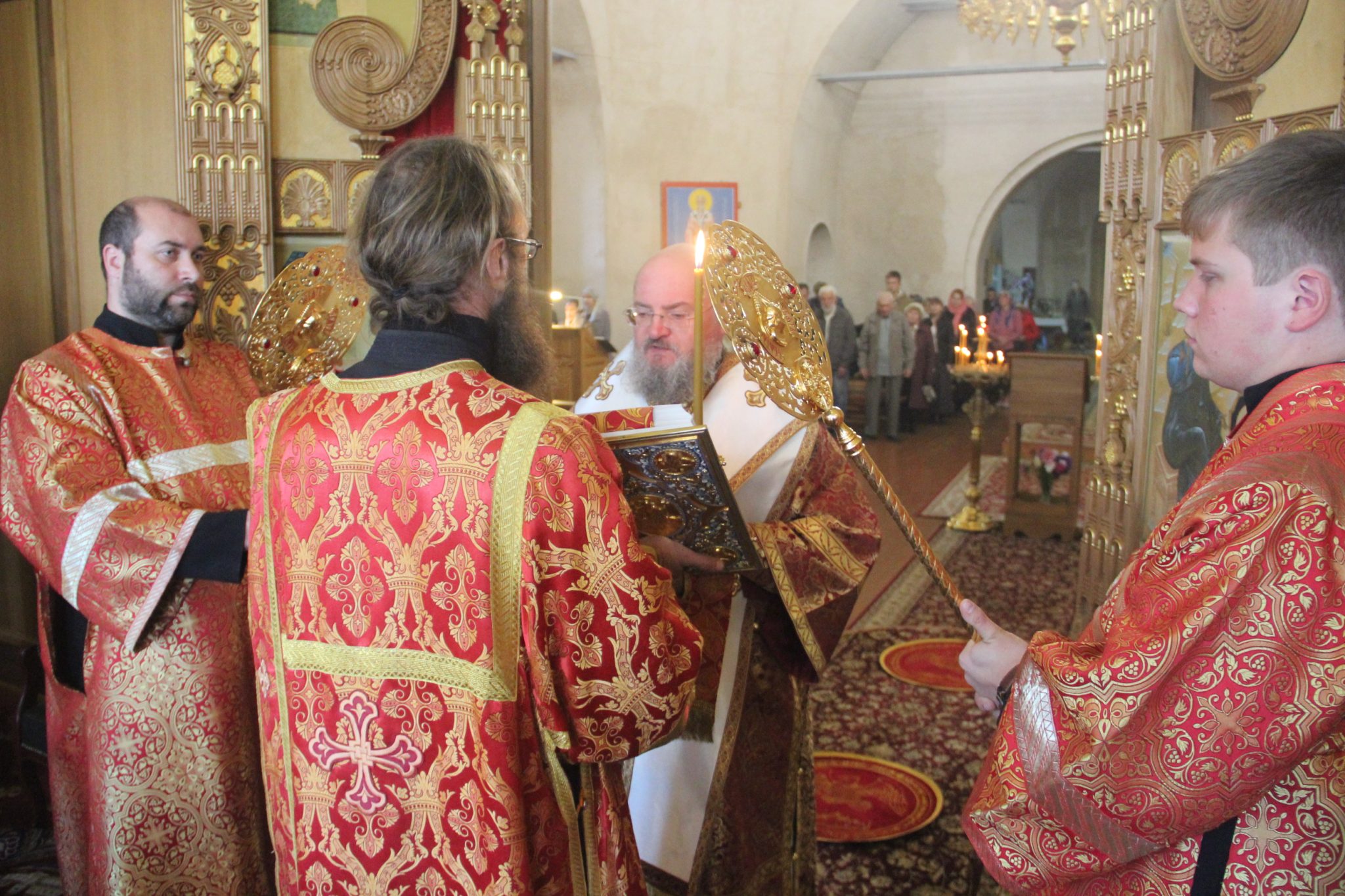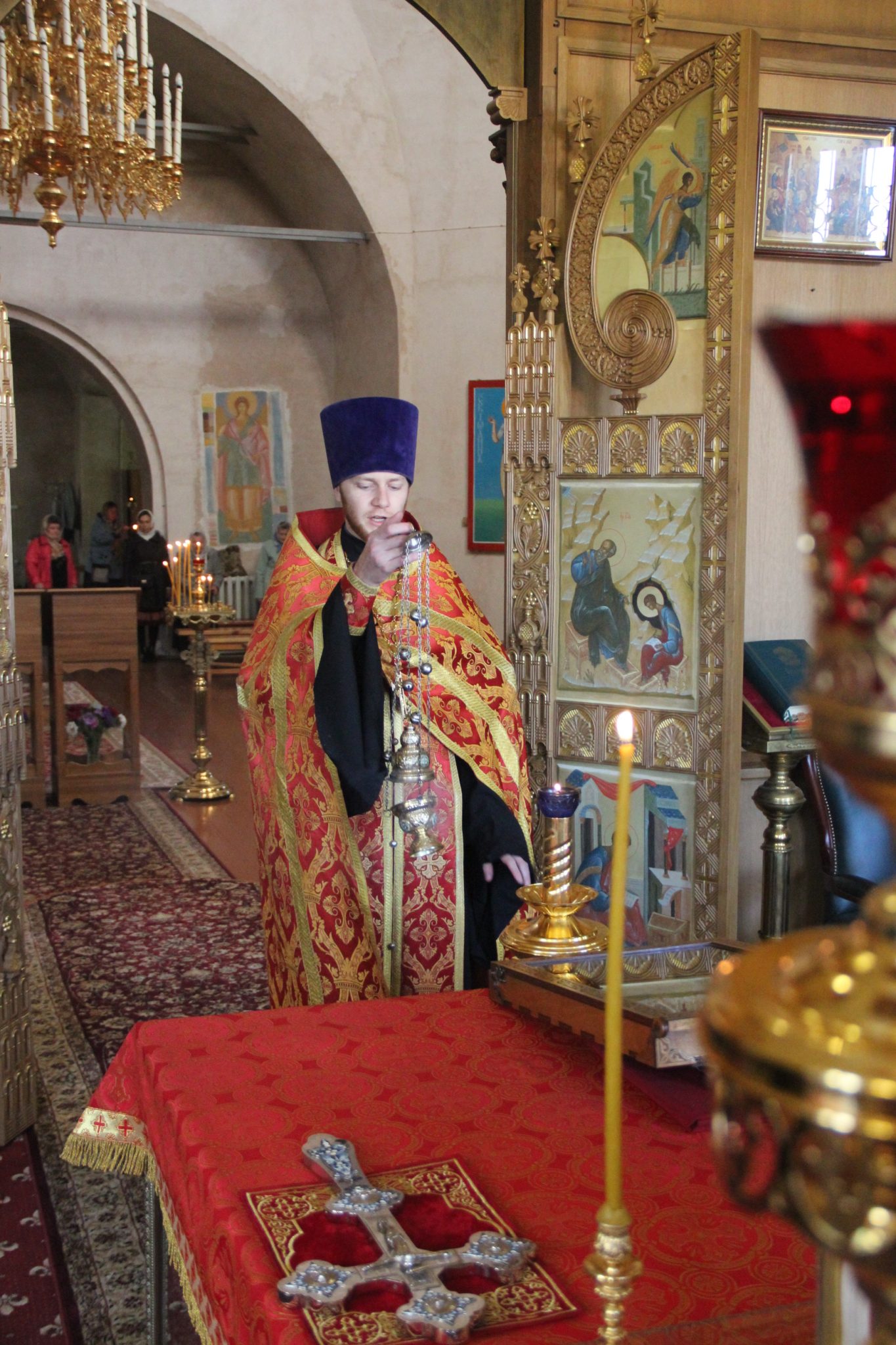 26 сентября накануне великого двунадесятого праздника Воздвижения Креста Господня епископ Козельский и Людиновский Никита, в сослужении клира храма, совершил всенощное бдение с чином Воздвижения Креста в Успенском кафедральном соборе города Козельска.