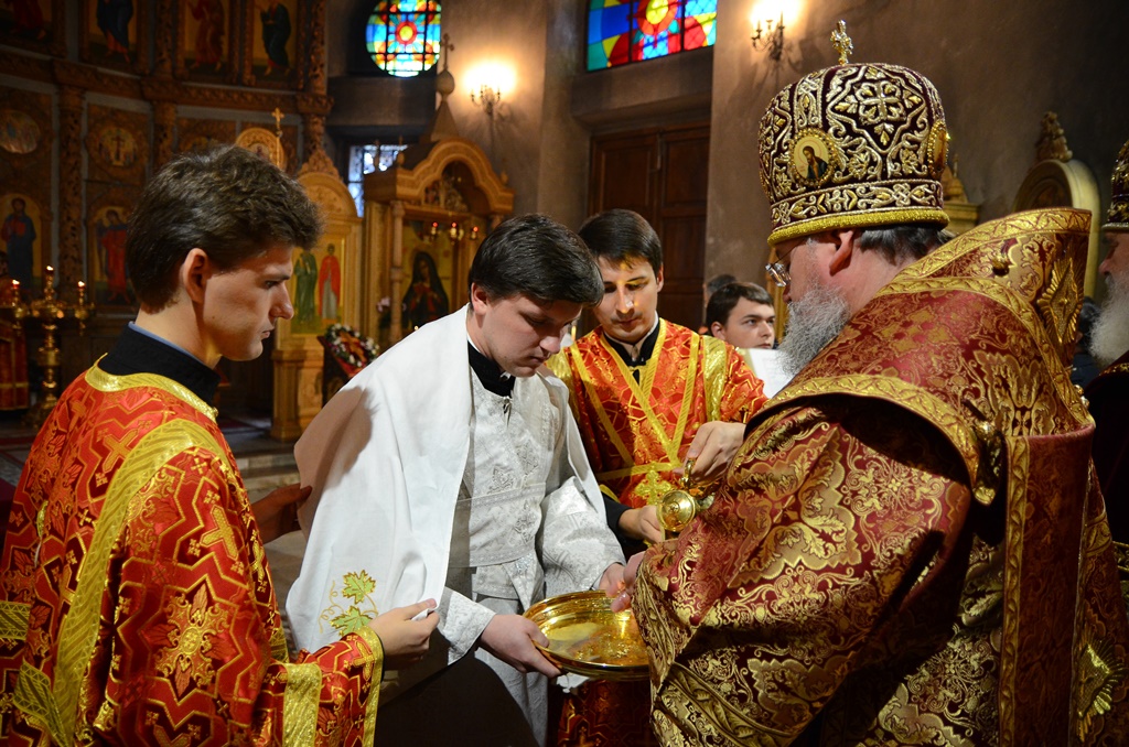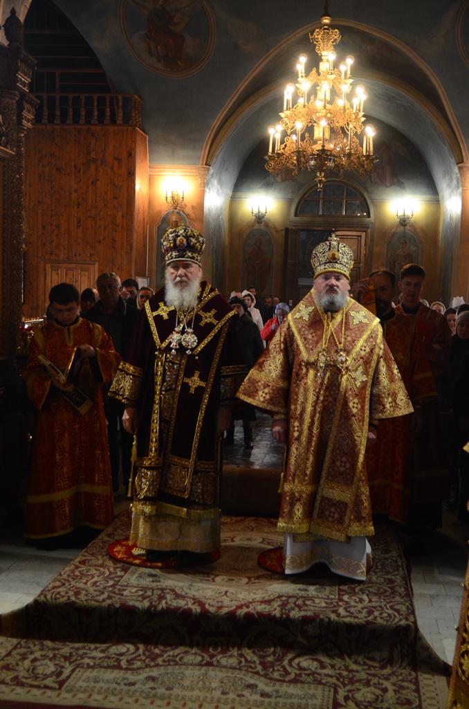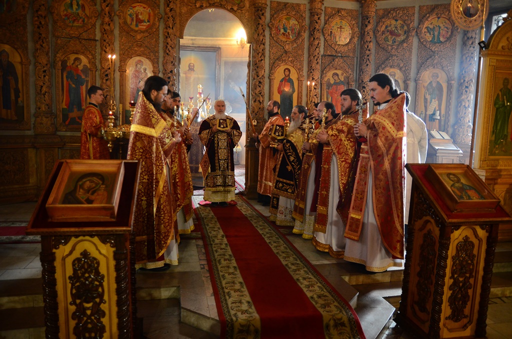 На сугубой ектенье были произнесены особые прошения «о единстве Святого Православия», после чего глава Калужской митрополии вознес молитву о мире на Украине.