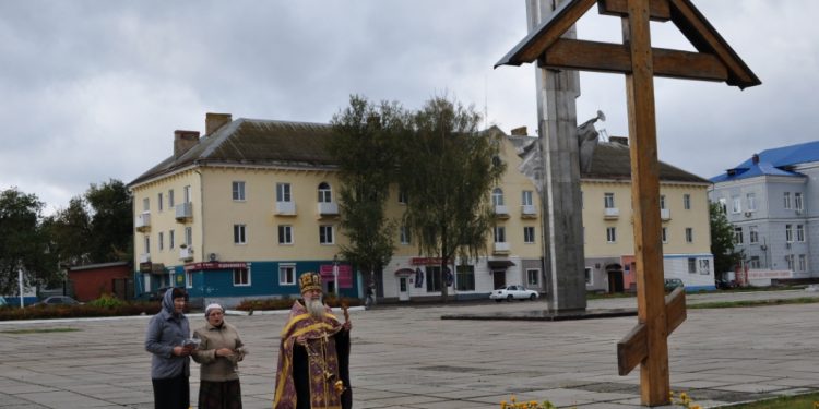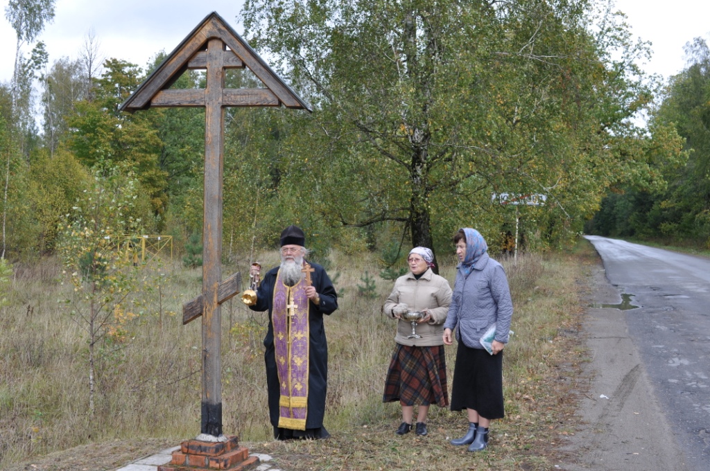По традиции посетили места установления благословенных Крестов на въездах города Людиново со стороны Жиздры в ОЭЗ, со стороны д. Букань, со стороны пос. Алексеевский, со стороны д. Романовка, а также посетили поклонный Крест на площади Победы. Священник совершил вокруг Крестов троекратное каждение и при пении тропаря, кондака и величания окропил Кресты святой водой.