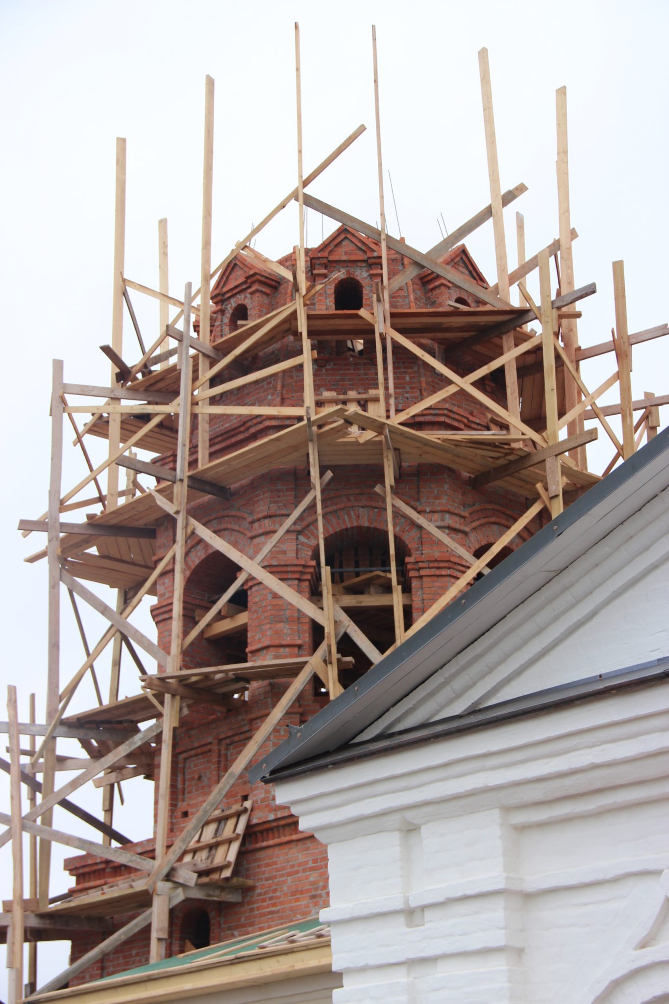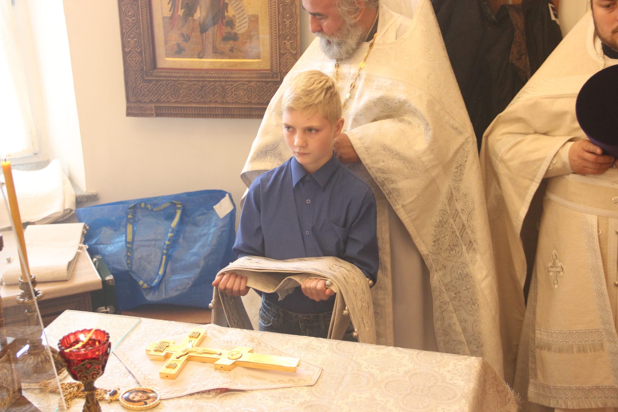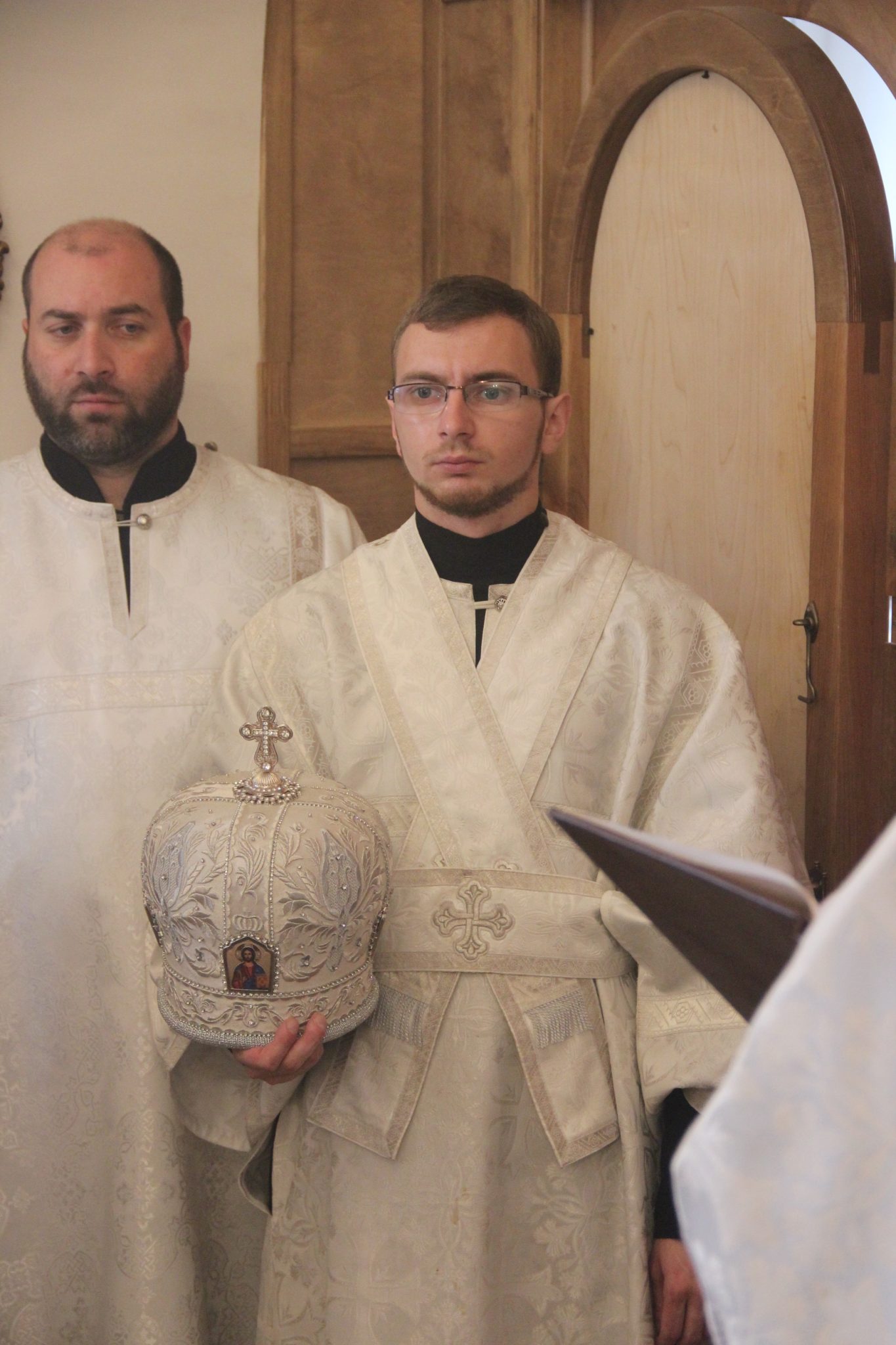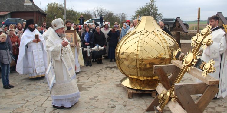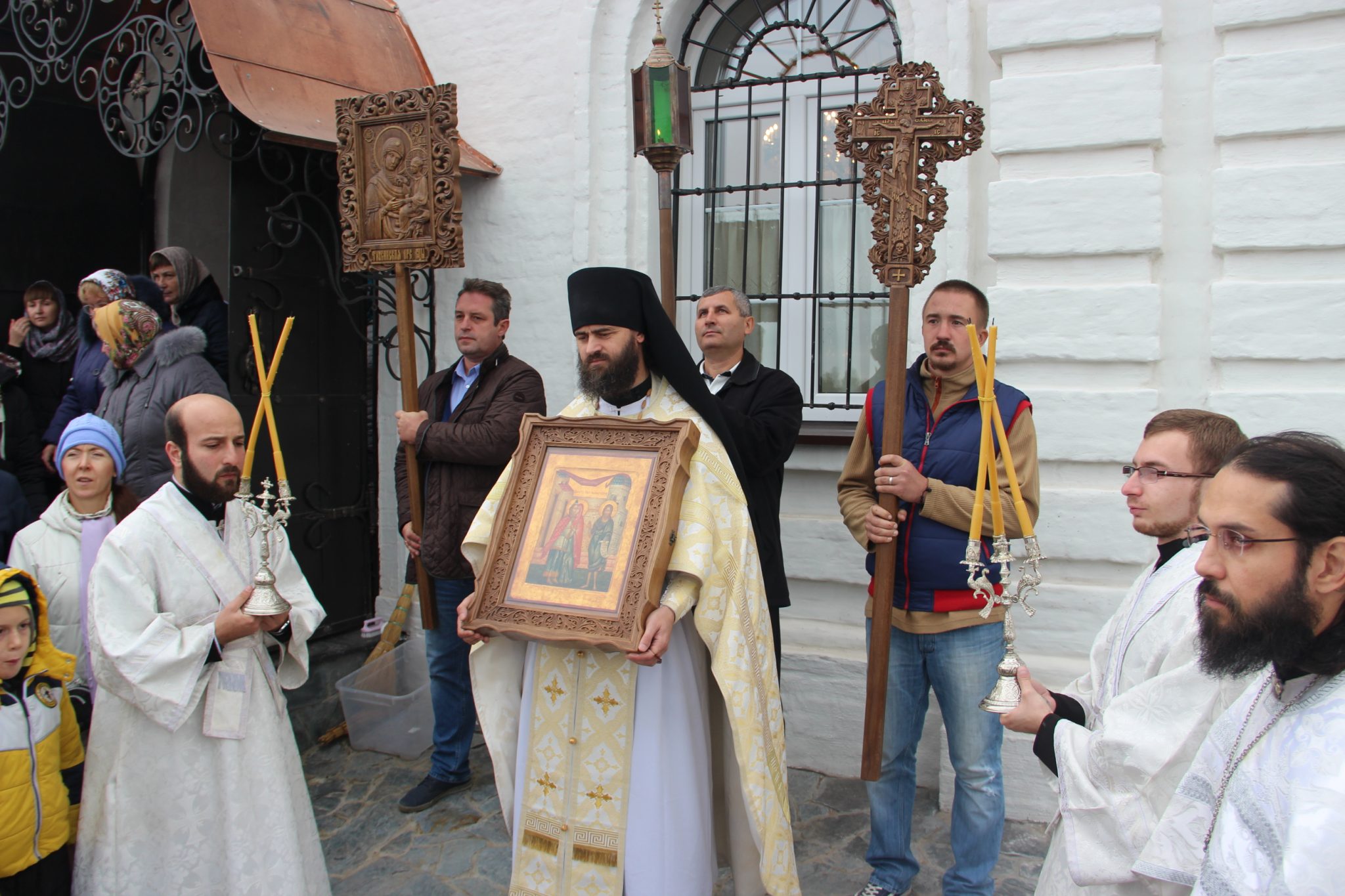 По отпусте литургии священнослужители совершили праздничный молебен и крестный ход вокруг храма, на котором, по прочтении Евангелия, владыка освятил накупольный крест и купол для колокольни.