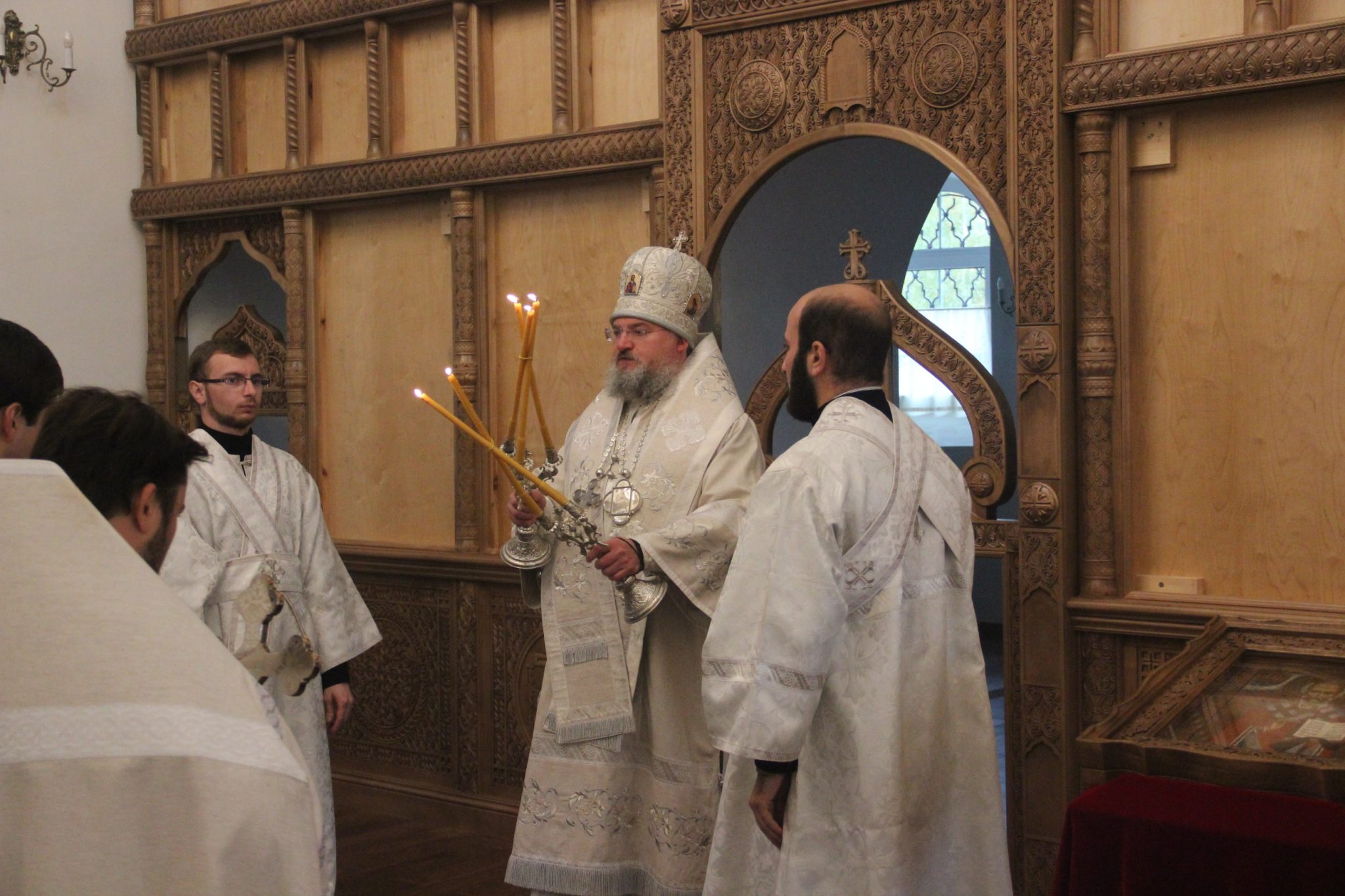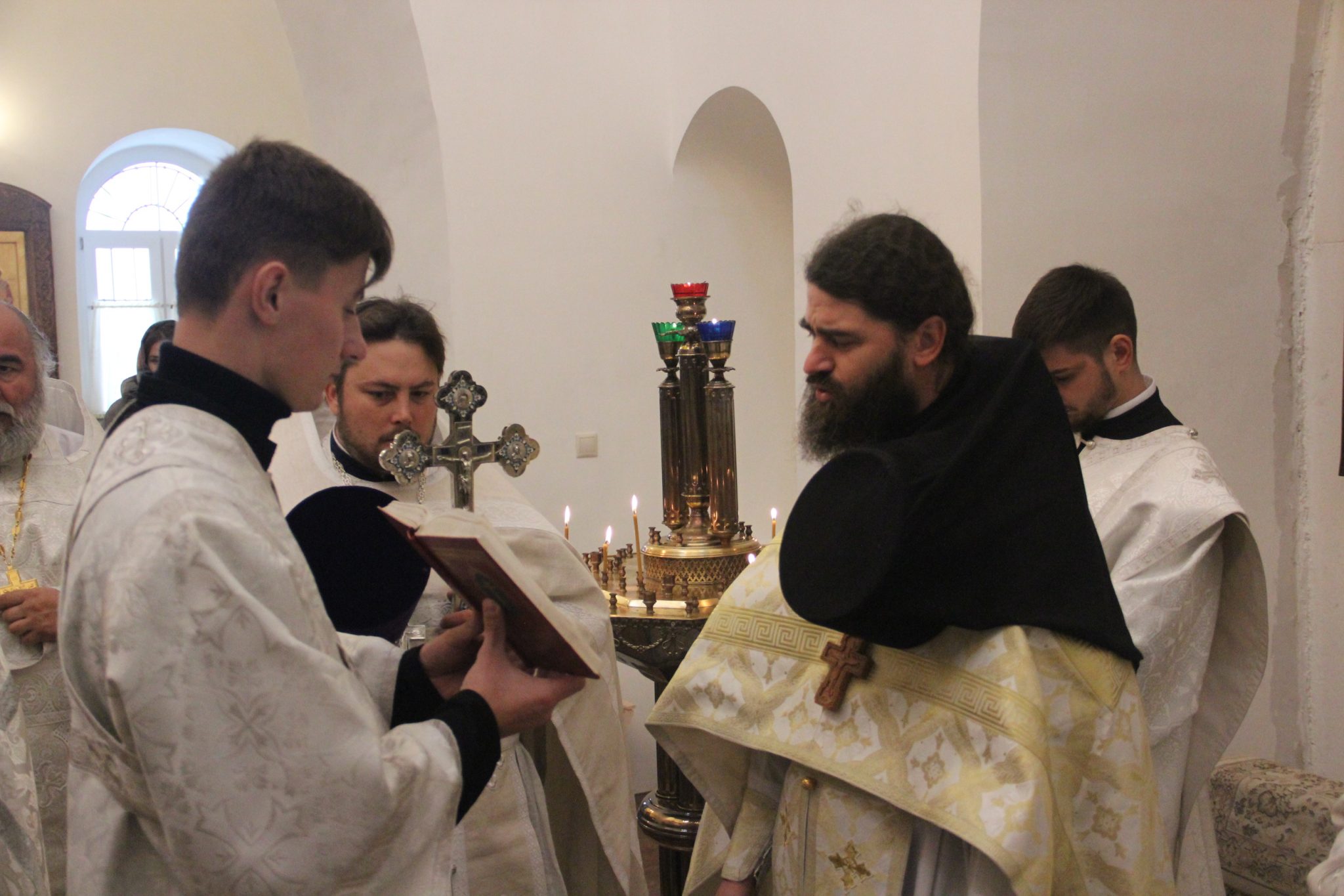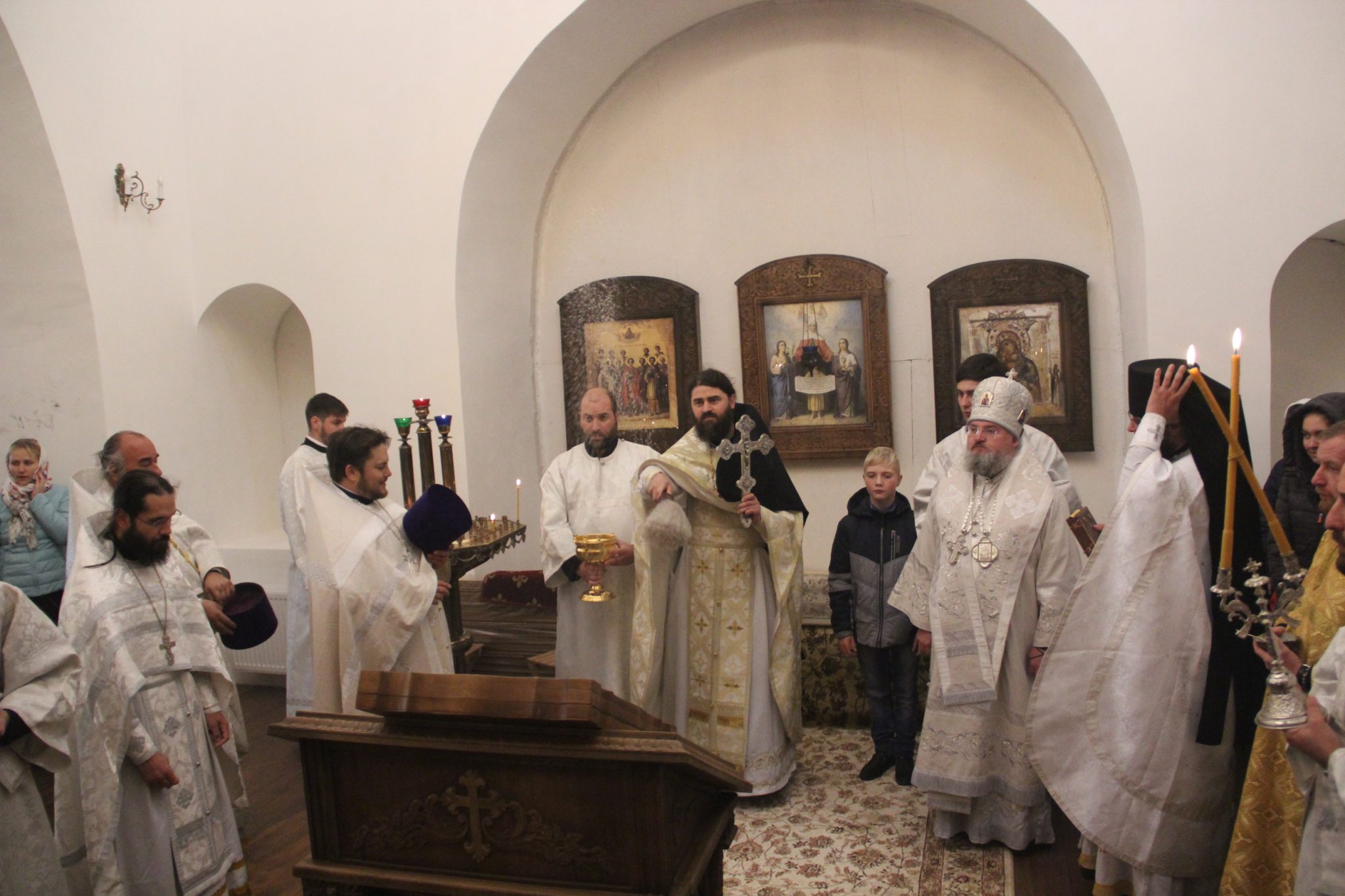 Архипастырю сослужили: протоиерей Антоний Хатунцев, иеромонах Паисий (Курмаз), насельник Оптиной Пустыни иеромонах Вадим, клирики Козельской и Брянской епархий.
