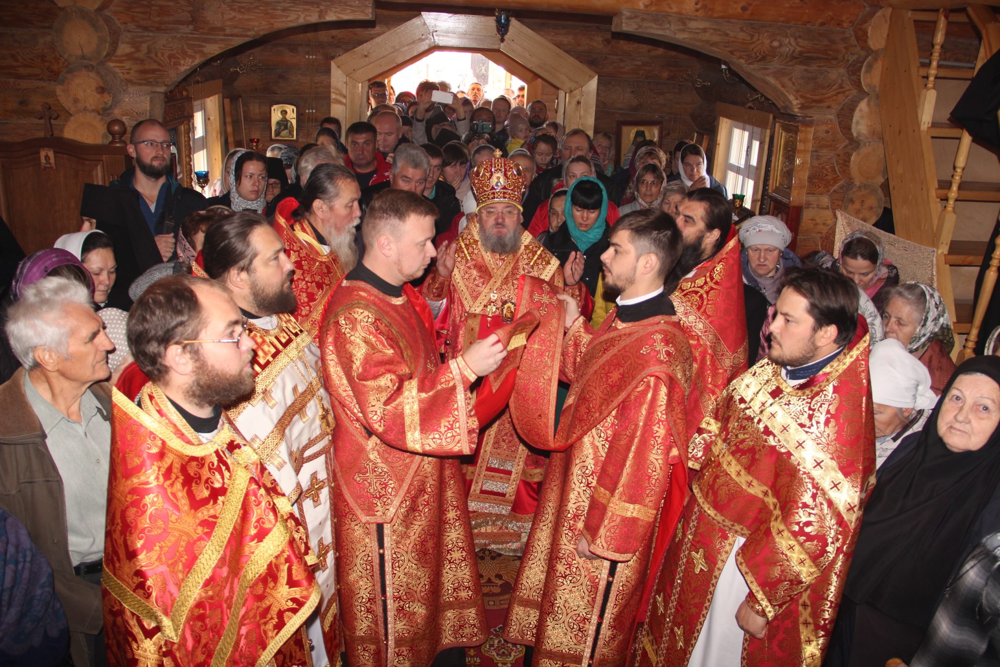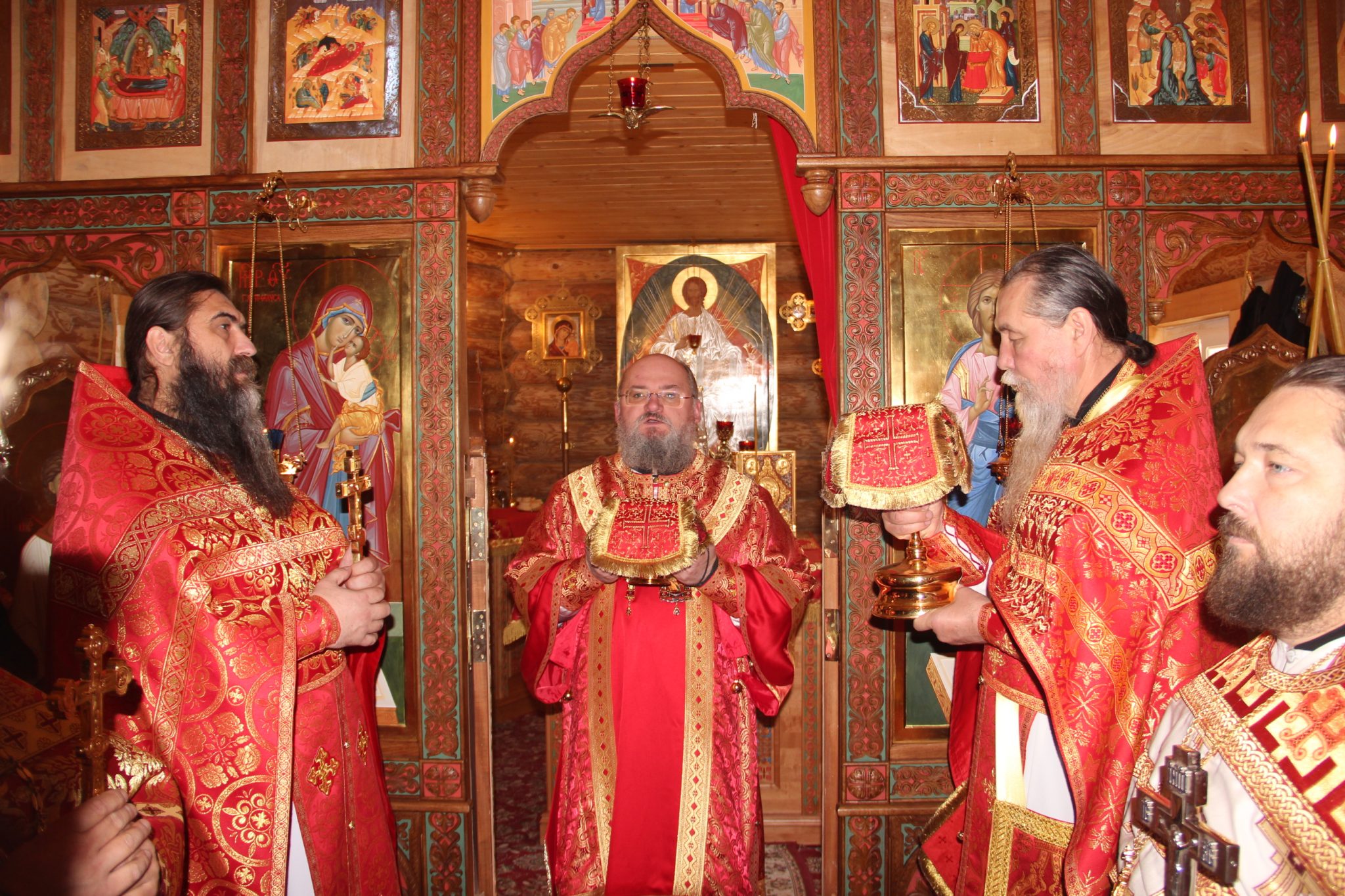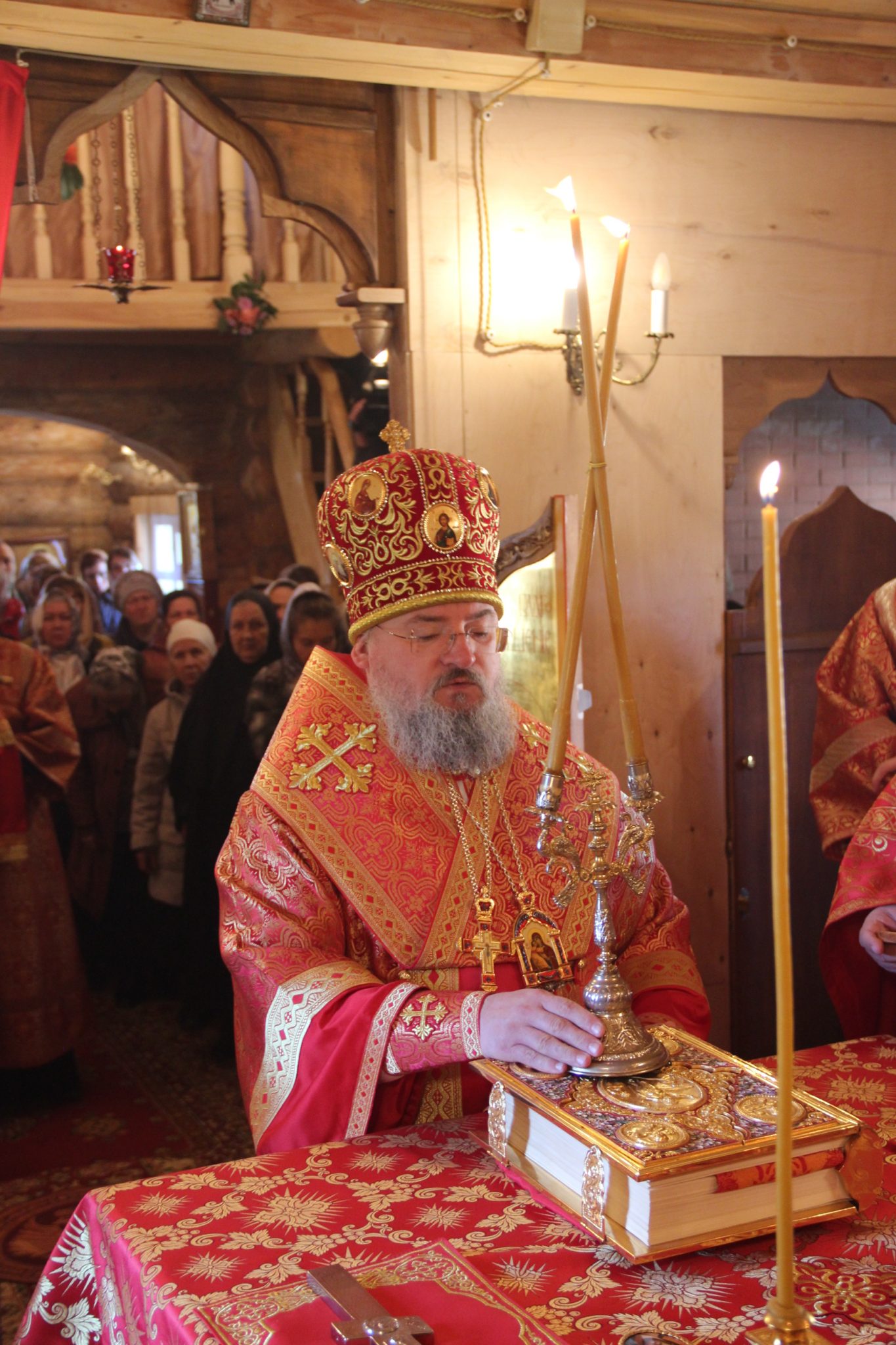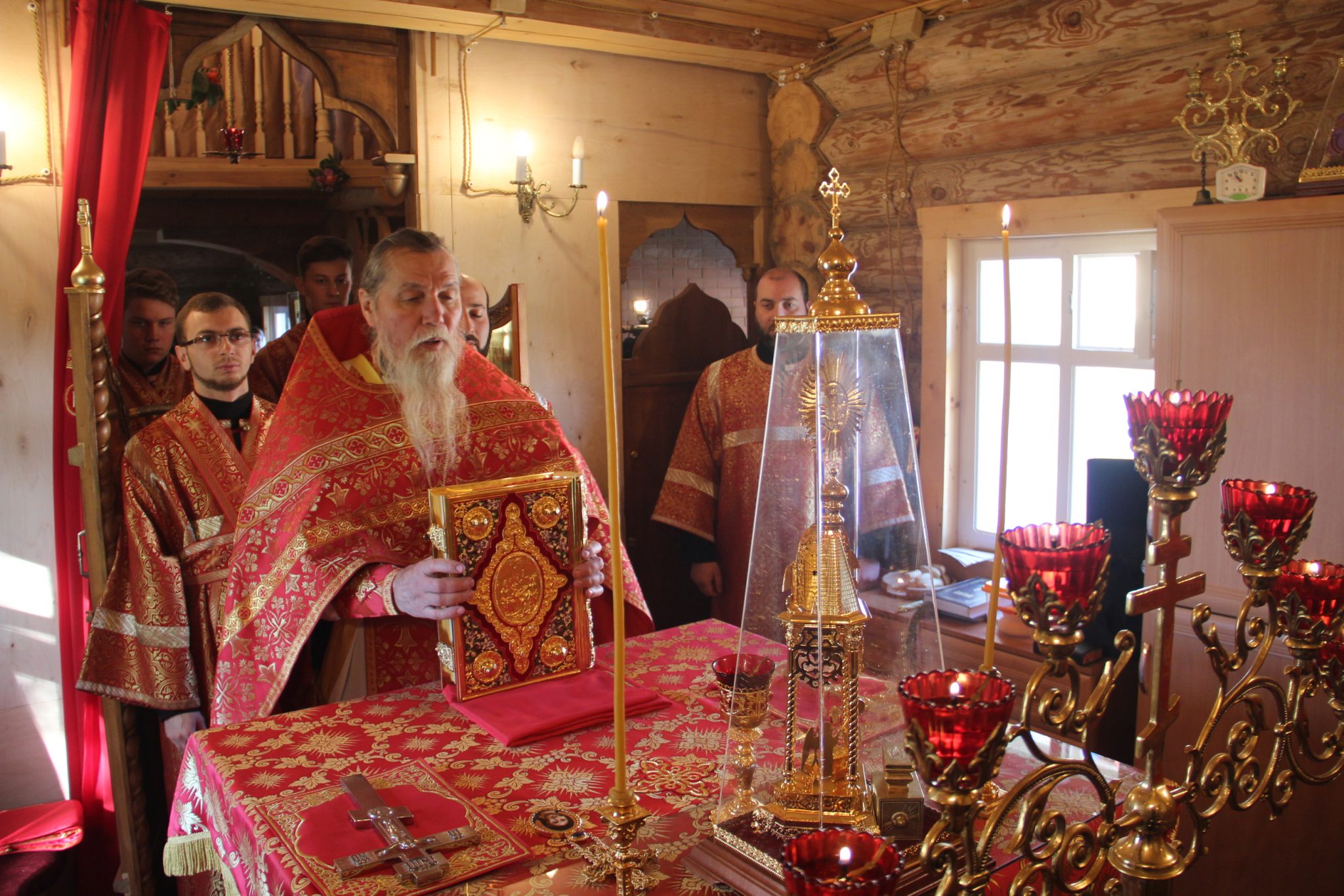 Его Преосвященству сослужили: архимандрит Антоний (Гаврилов), игумен Михаил (Семенов), протоиерей Владимир Бахаев, протоиерей Антоний Хатунцев, иерей Михаил Пестов, диакон Евгений Ковригин и диакон Евгений Васильев.