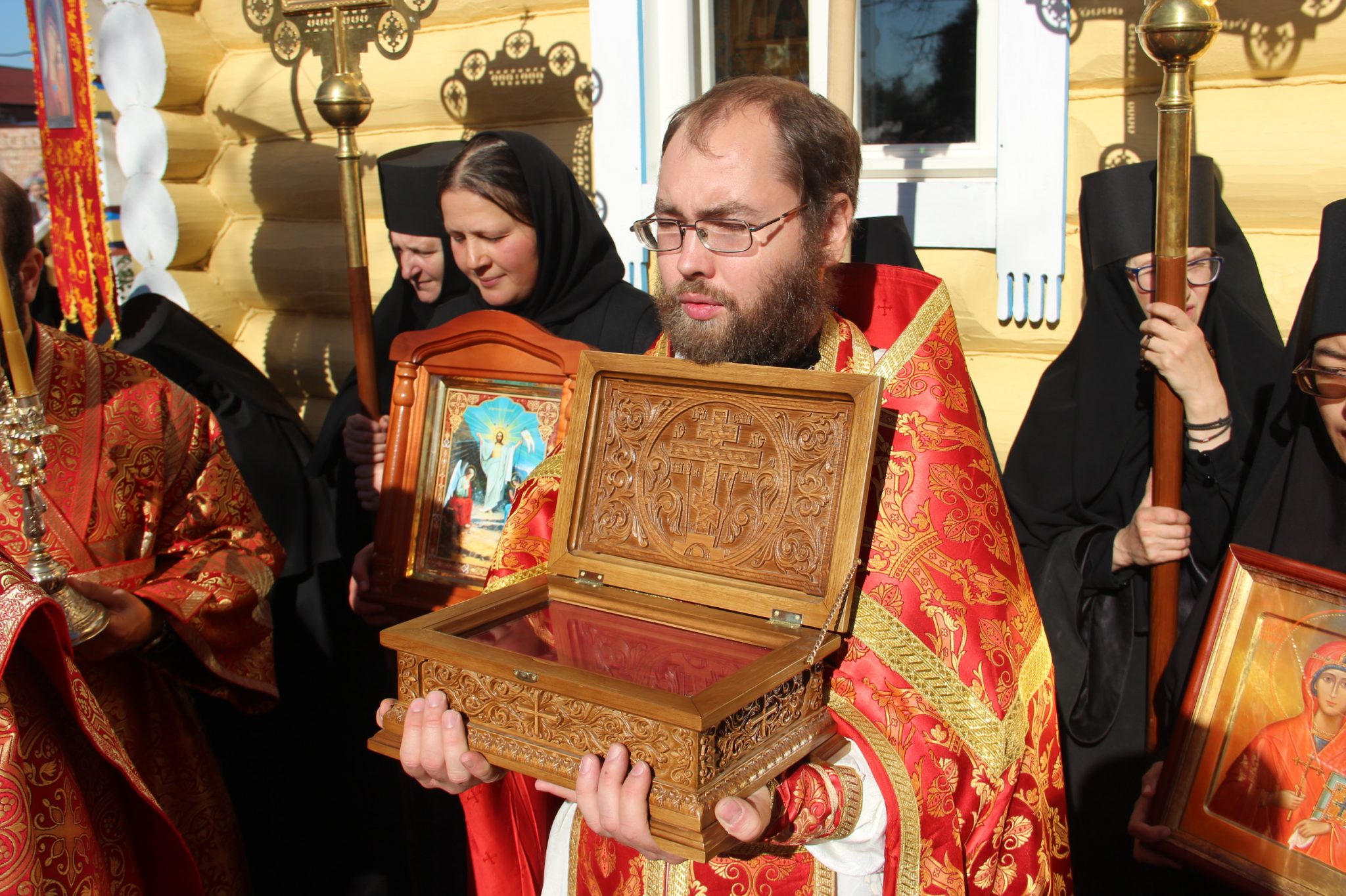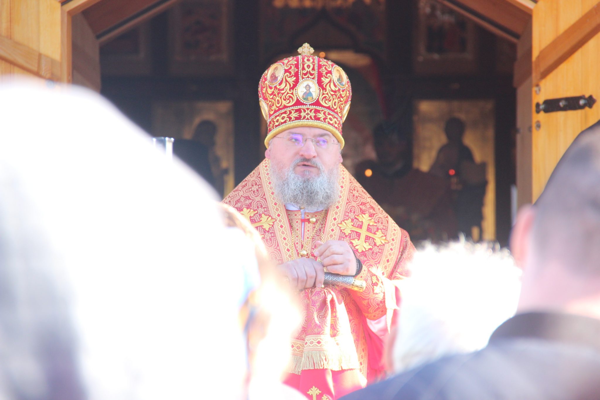 По отпусте литургии священнослужители совершили молебное пение и праздничный крестный ход вокруг храма в завершении которого, вознеся молитву святой Фекле, владыка обратился к богомольцам с архипастырским словом.
