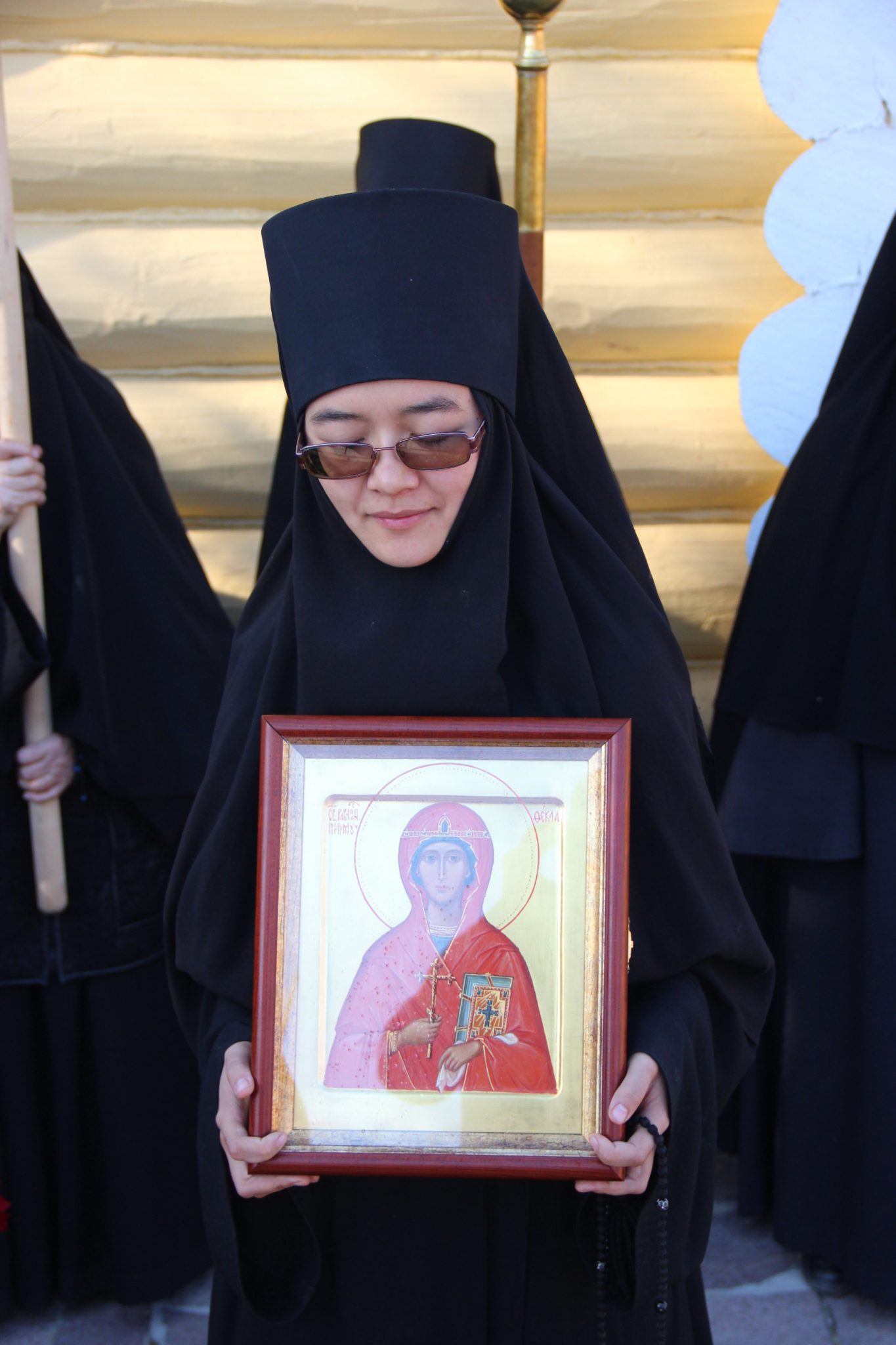 Гостям обители на молитвенную память были вручены иконки святой Феклы.