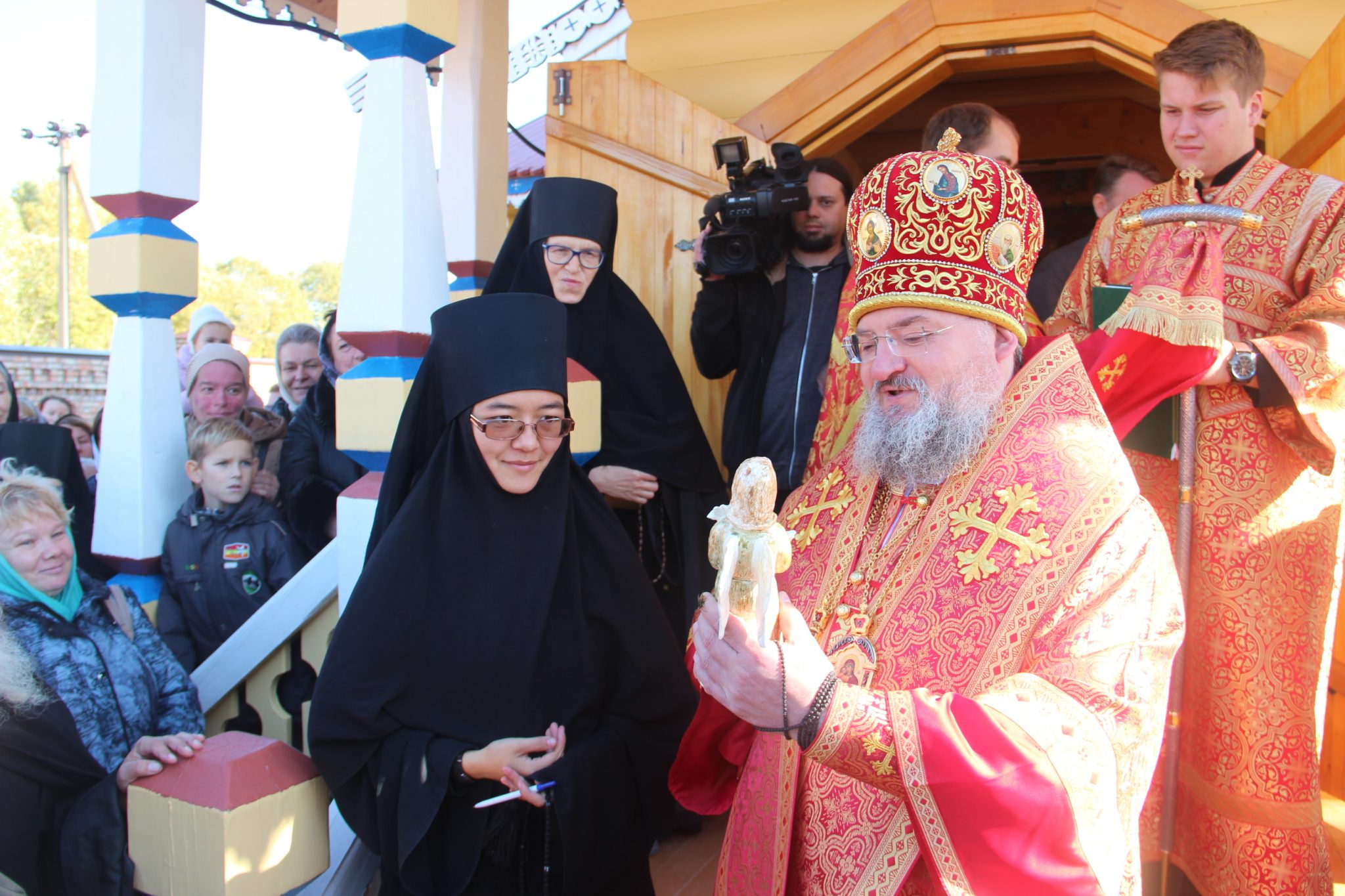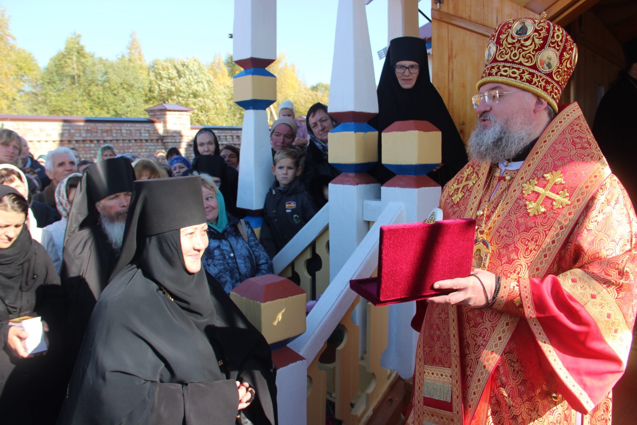 Преосвященный владыка поздравил игумению Виталию с престольным праздником обители и днем ее рождения, который приходиться на этот день. Архипастырь преподнес матери настоятельнице икону святителя Николая Мир Ликийского чудотворца, святую просфору и букет цветов.