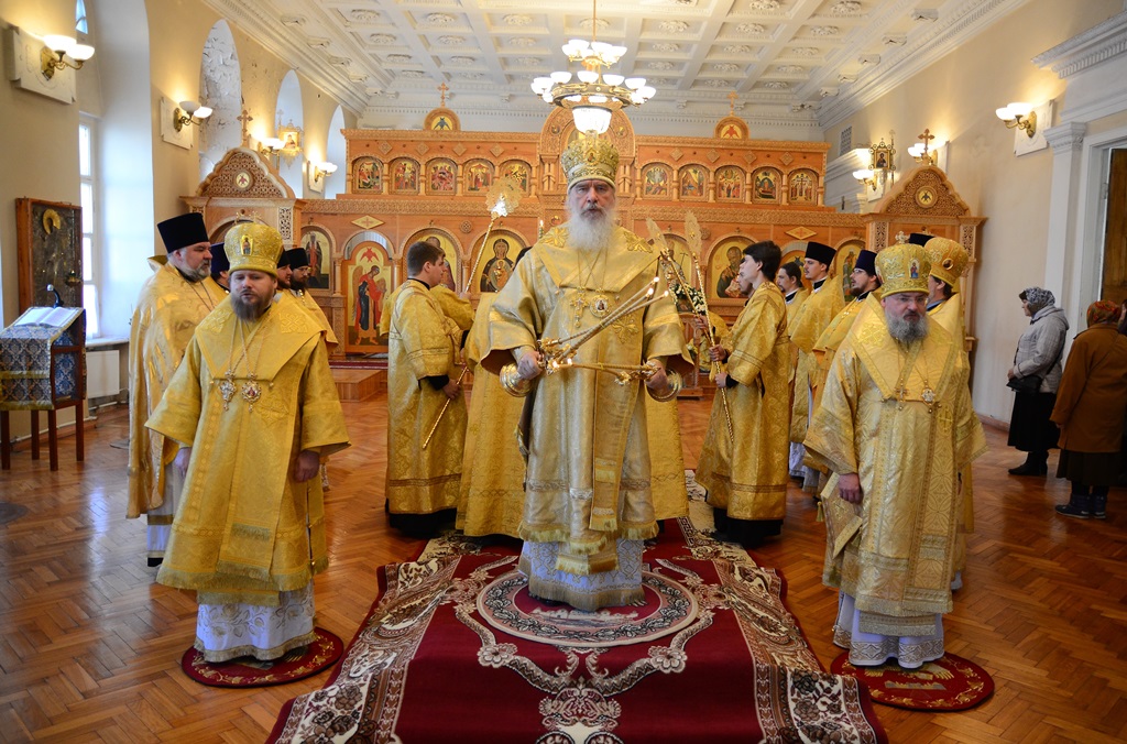 На сугубой ектенье были произнесены особые прошения «о единстве Святого Православия», после чего глава Калужской митрополии вознес молитву о мире на Украине.