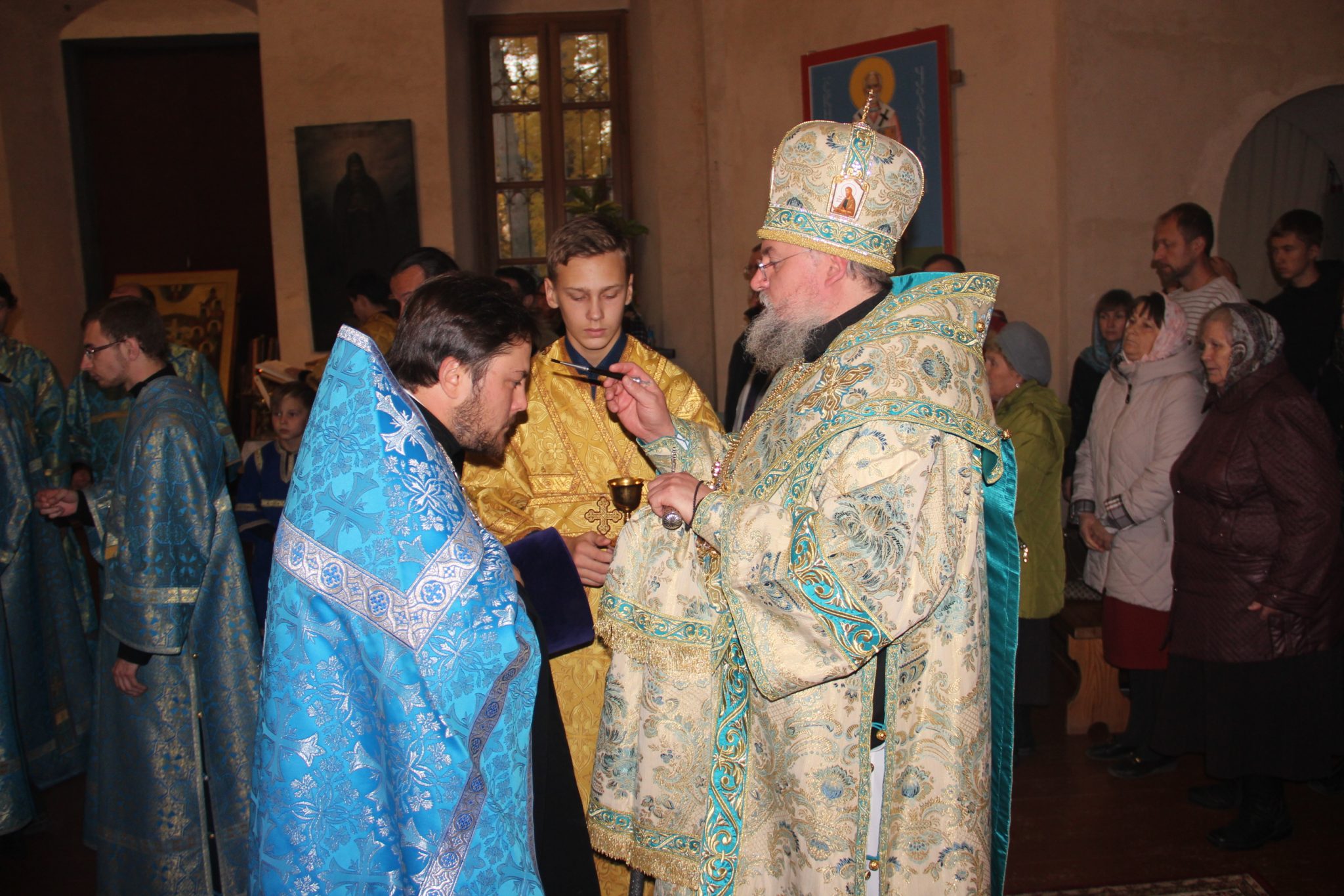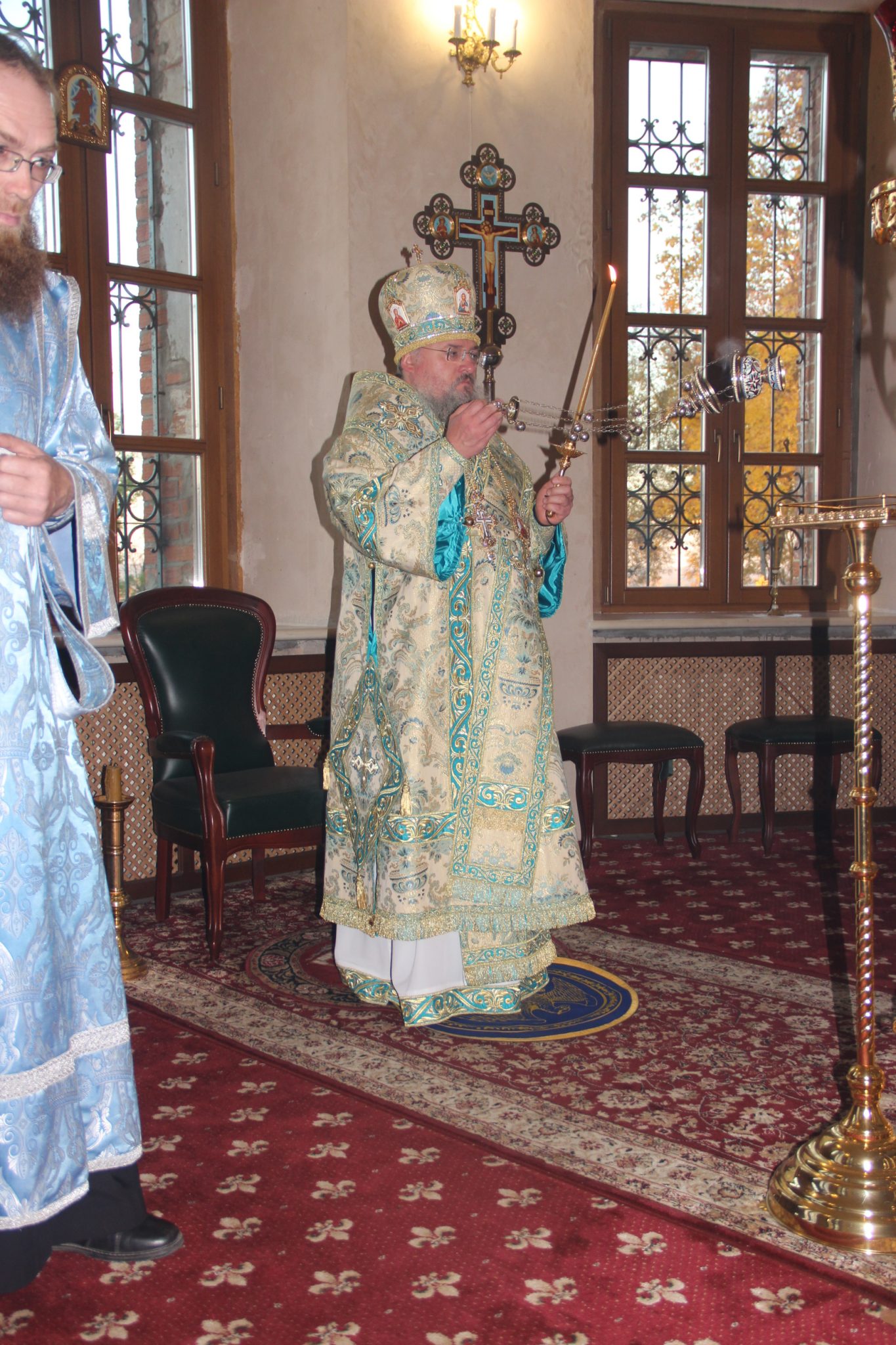 13 октября накануне двадцатой Недели по Пятидесятнице и праздника Покрова Пресвятой Богородицы епископ Никита возглавил всенощное бдение в Успенском кафедральном соборе города Козельска.