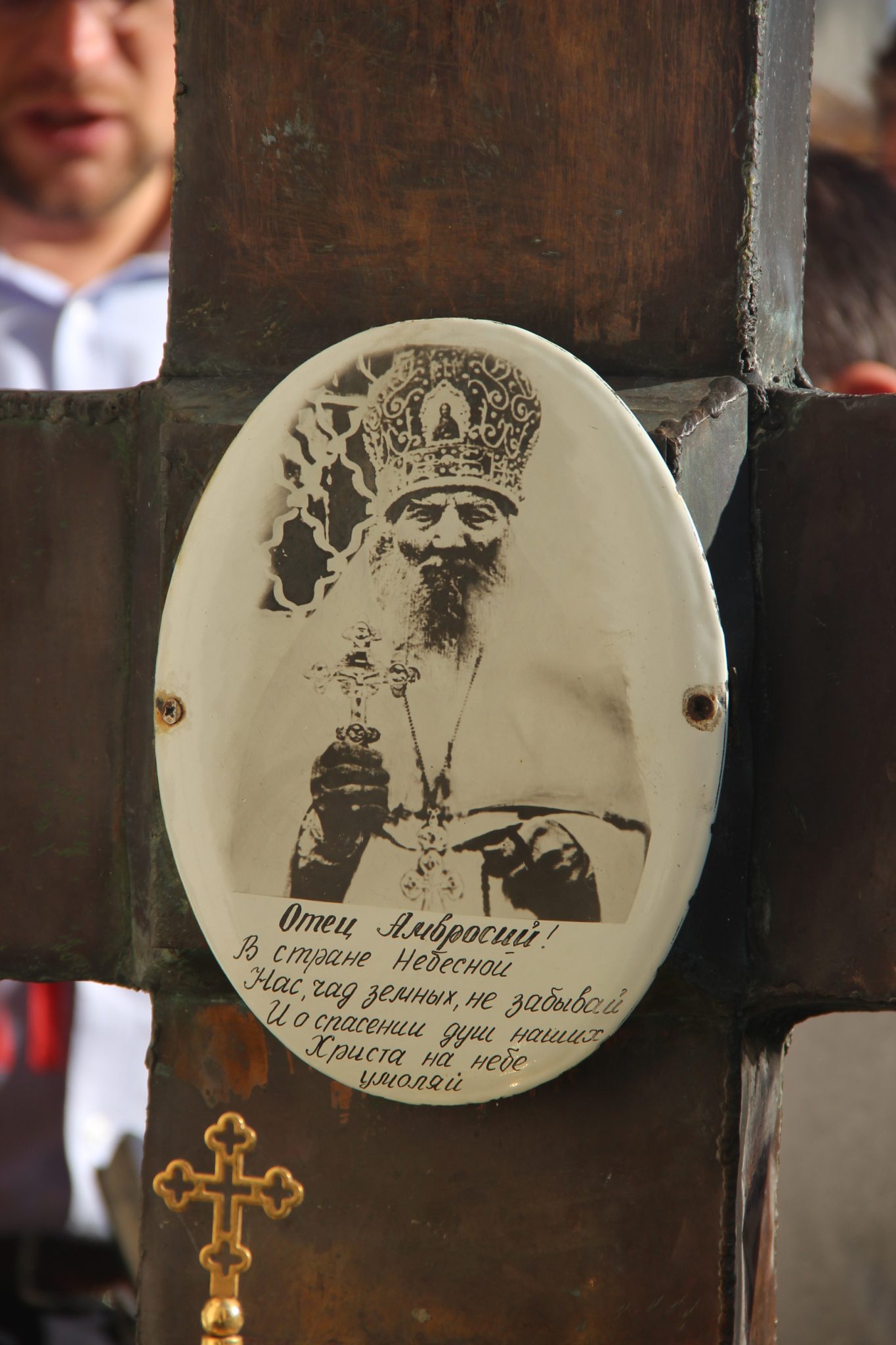 В храме молились многочисленные паломники, прибывшие почтить память блаженнопочившего старца Амвросия из разных уголков нашей страны.