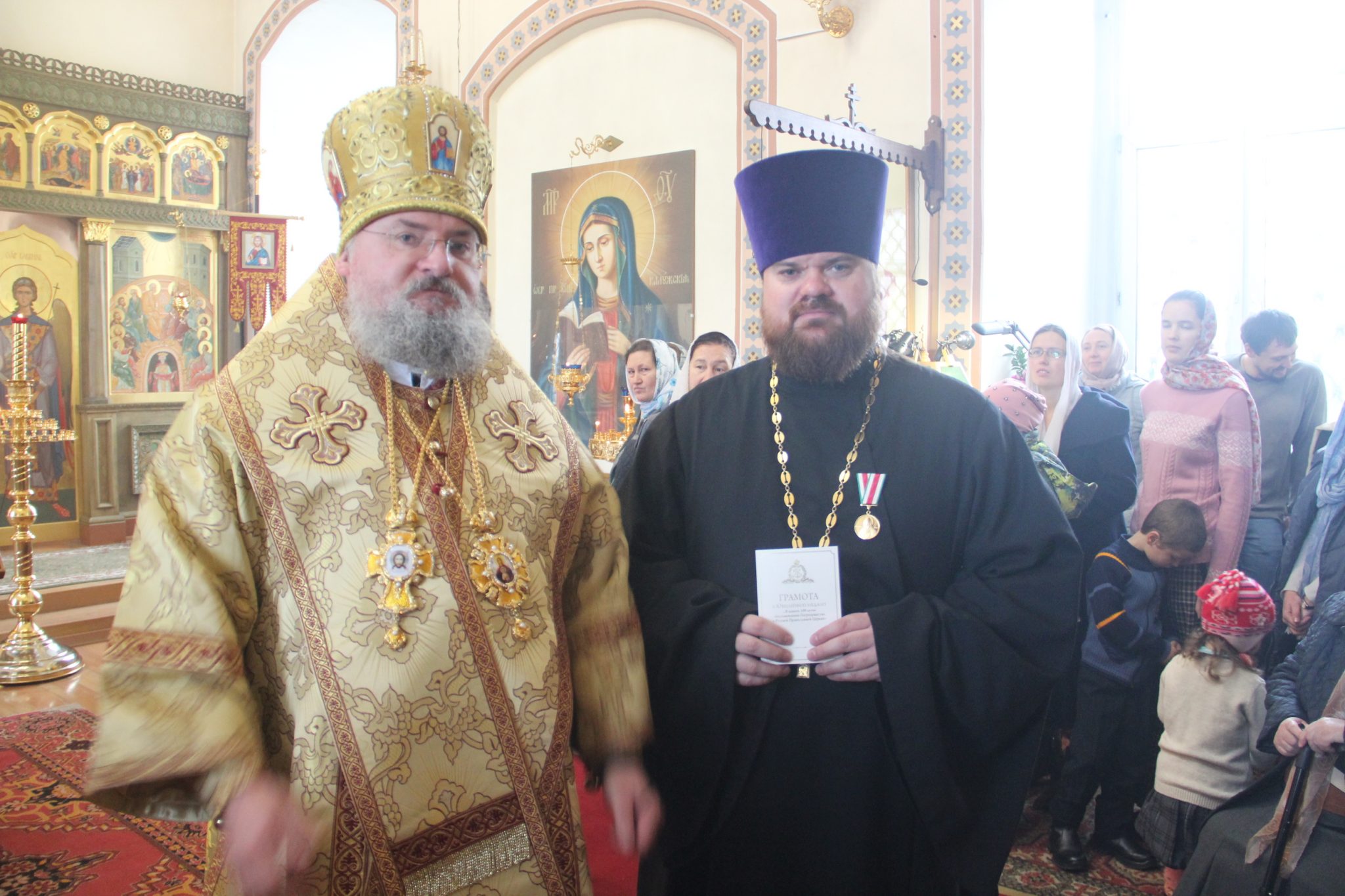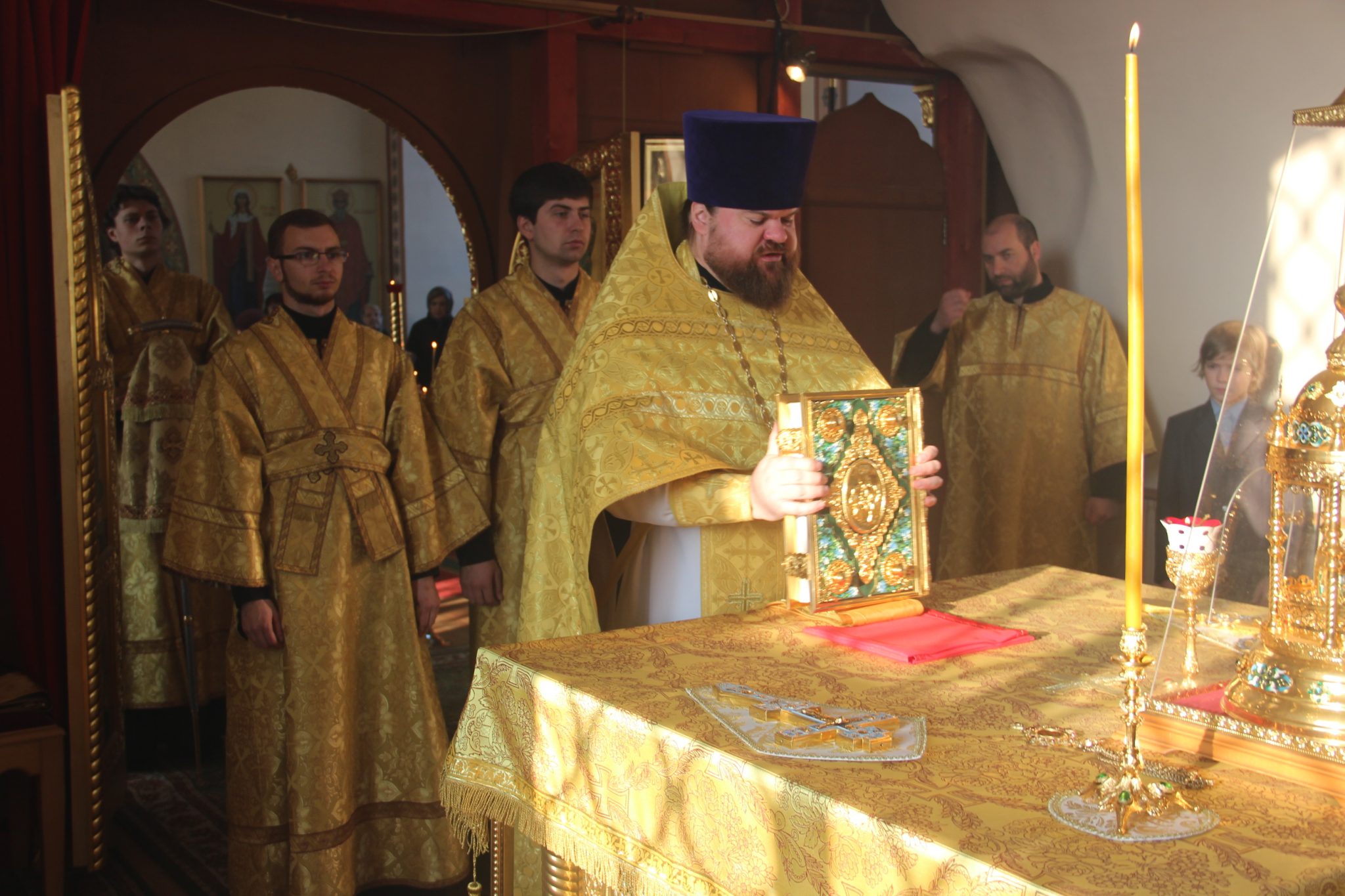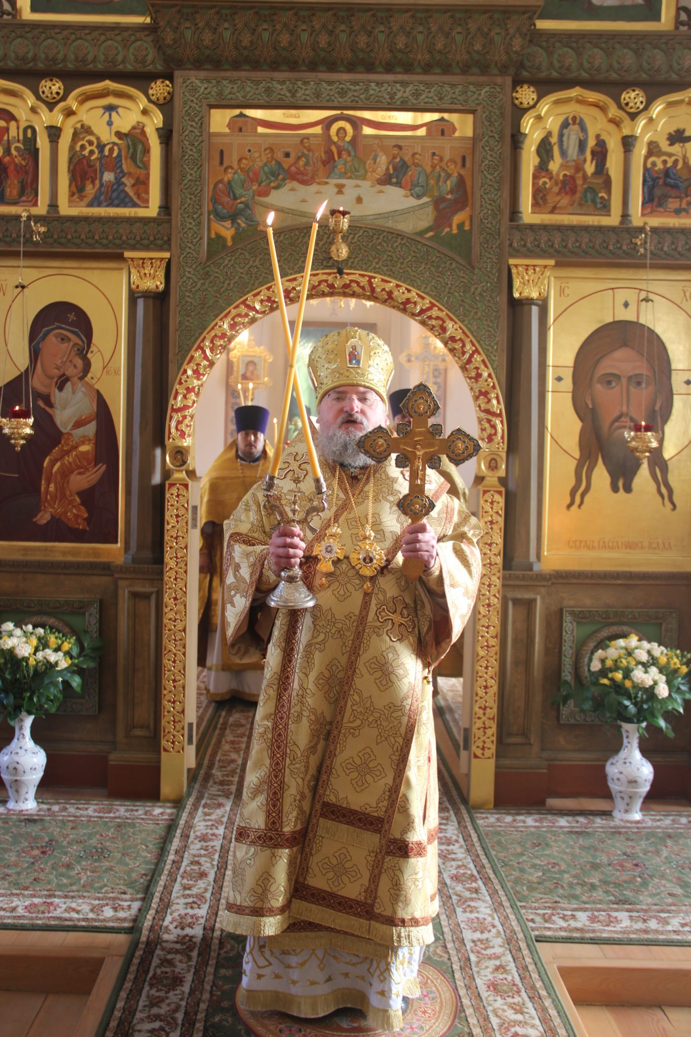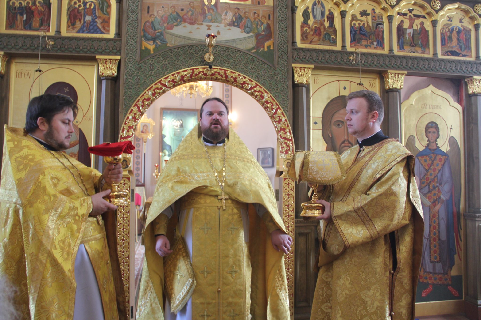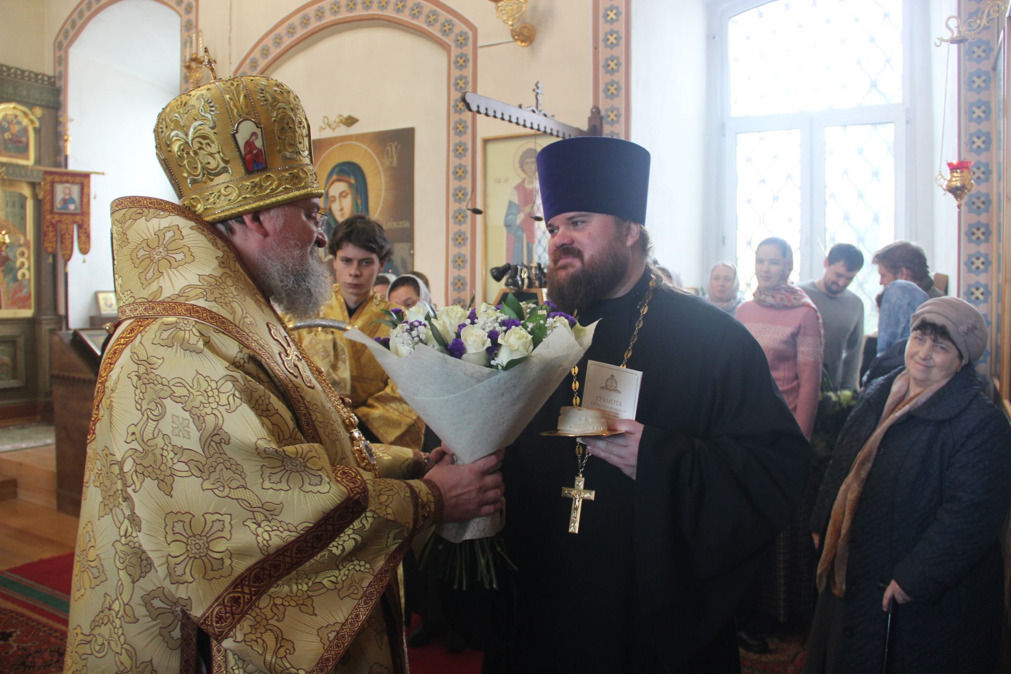 Его Преосвященству сослужили: настоятель храма протоиерей Сергий Сычев, протоиерей Антоний Хатунцев, иерей Виктор Носов, диакон Евгений Ковригин и иеродиакон Виталий (Павленко).