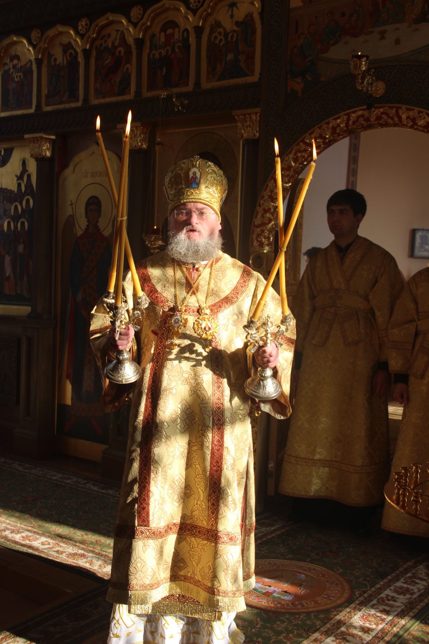 По отпусте литургии священнослужители совершили славление Божией Матери пред Ее образом, именуемым «Спорительница хлебов», а затем владыка обратился к богомольцам с архипастырским словом.
