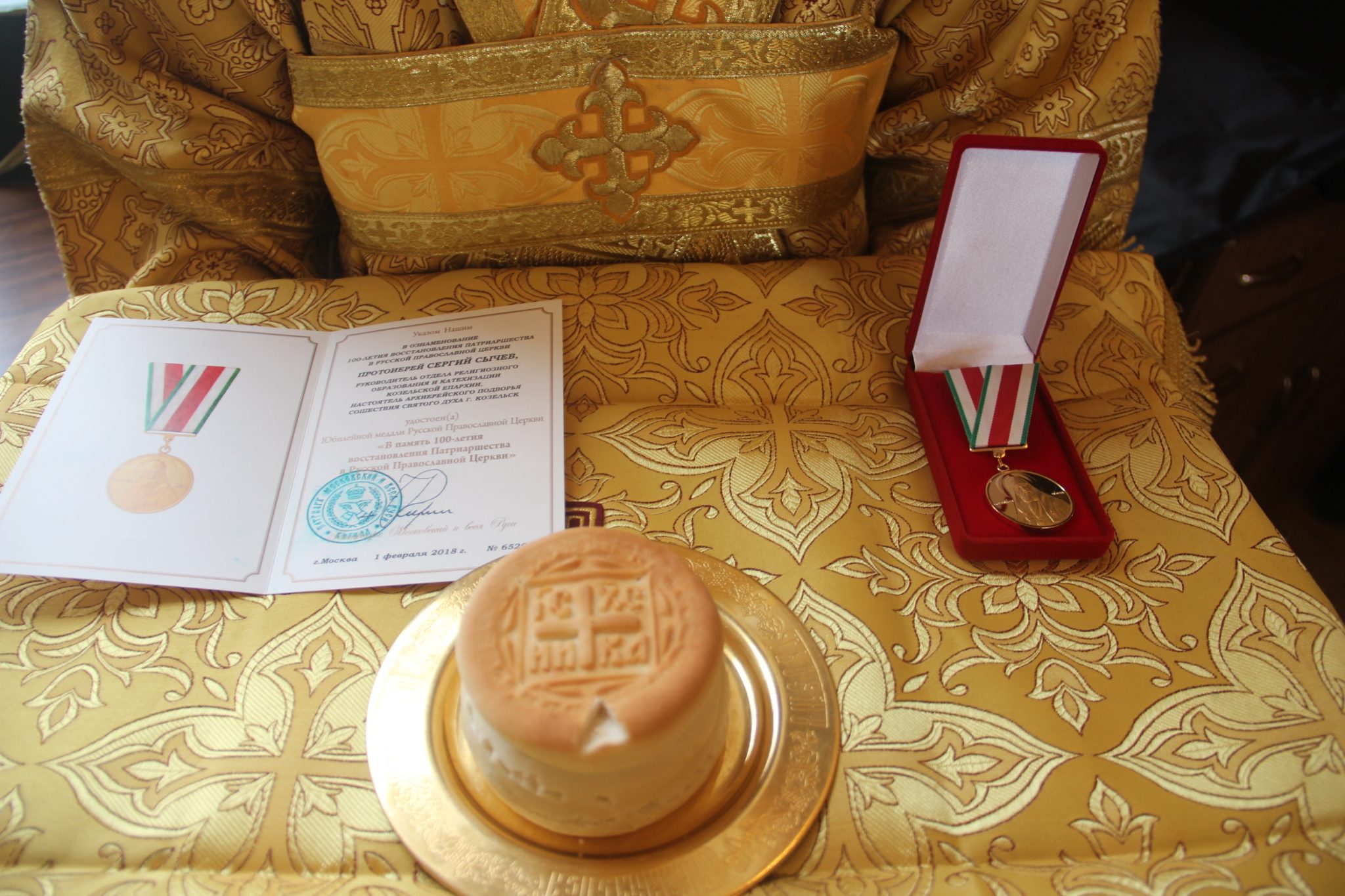 Во внимание к усердным трудам во славу Святой Церкви и в связи с сорокалетием со дня рождения, по благословению Святейшего Патриарха Московского и всея Руси КИРИЛЛА, настоятель храма протоиерей Сергий Сычев был удостоен медали в ознаменование столетия восстановления Патриаршества в Русской Православной Церкви.