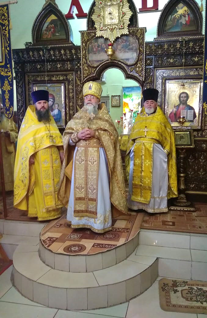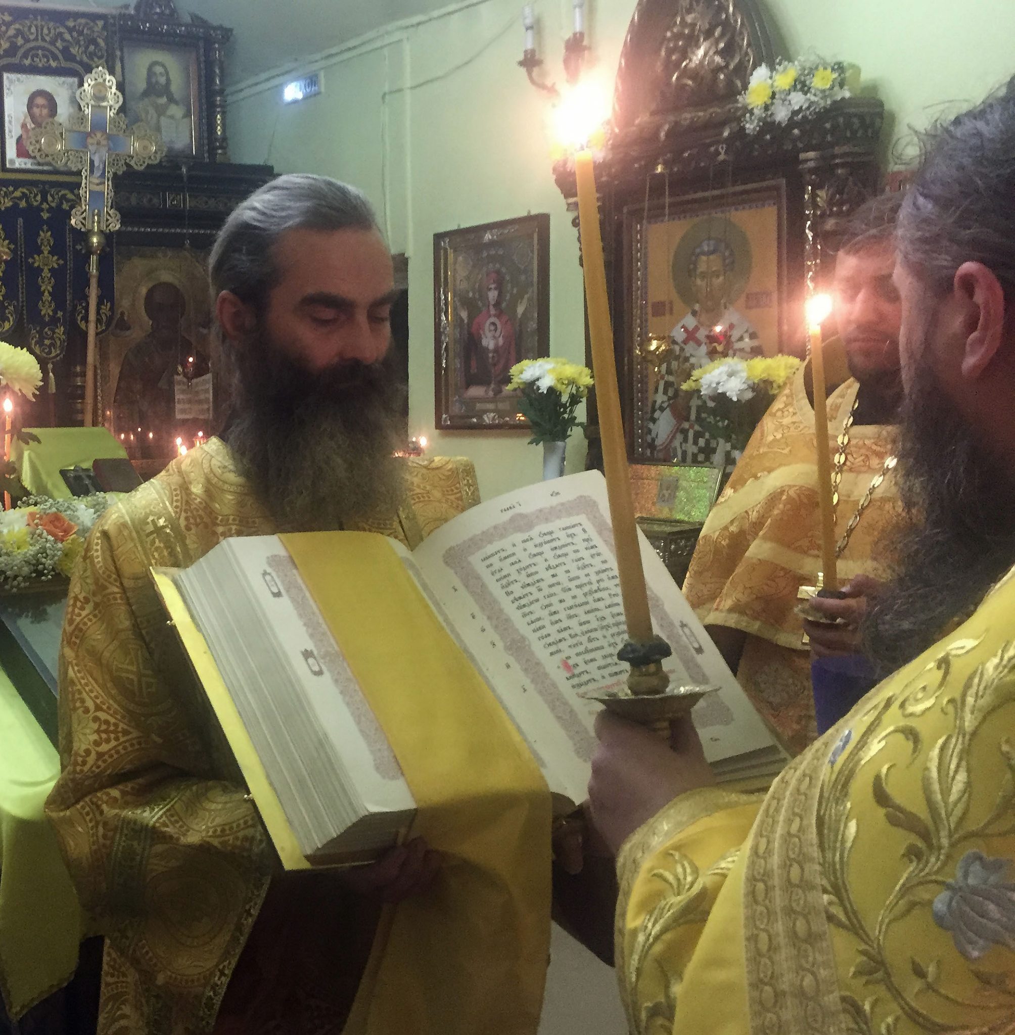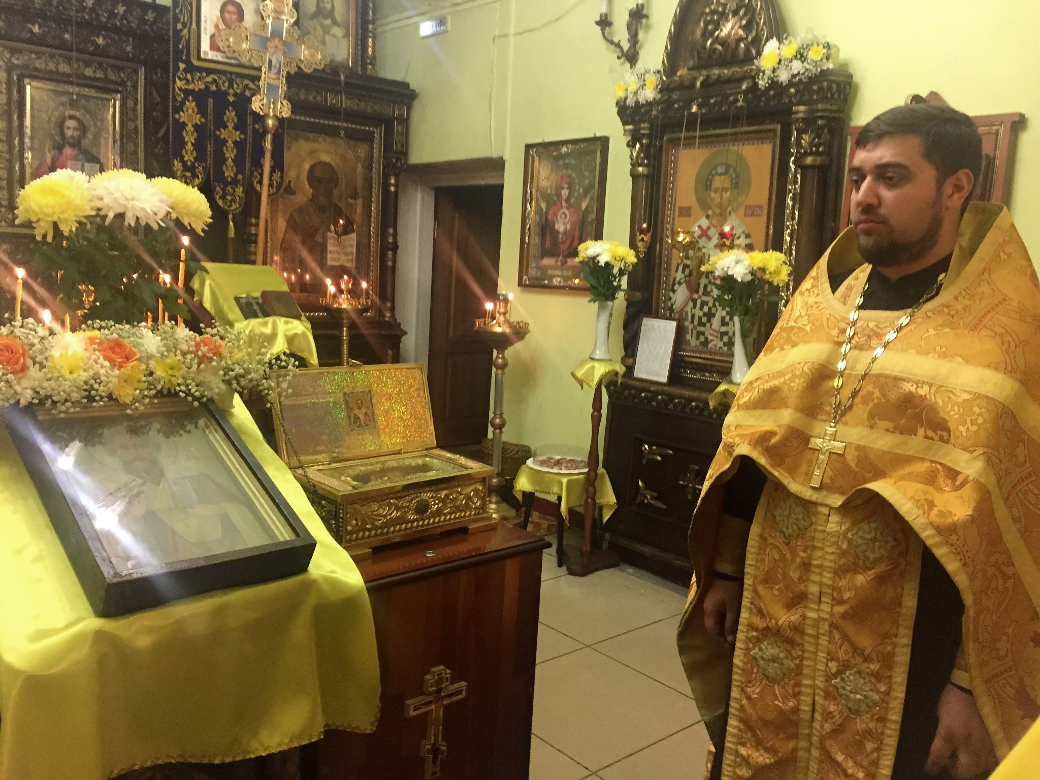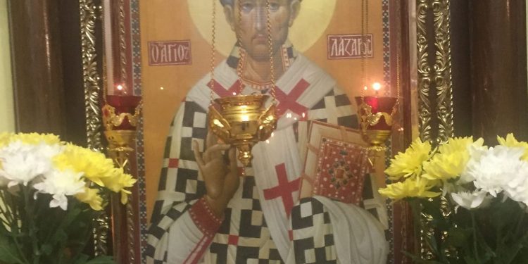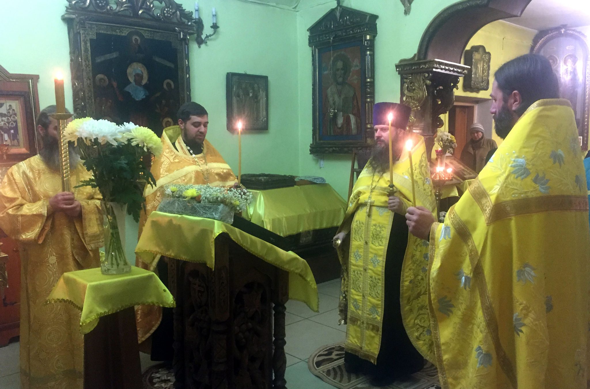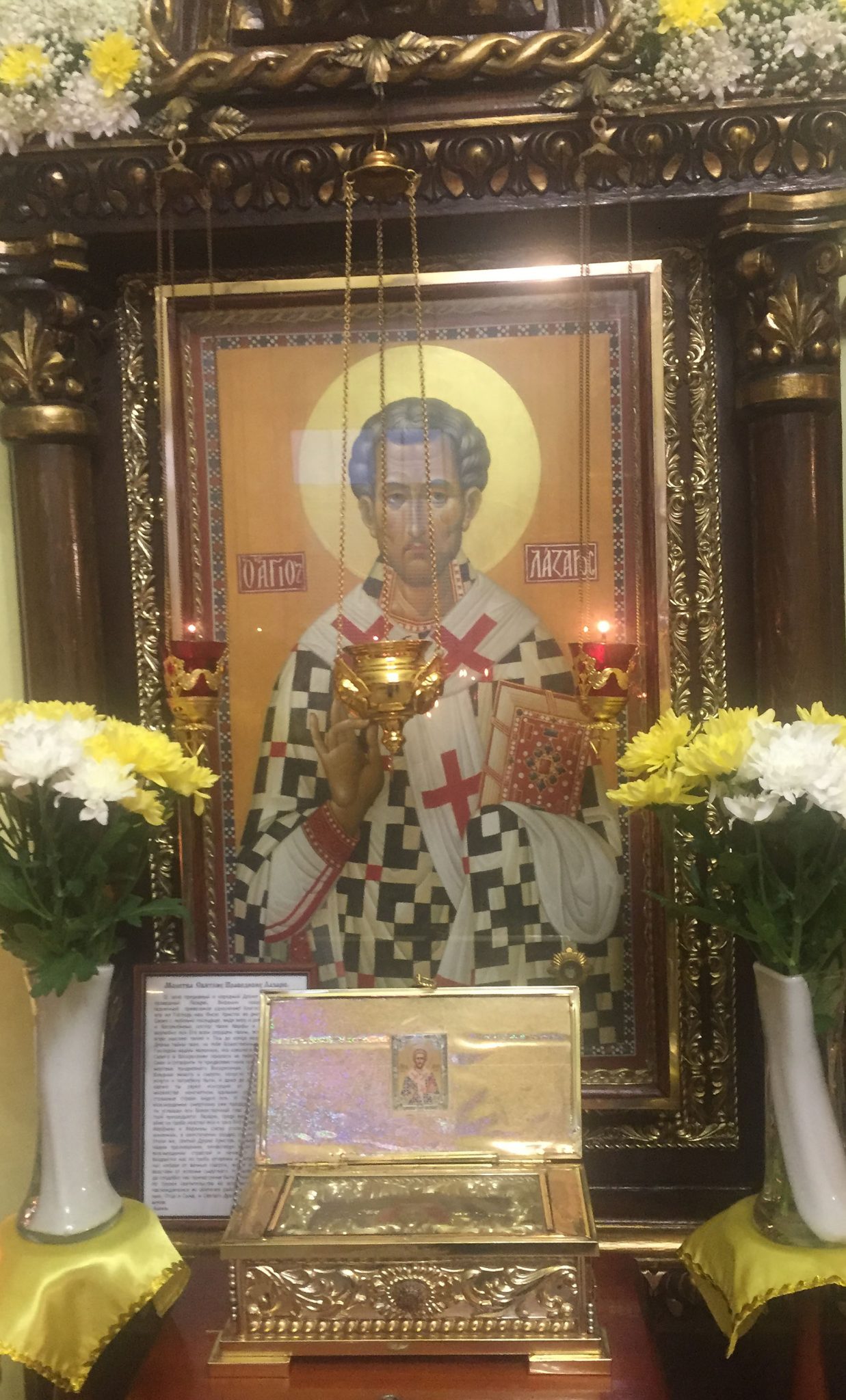 По отпусте литургии священнослужители совершили славление святому покровителю храма и города, святителю Лазарю, перед его образом и святыми мощами.