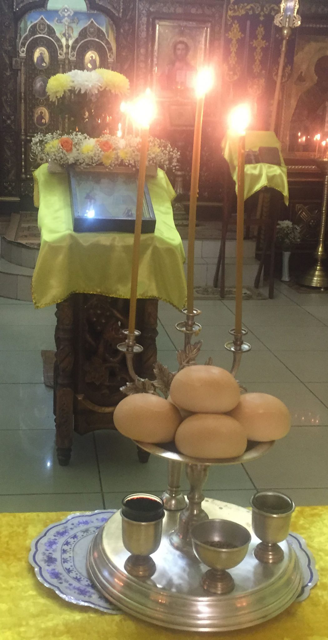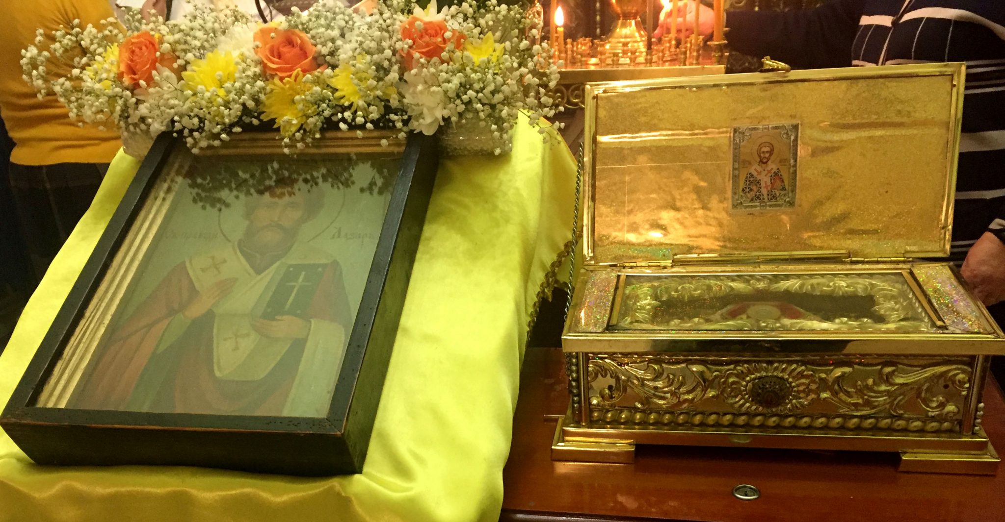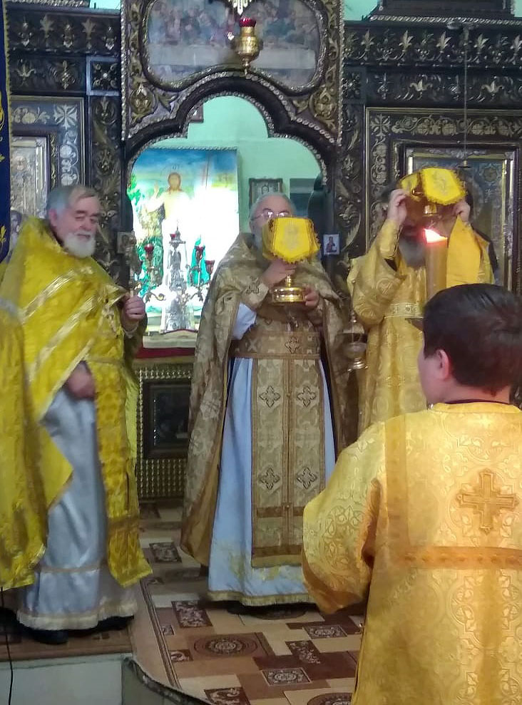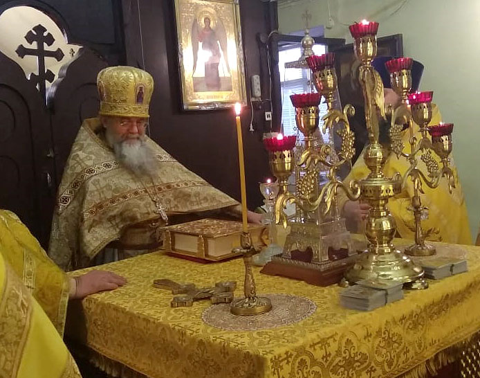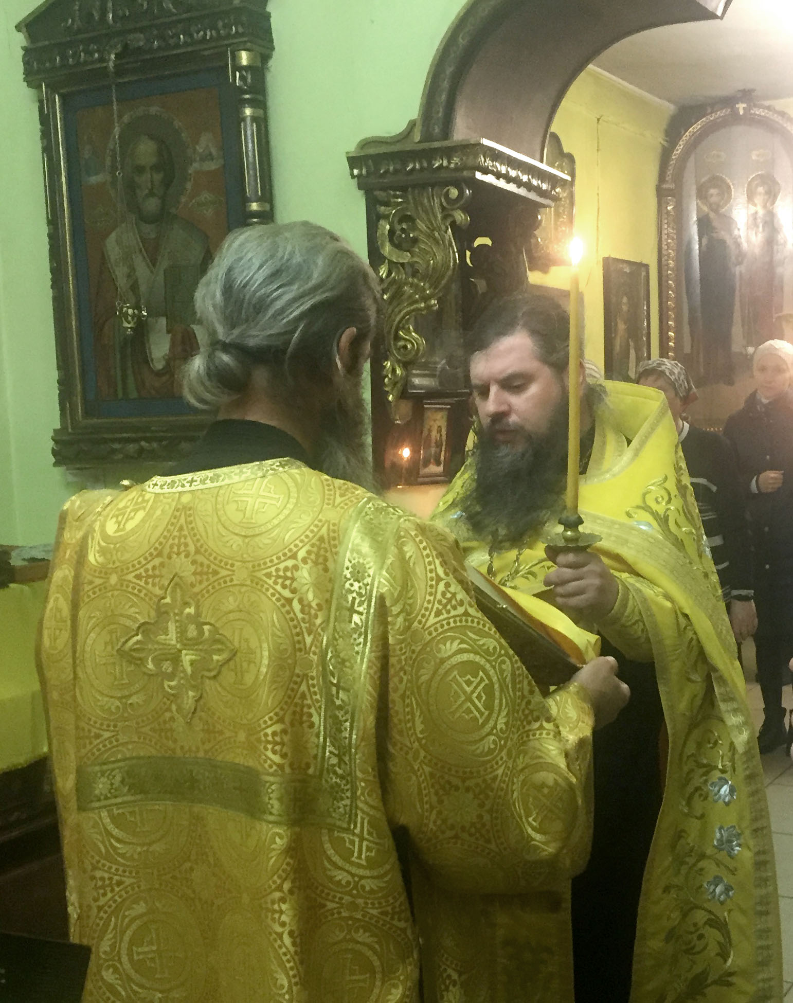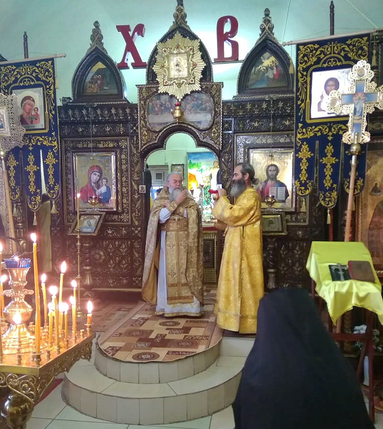 По отпусте литургии священнослужители совершили славление святому покровителю храма и города, святителю Лазарю, перед его образом и святыми мощами.