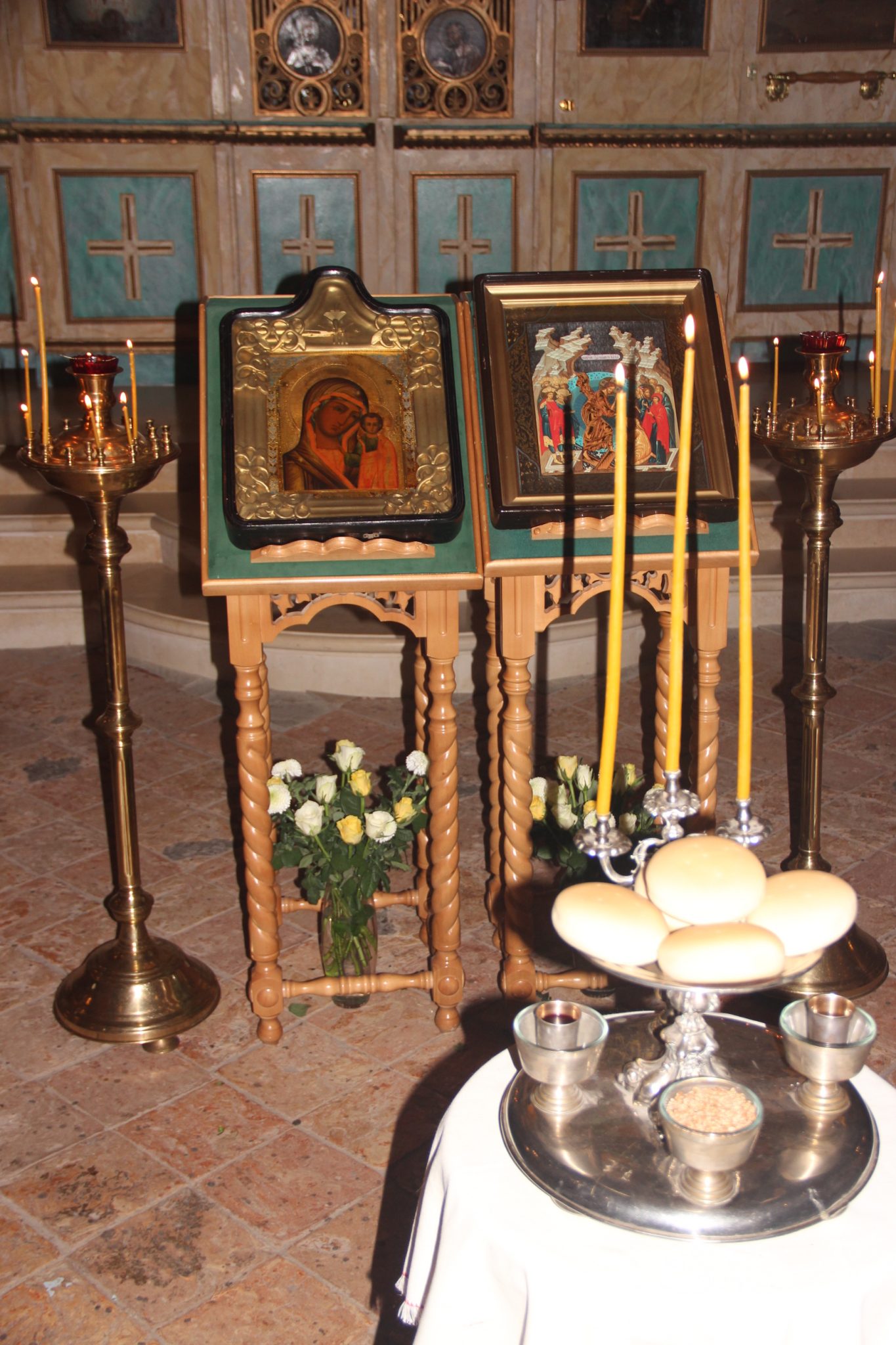 Заступница усердная, Мати Господа Вышняго! За всех молиши Сына Твоего, Христа Бога нашего, и всем твориши спастися, в державный Твой покров прибегающим. Всех нас заступи, о Госпоже, Царице и Владычице, иже в напастех, и в скорбех, и в болезнех обремененных грехи многими, предстоящих и молящихся Тебе умиленною душею и сокрушенным сердцем пред пречистым Твоим образом со слезами, и невозвратно надежду имущих на Тя, избавления всех зол, всем полезная даруй, и вся спаси, Богородице Дево: Ты бо еси Божественный Покров рабом Твоим.