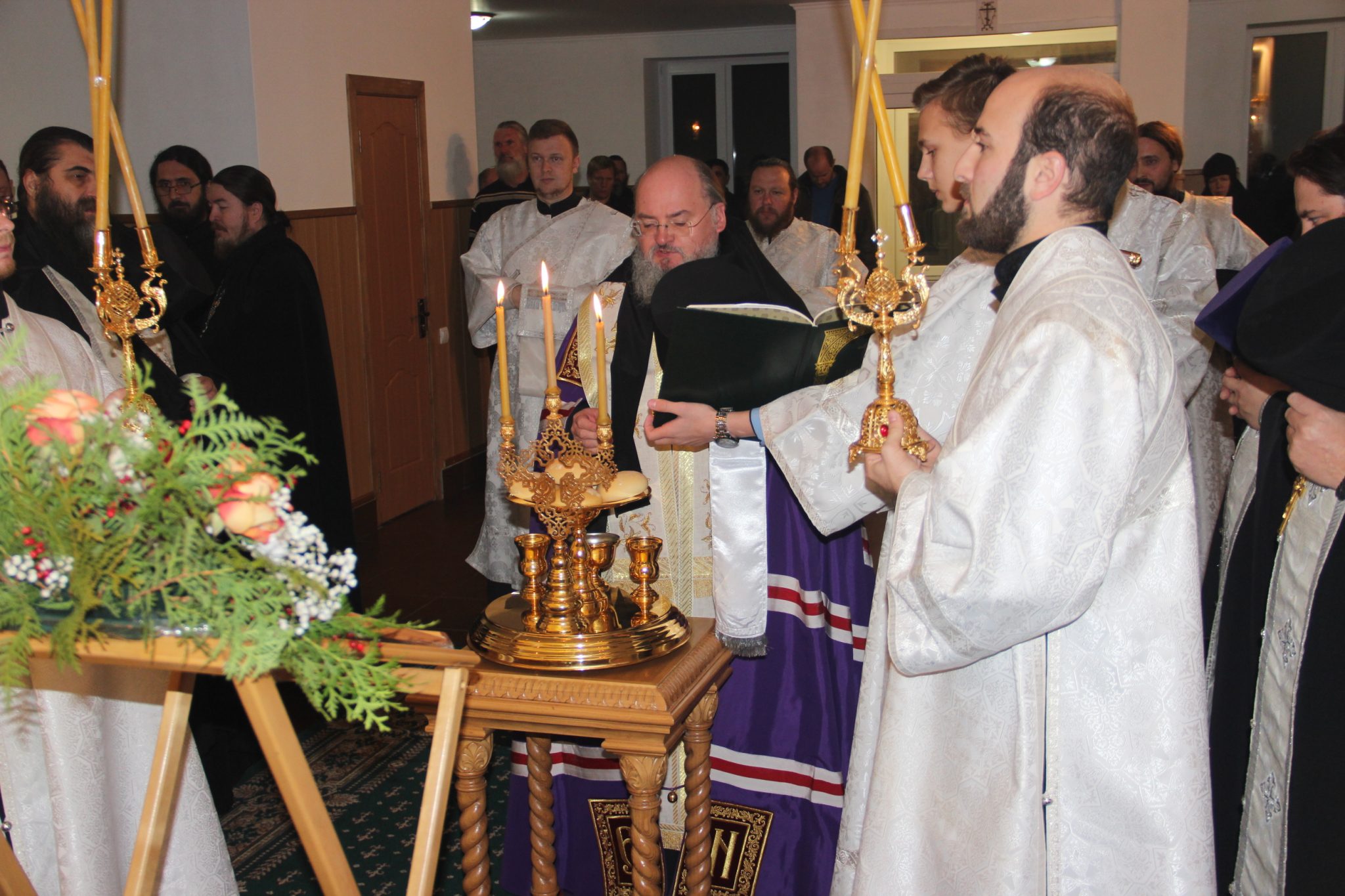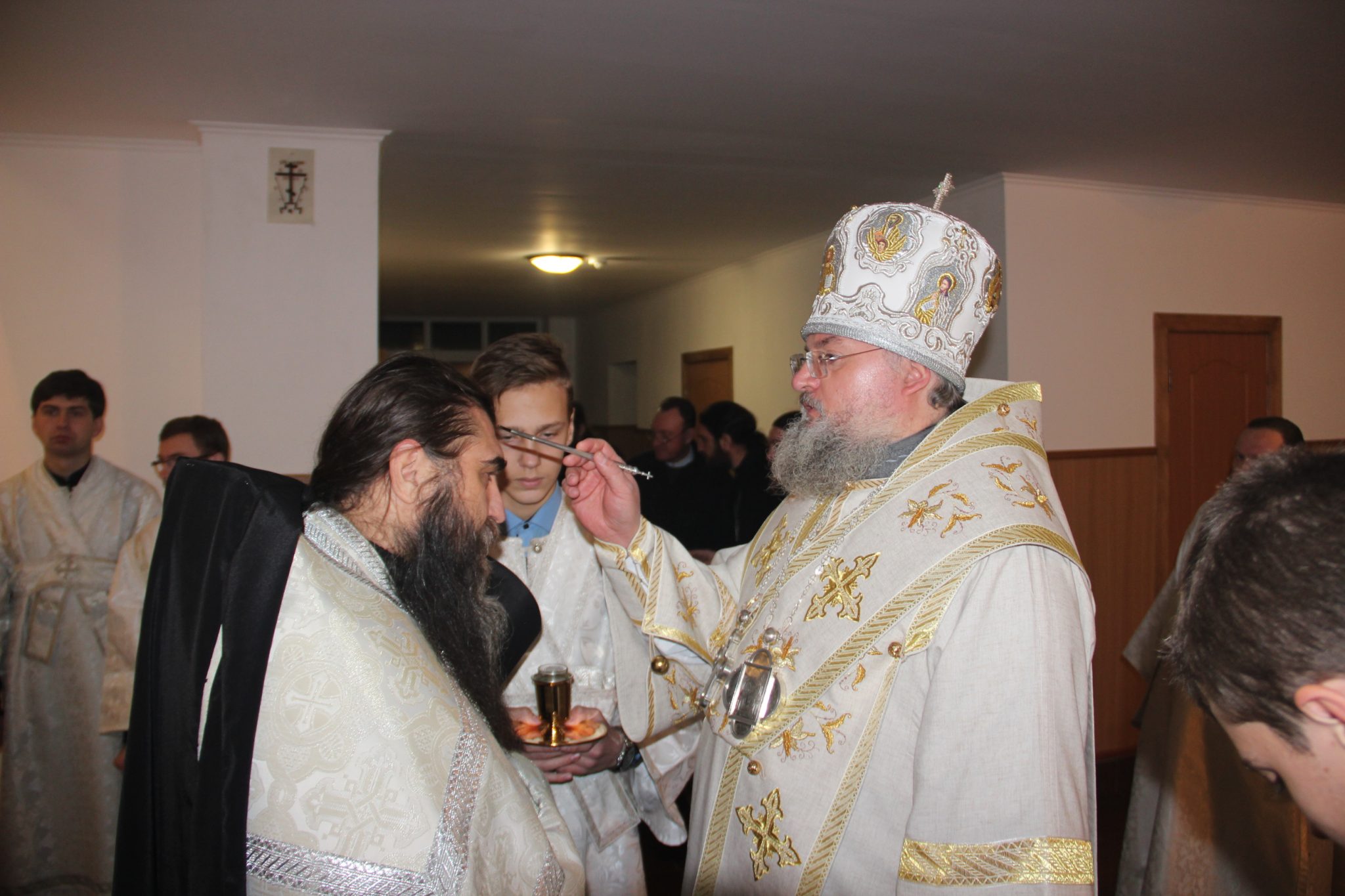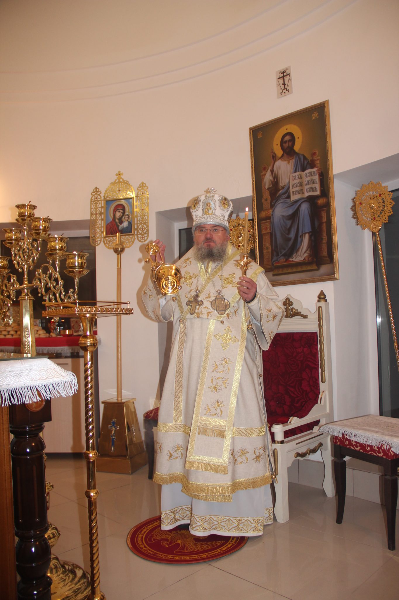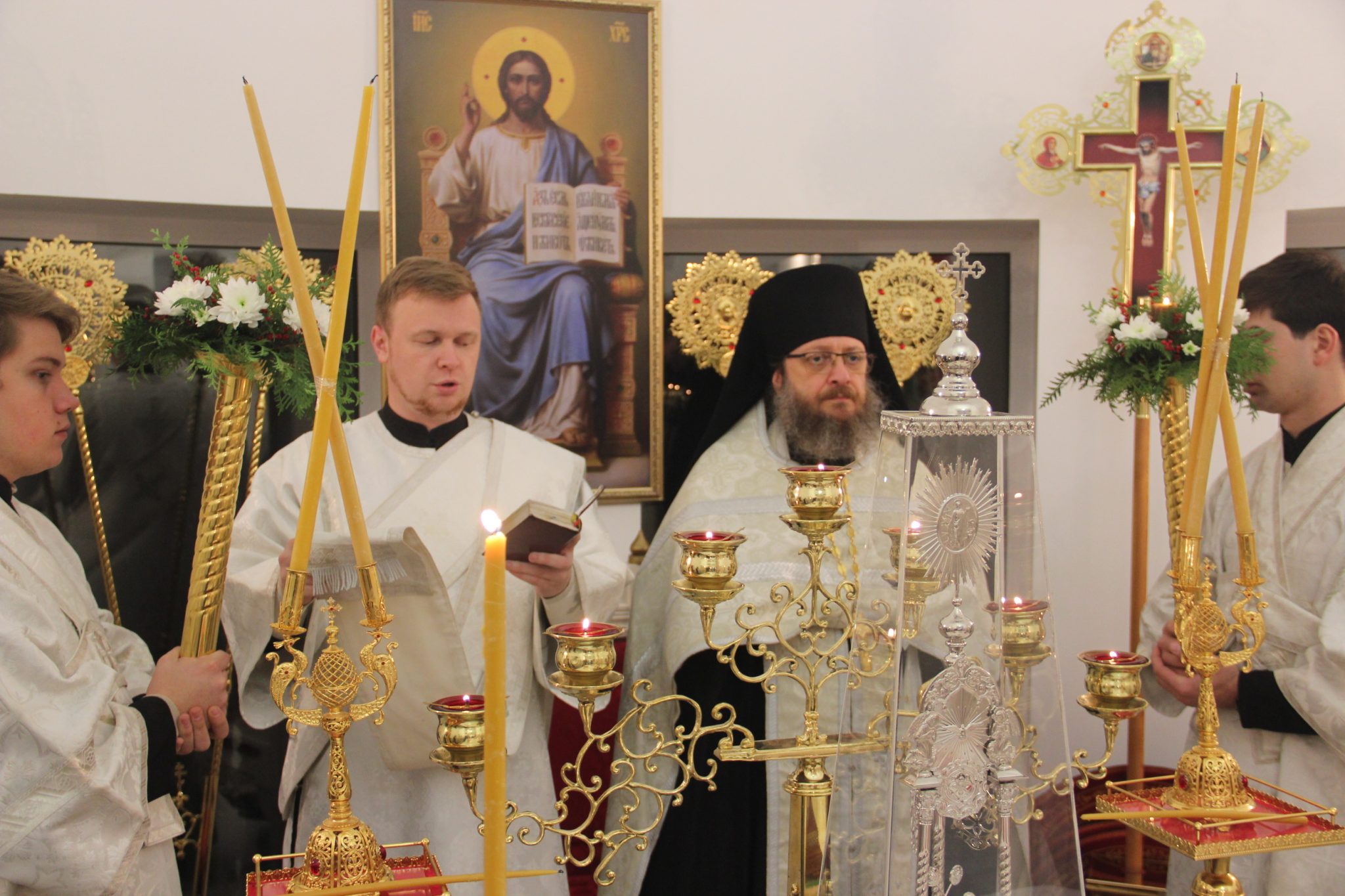 Его Преосвященству сослужили: настоятель монастыря — игумен Михаил (Семенов), протоиерей Антоний Хатунцев, клирики обители в священном сане.