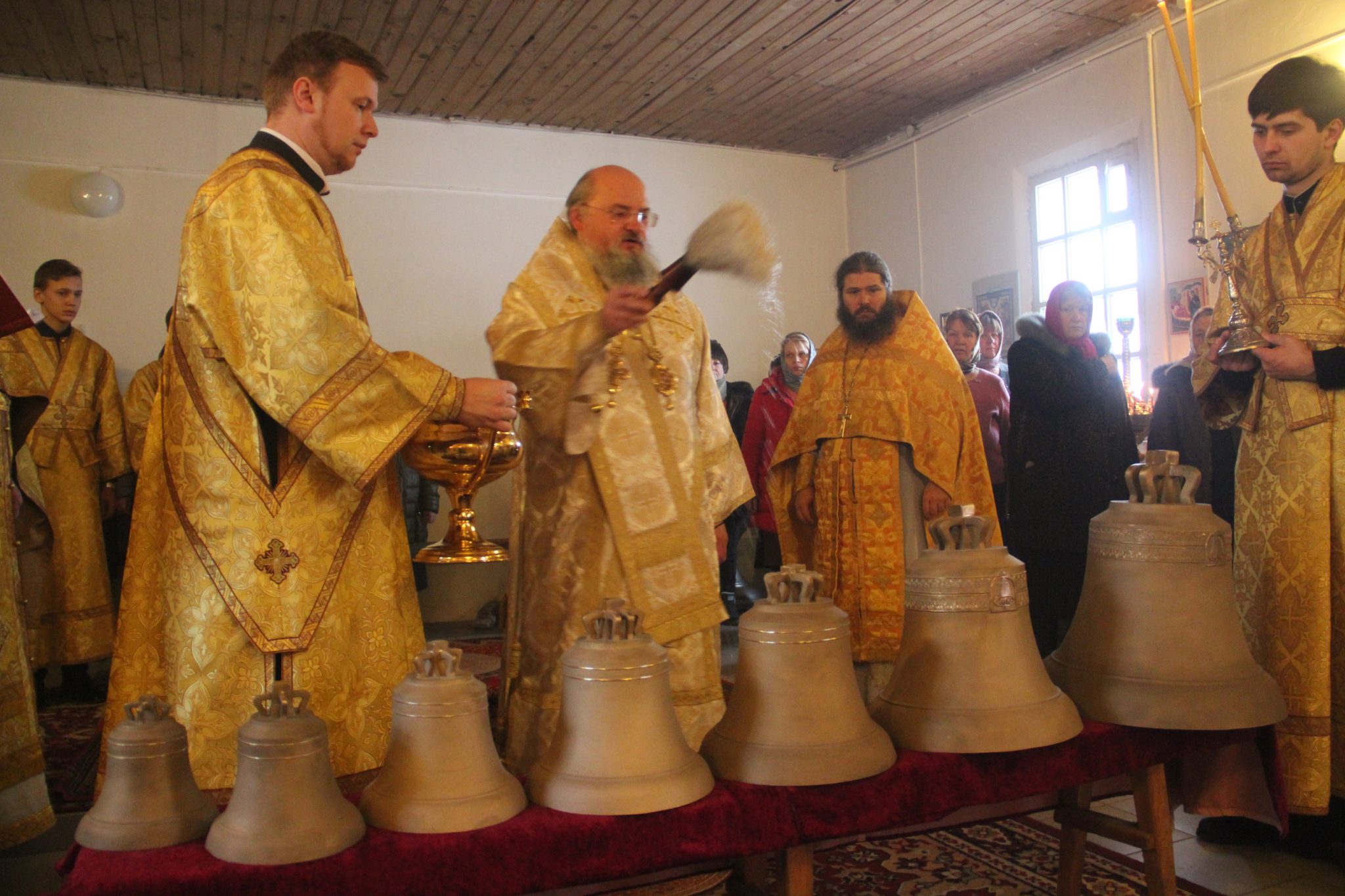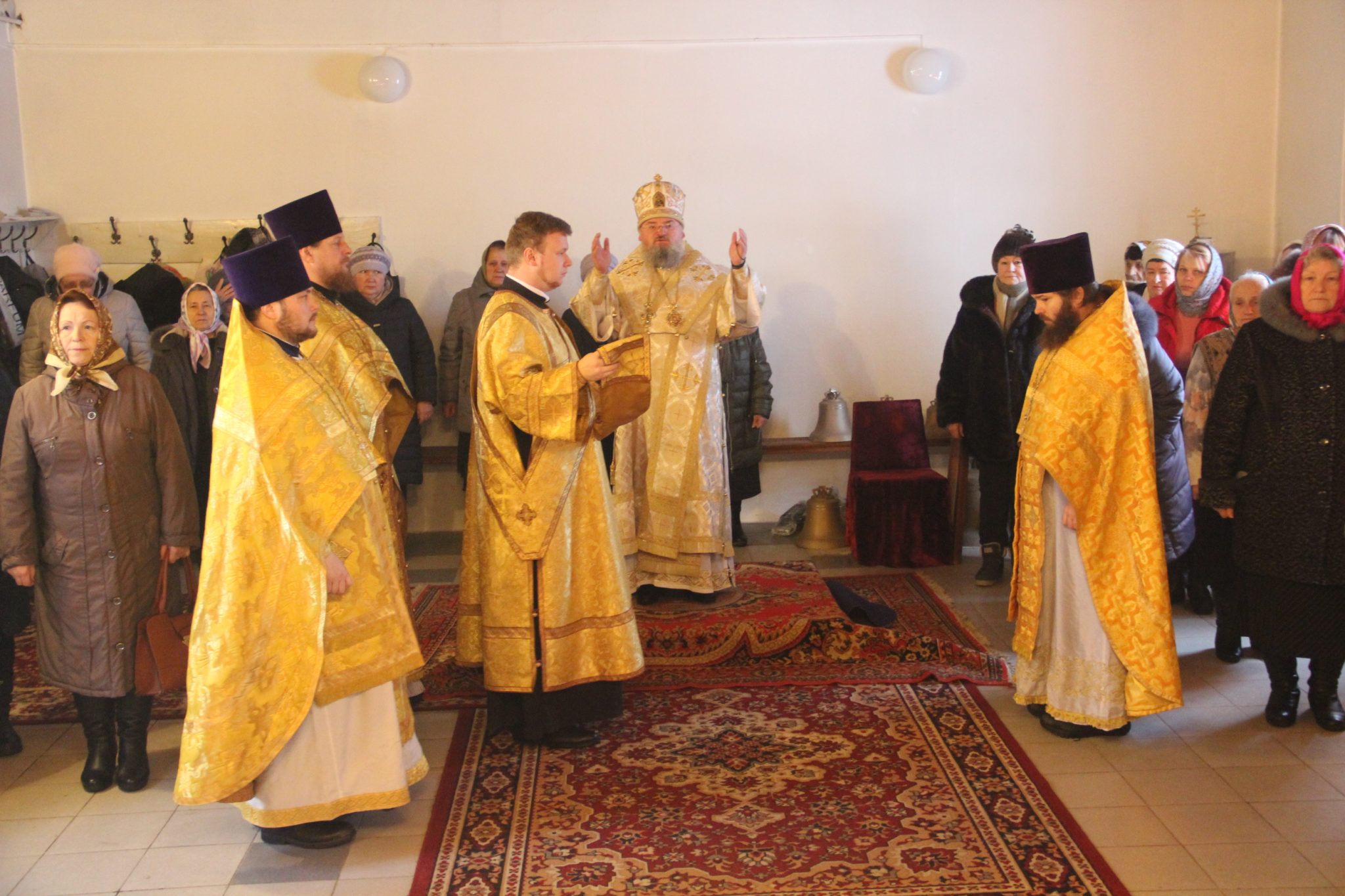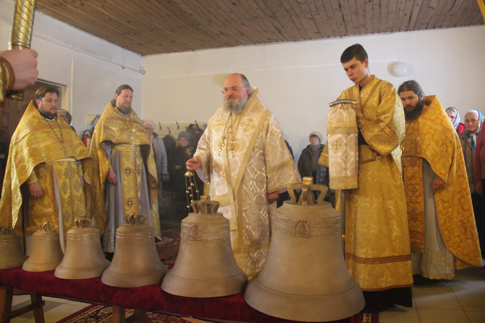 По отпусте литургии священнослужители совершили освящение нового комплекта колоколов для колокольни храма, а затем владыка обратился к богомольцам с проповедью.