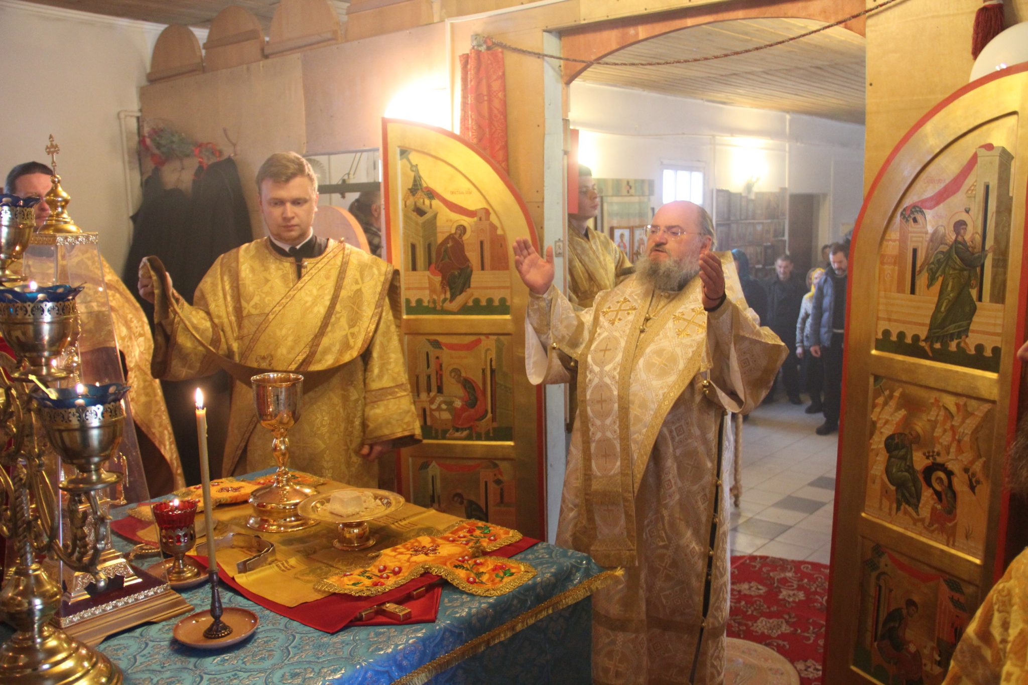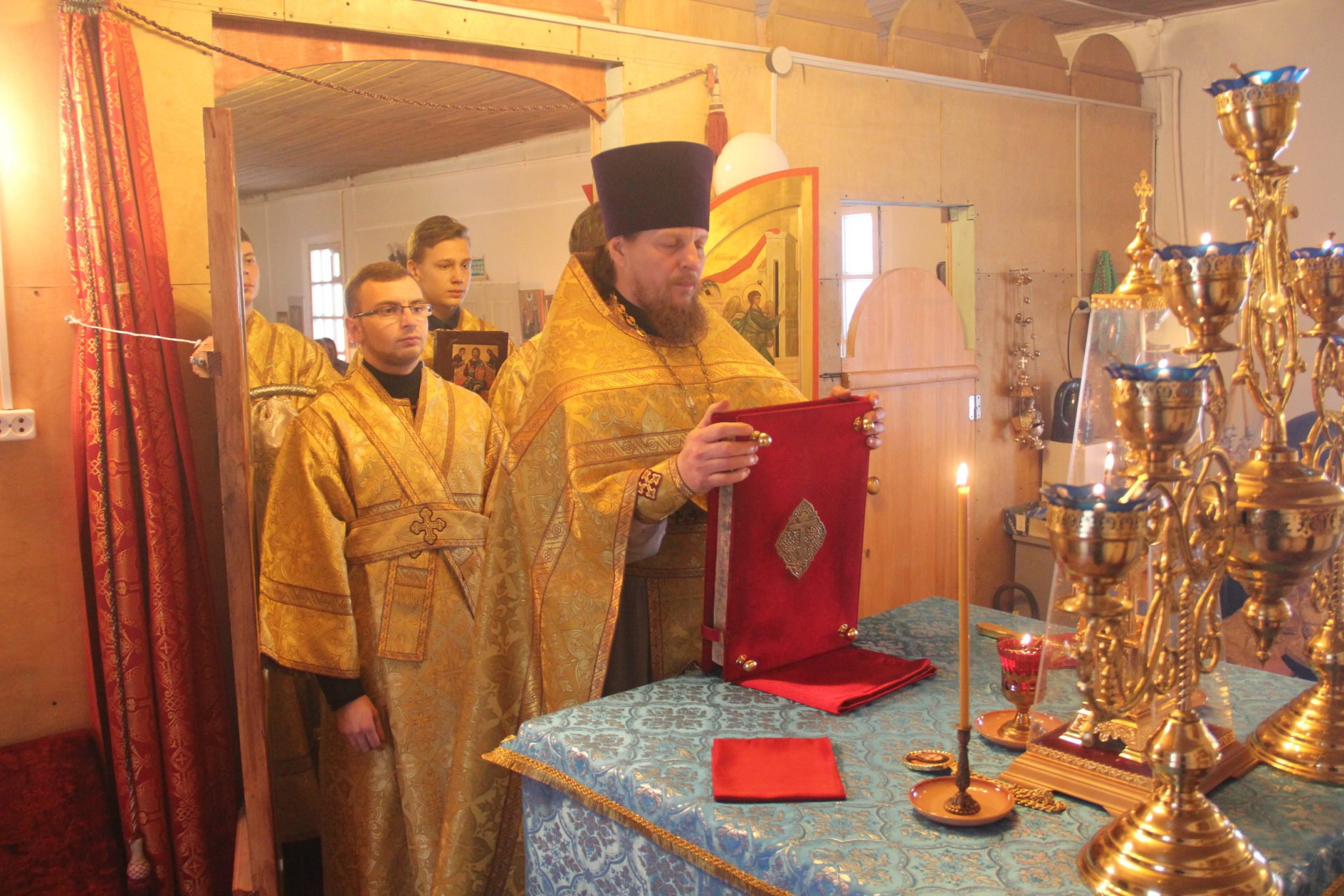 Его Преосвященству сослужили: протоиерей Алексий Казаков – благочинный округа, протоиерей Александр Вейс – настоятель храма, протоиерей Антоний Хатунцев и диакон Евгений Ковригин.
