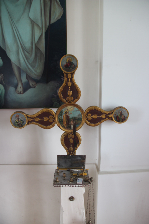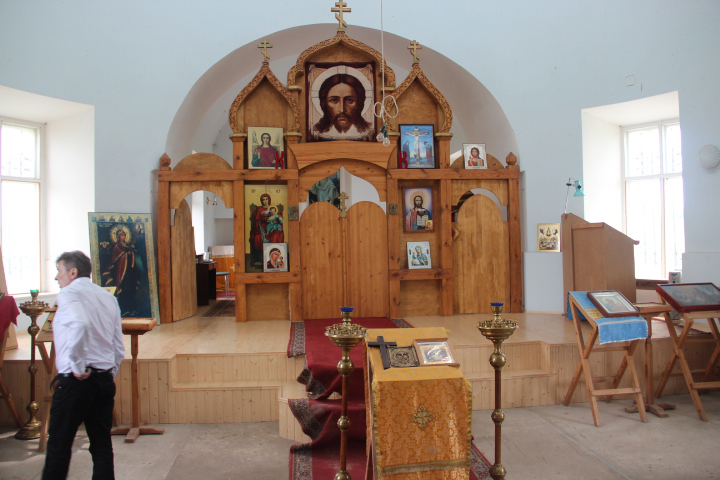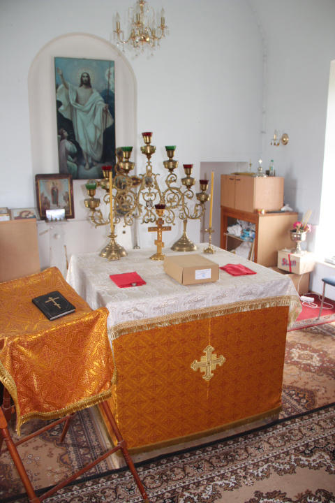 Церковь по плану трехпрестольная, но восстановлен только один алтарь: во имя Всемилостивого Спаса Избавителя, освящен иерейским чином в 2005г.