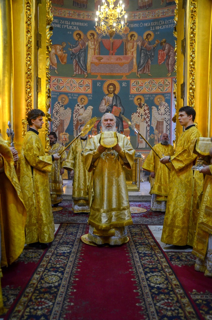 Божественную литургию совершили: митрополит Калужский и Боровский Климент, глава Калужской митрополии, архиепископ Песоченский и Юхновский Максимилиан, епископ Козельский и Людиновский Никита, епископ Тарусский Серафим, викарий Калужской епархии.