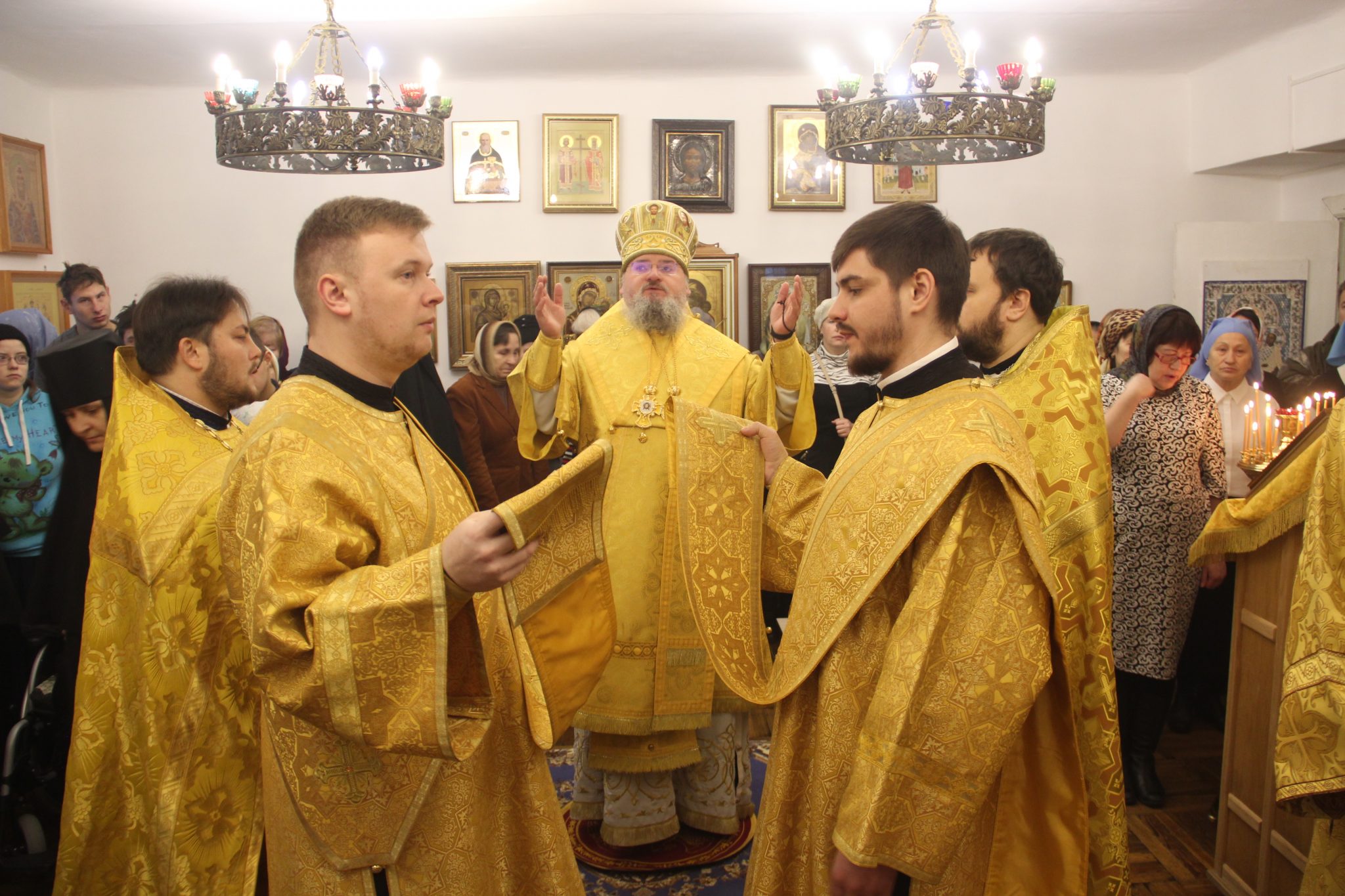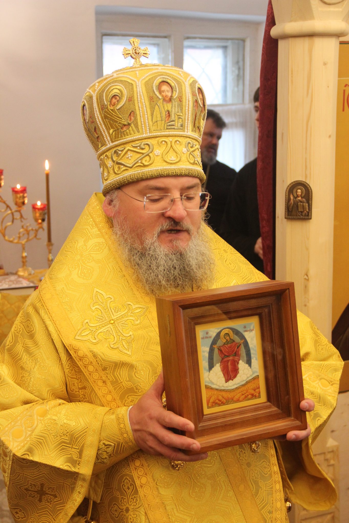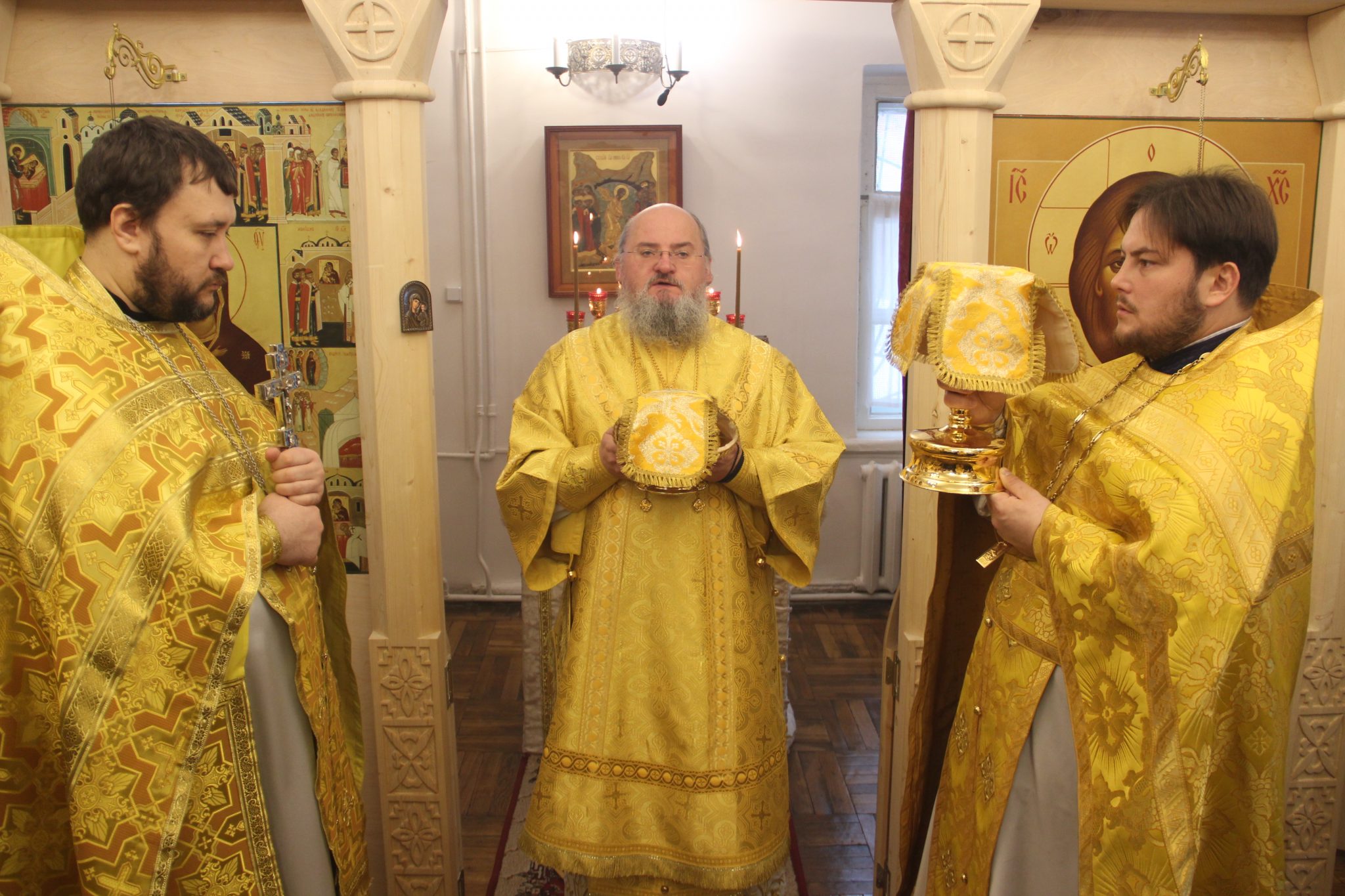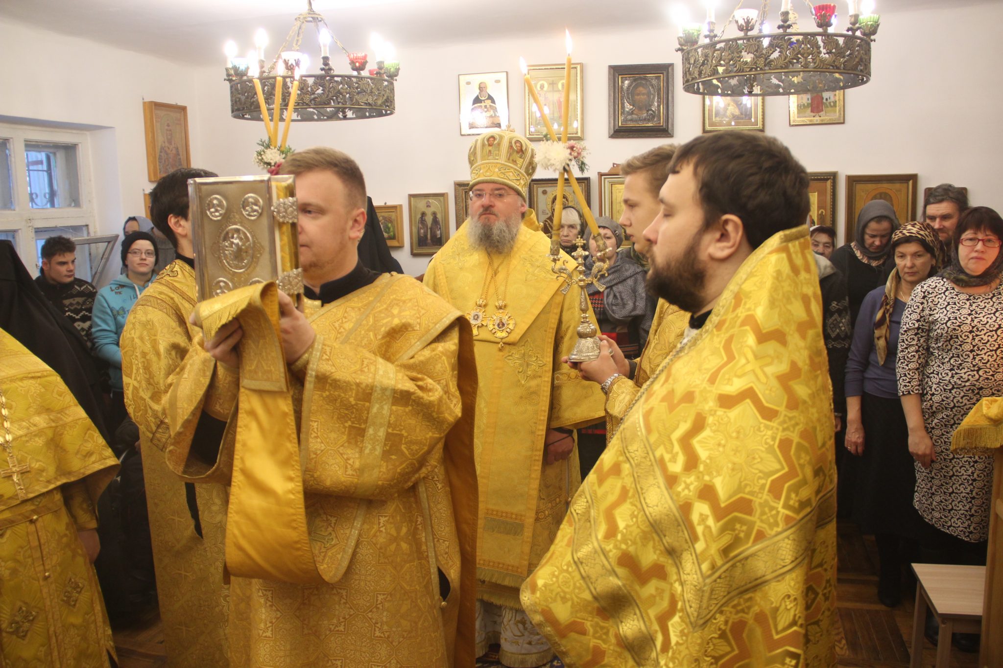 Его Преосвященству сослужили: протоиерей Антоний Хатунцев, диакон Евгений Ковригин, диакон Евгений Васильев, клирики обители.